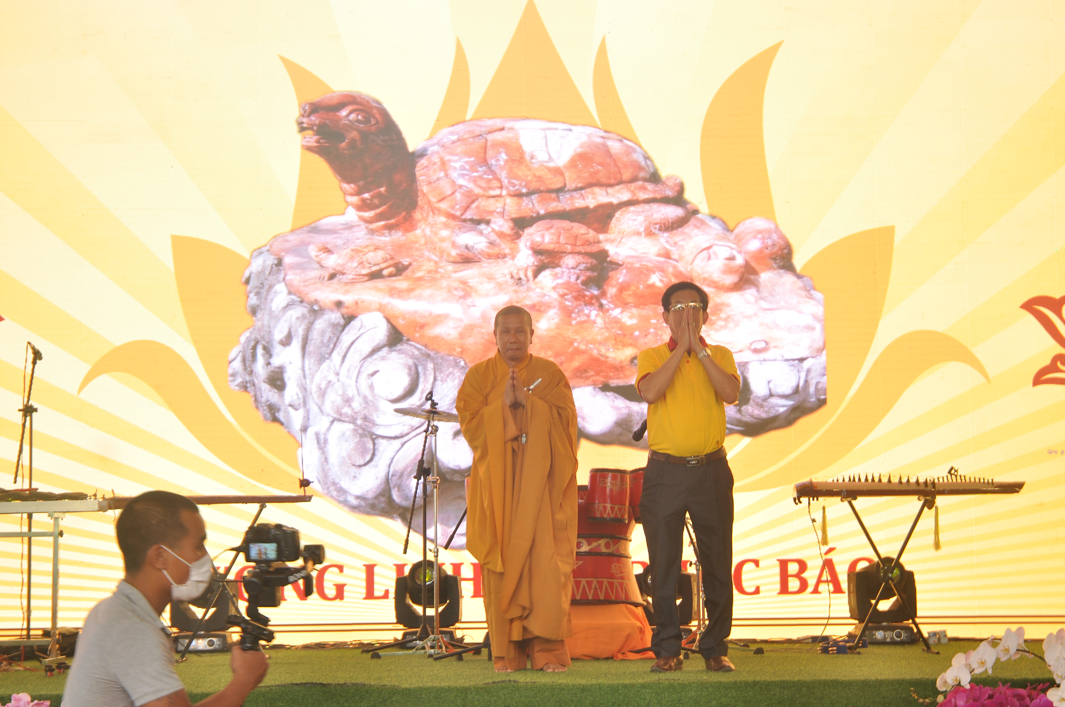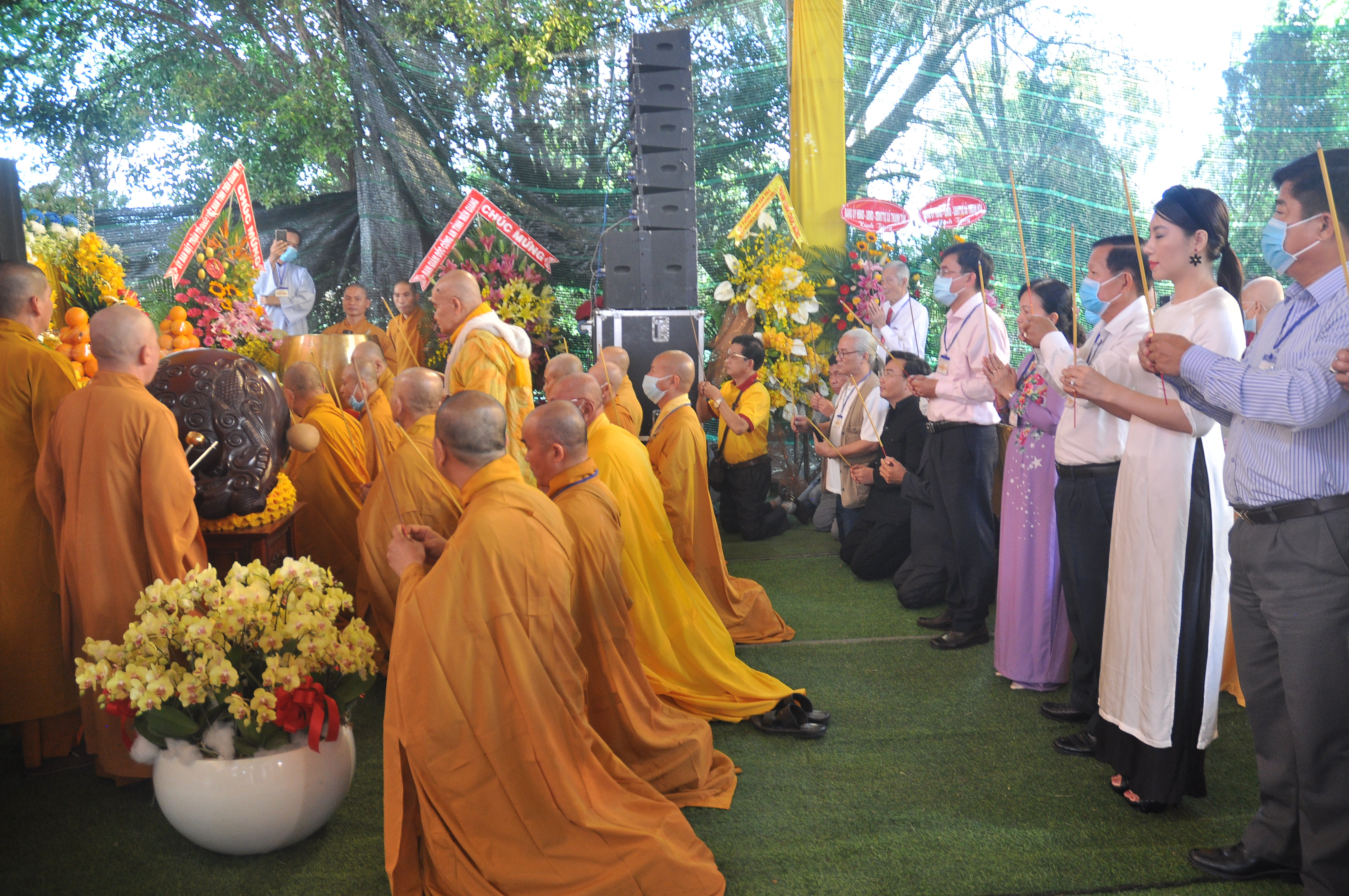 Đại diện lãnh đạo chính quyền các cấp có ông Vũ Khắc Nguyên - Trưởng vụ Hợp tác đối ngoại Văn phòng Chính phủ Việt Nam; ông Nguyễn Văn Mười - Tỉnh ủy viên, Phó Chủ tịch UBND tỉnh tiền Giang; ông Nguyễn Văn Khang - Nguyên Chủ tịch UBND tỉnh tiền Giang; ông Huỳnh Văn Hải - Phó Chủ tịch UB MTTQVN tỉnh Tiền Giang; bà Bùi Thị Mai - Trưởng ban Tôn giáo tỉnh tiền Giang; ông Lê Văn Mạnh – Phó trưởng Phòng An ninh đối nội Công an tỉnh Tiền Giang; ông Đoàn Văn Tuấn - Chủ tịch UBND huyện Tân Phước; ông Nguyễn Sỹ Hùng – Giám đốc Đài Truyền hình tỉnh Tiền Giang; ông Huỳnh Hữu Quyền – Giám đốc Sở Xây dựng tỉnh Tiền Giang; đại diện các ban ngành địa phương; đại diện Công ty Cổ phần Truyền thông Việt, Doanh nghiệp và Viện Nghiên cứu Ứng dụng Y học dân tộc và Dưỡng sinh Việt cùng đông đảo Phật tử tham dự.