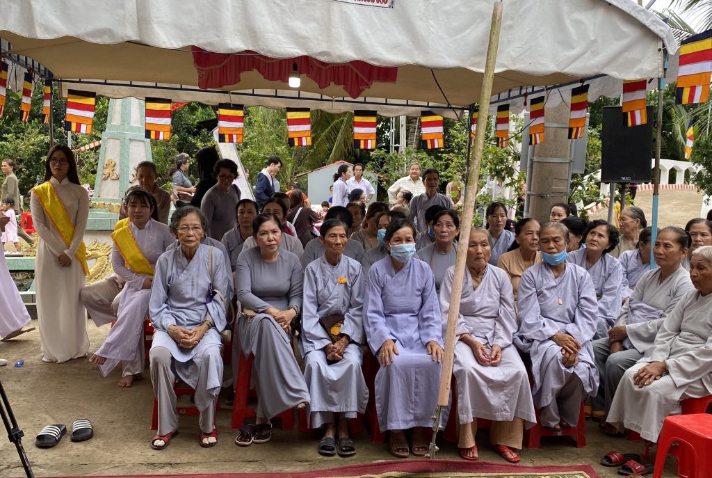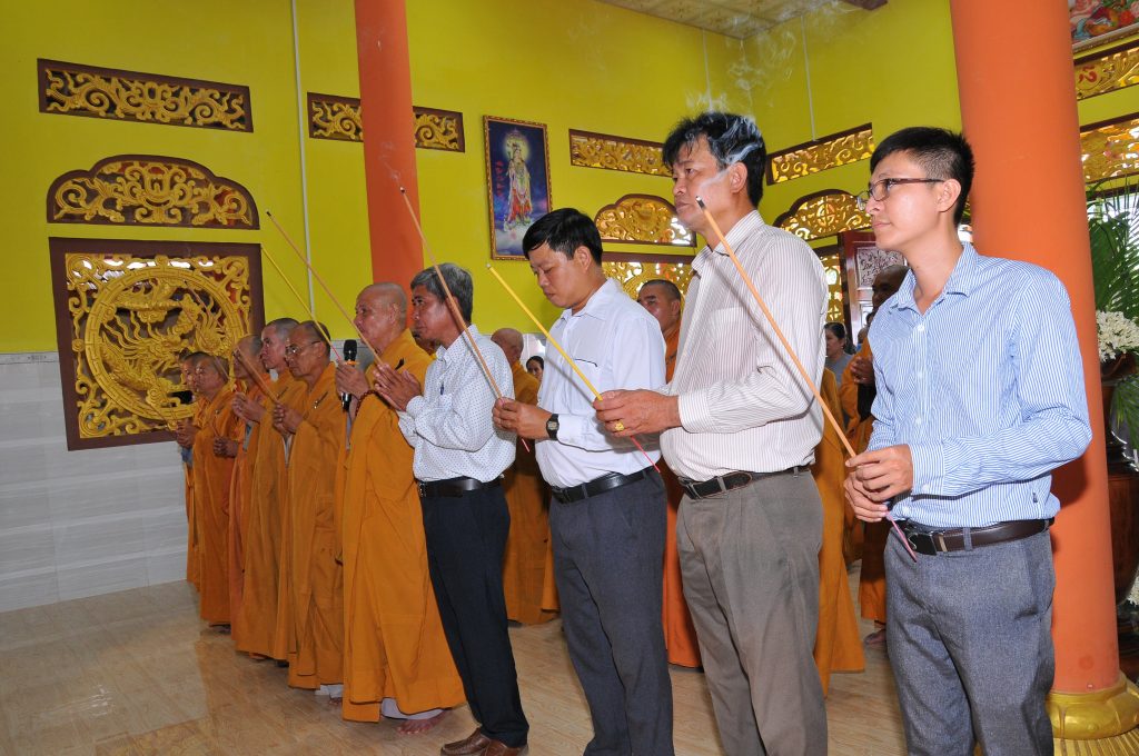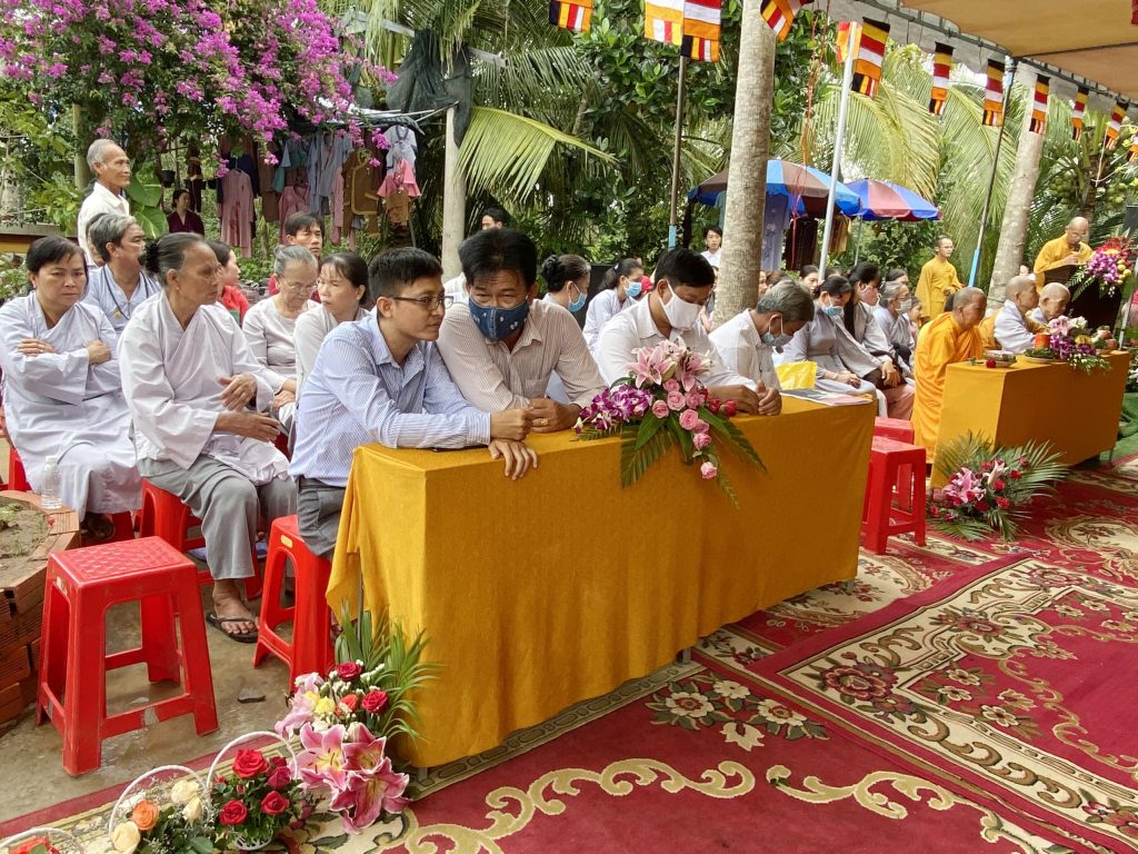 Đại diện lãnh đạo chính quyền có ông Nguyễn Văn Mười – Chủ tịch UBND xã Tân Phong; ông Lê Văn Bình – Phó Chủ tịch UBND xã; ông Trần Chí Tâm – Chủ tịch MTTQVN xã cùng đông đảo bà con nhân dân, Phật tử các đạo tràng trong huyện đồng về tham dự.
