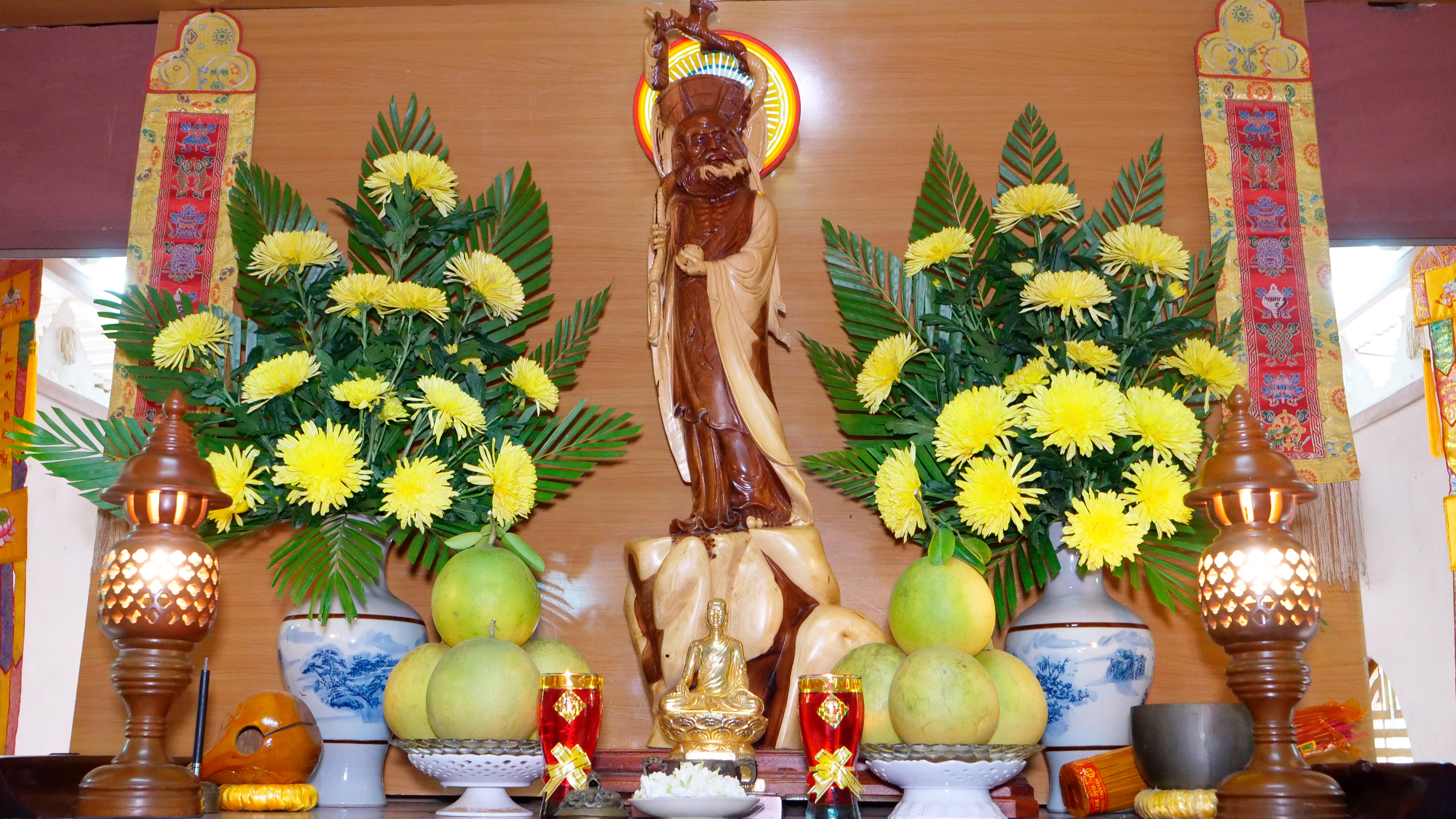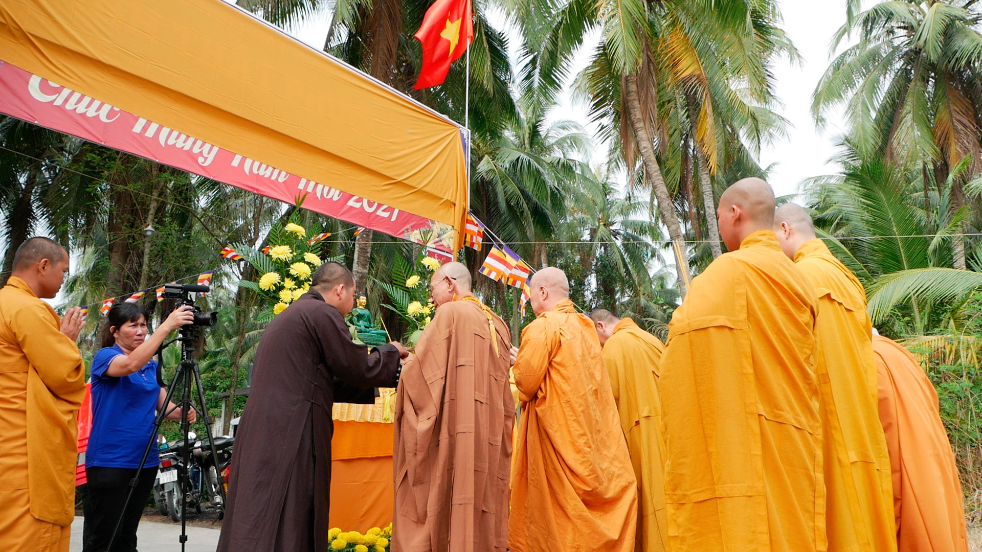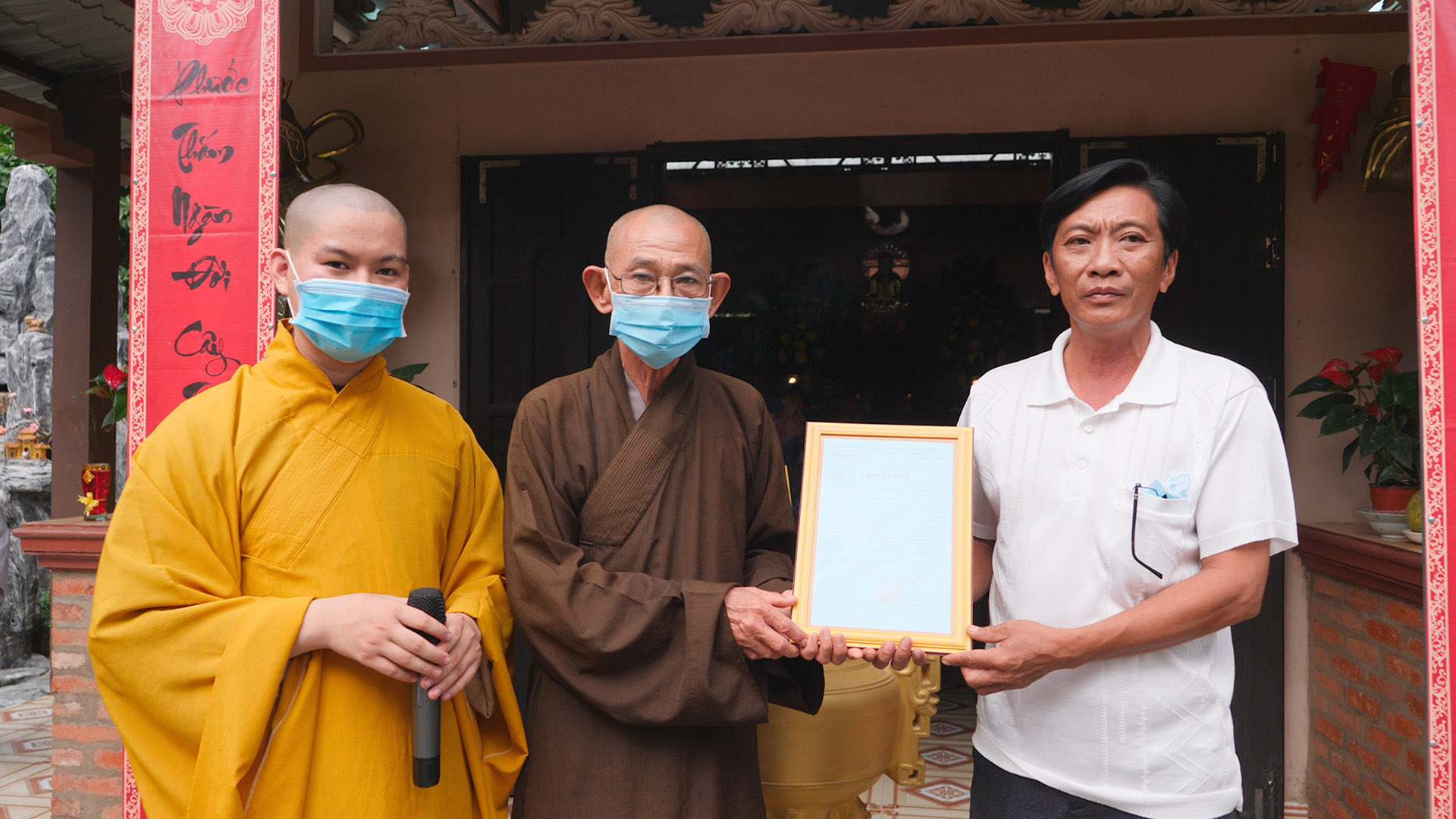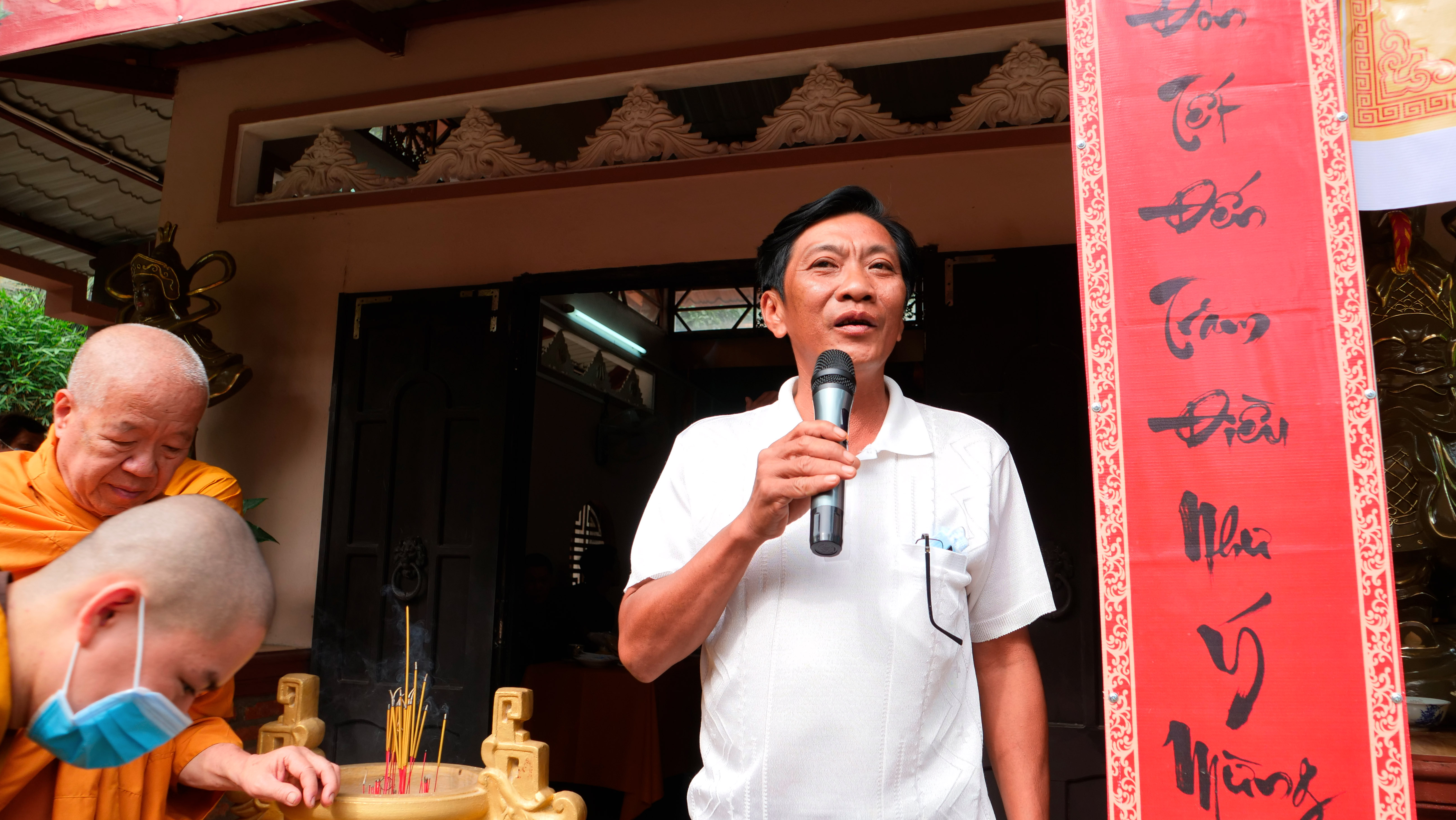 Tại buổi lễ, chư Tôn đức đã niệm hương bạch Phật tại Chánh điện, sau đó thực hiện nghi thức thượng bảng hiệu.