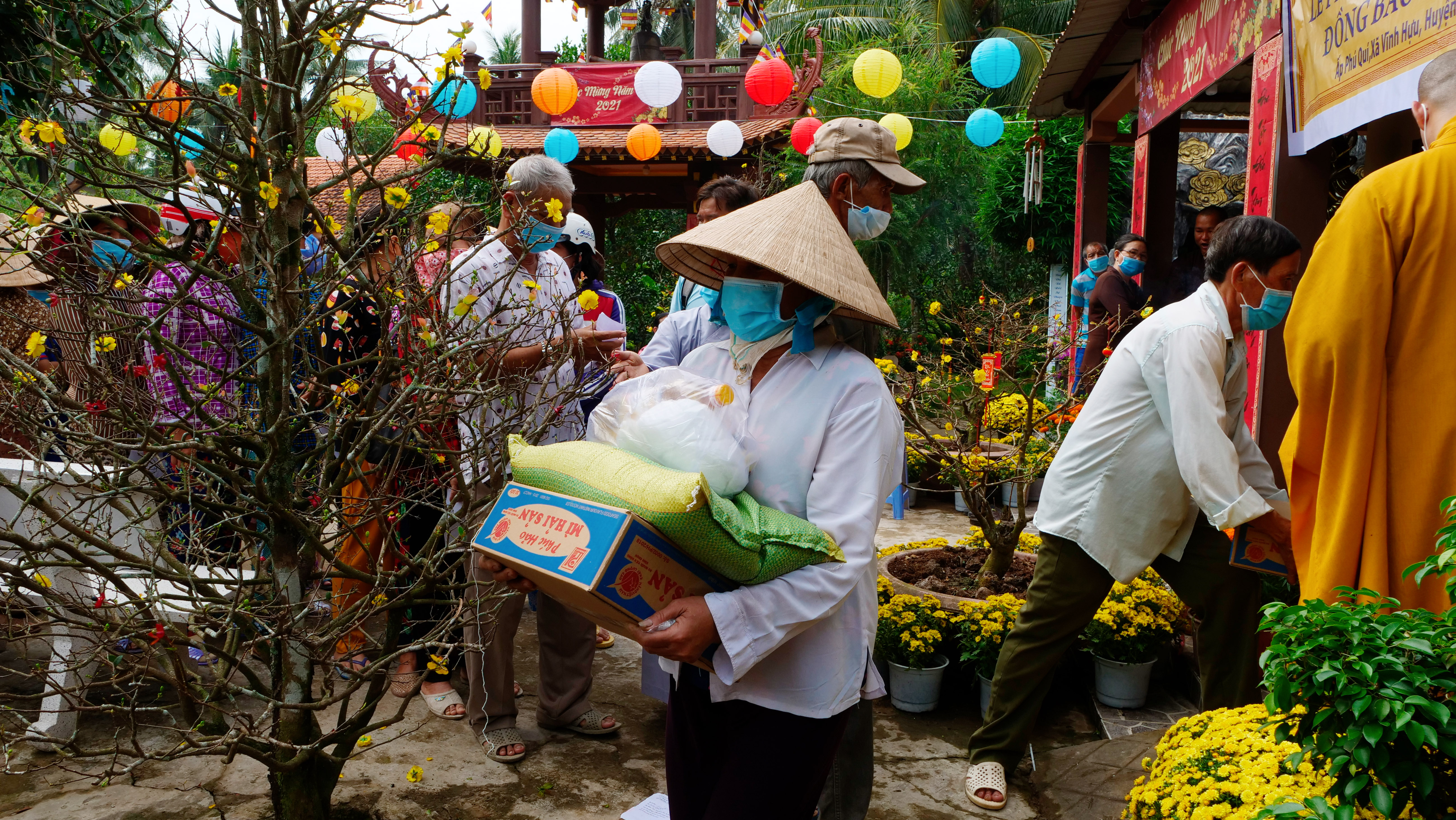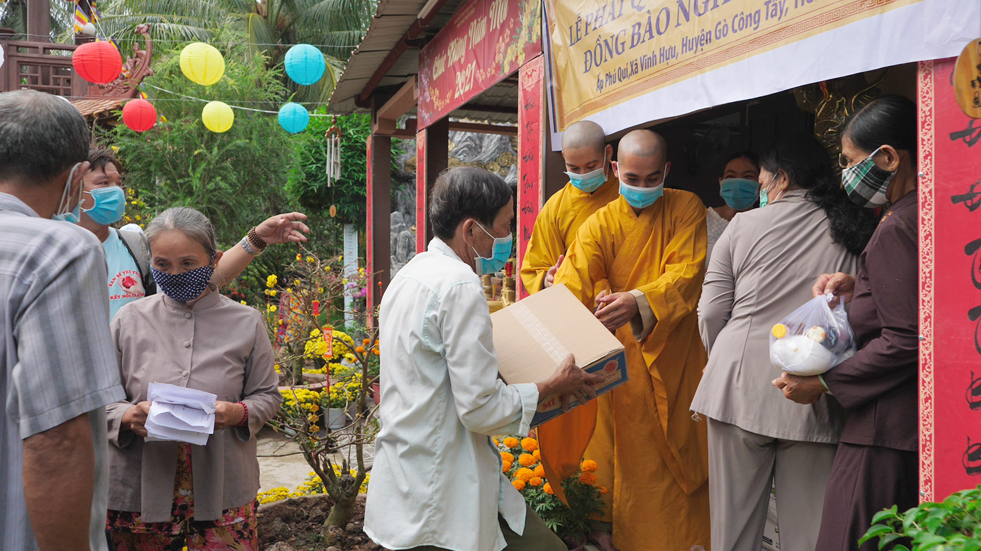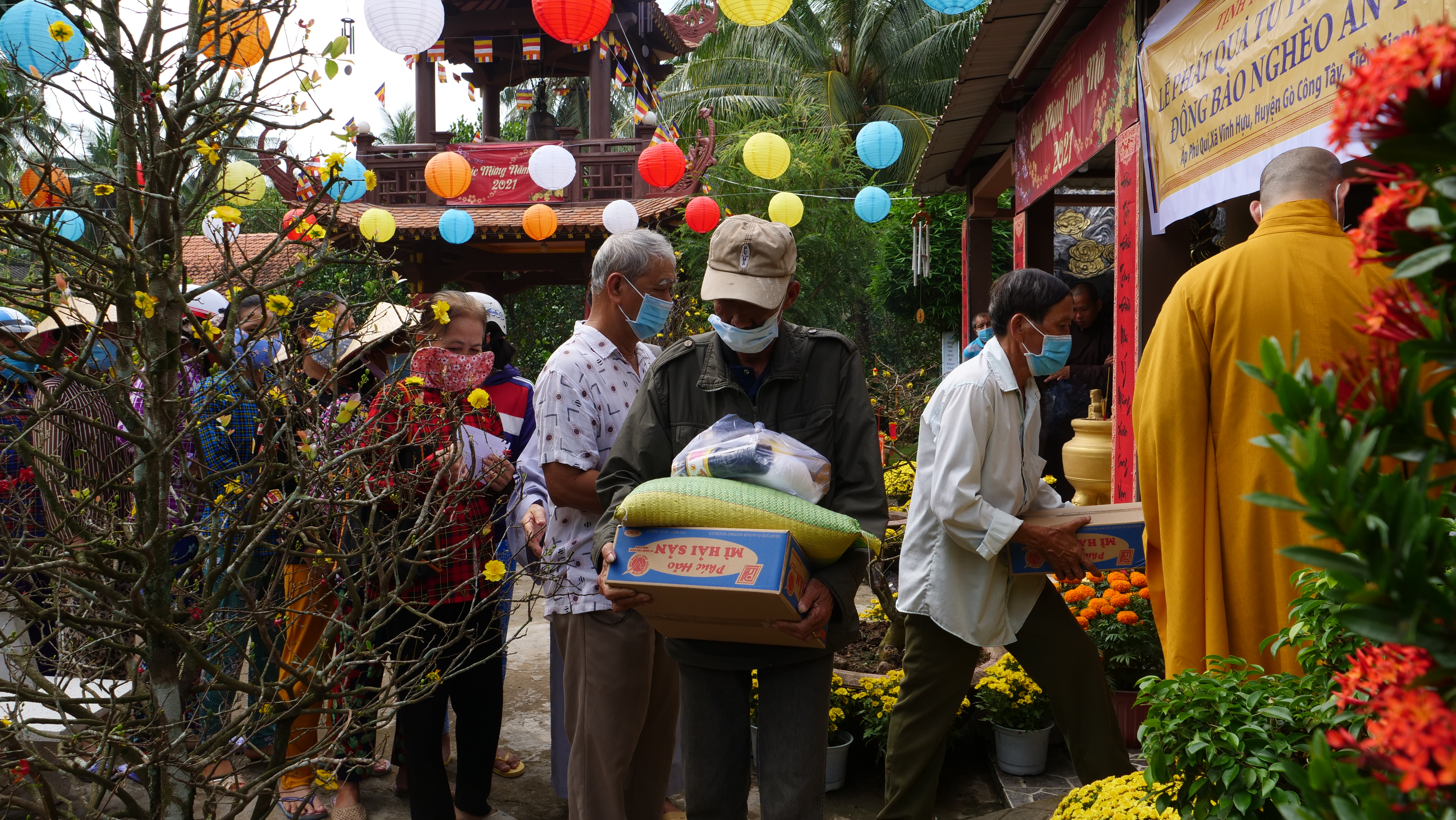 Dịp này, BTS Phật giáo huyện Gò Công Tây đã kết hợp tổ chức trao tặng 100 phần quà Tết, mỗi phần trị giá 250 nghìn đồng, cho bà con có hoàn cảnh khó khăn tại địa phương cùng vui đón mừng Xuân mới.