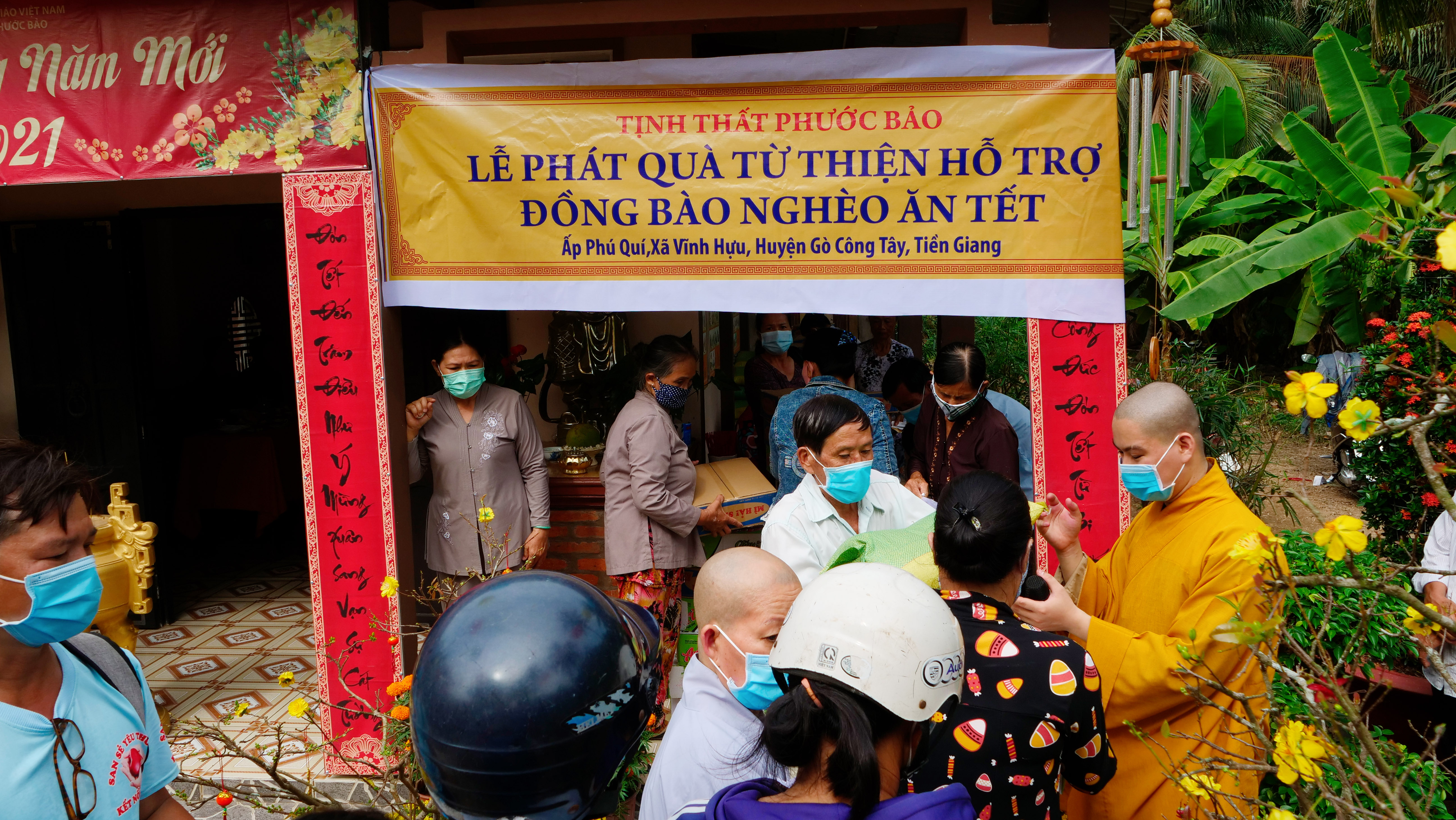 PSO - Sáng ngày 07/02/2021 (nhằm ngày 26/12 năm Canh Tý), tại ấp Phú Qúi, xã Vĩnh Hựu, huyện Gò Công Tây, tỉnh Tiền Giang; chư Tôn đức Thường trực BTS GHPGVN huyện Gò Công Tây đã trang nghiêm tổ chức lễ thượng bảng Tịnh thất Phước Bảo và tặng quà cho bà con có hoàn cảnh khó khăn tại địa phương.