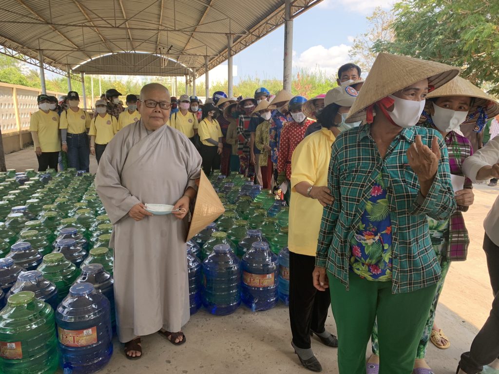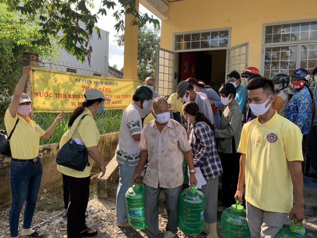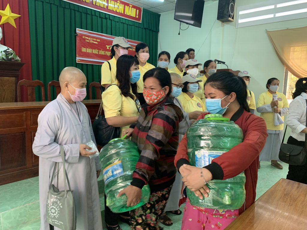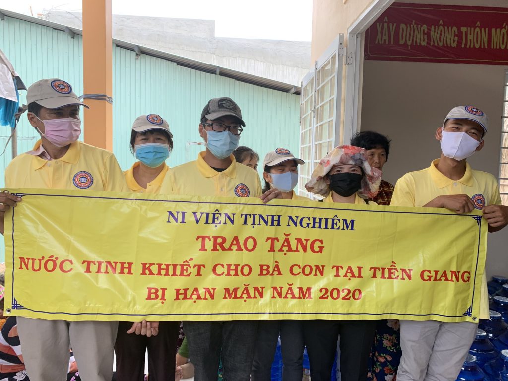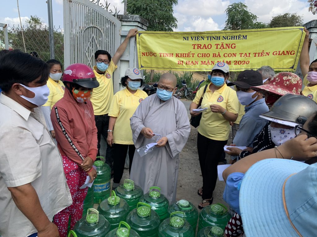 PSO - Hưởng ứng lời kêu gọi của Đoàn Chủ tịch Ủy ban Trung ương Mặt trận Tổ quốc Việt Nam về việc kêu gọi Toàn dân tham gia phòng, chống dịch bệnh và phòng, chống hạn hán, xâm nhập mặn. Ngày 23/03/2020 Ni viện Tịnh Nghiêm đã phối hợp với Ban Thường trực Ủy ban MTTQ Việt Nam tỉnh Tiền Giang và Hội từ thiện Phật giáo Phổ Hiền (USA) tổ chức tặng 2.000 bình nước uống tinh khiết phục vụ nhân dân các xã Bình Tân - huyện Gò Công Tây; xã Phú Tân, Phú Đông, Tân Thạnh - huyện Tân Phú Đông, tỉnh Tiền Giang.