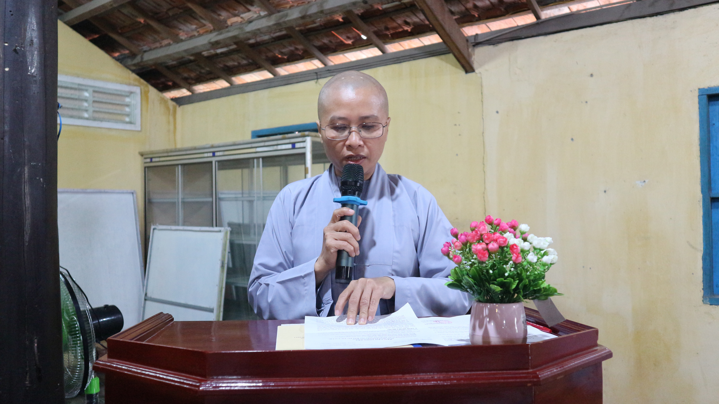 Mở đầu Hội nghị, ĐĐ.Thích Minh Thiền thông qua chương trình tổ chức Hội nghị. Do tình hình diễn biến phức tạp trở lại của dịch bệnh Covid-19, Hội nghị tổng kết được BTS tổ chức tinh giãn, hạn chế tập trung đông người và không có sự tham dự của Phật tử các đạo tràng trong thị xã.