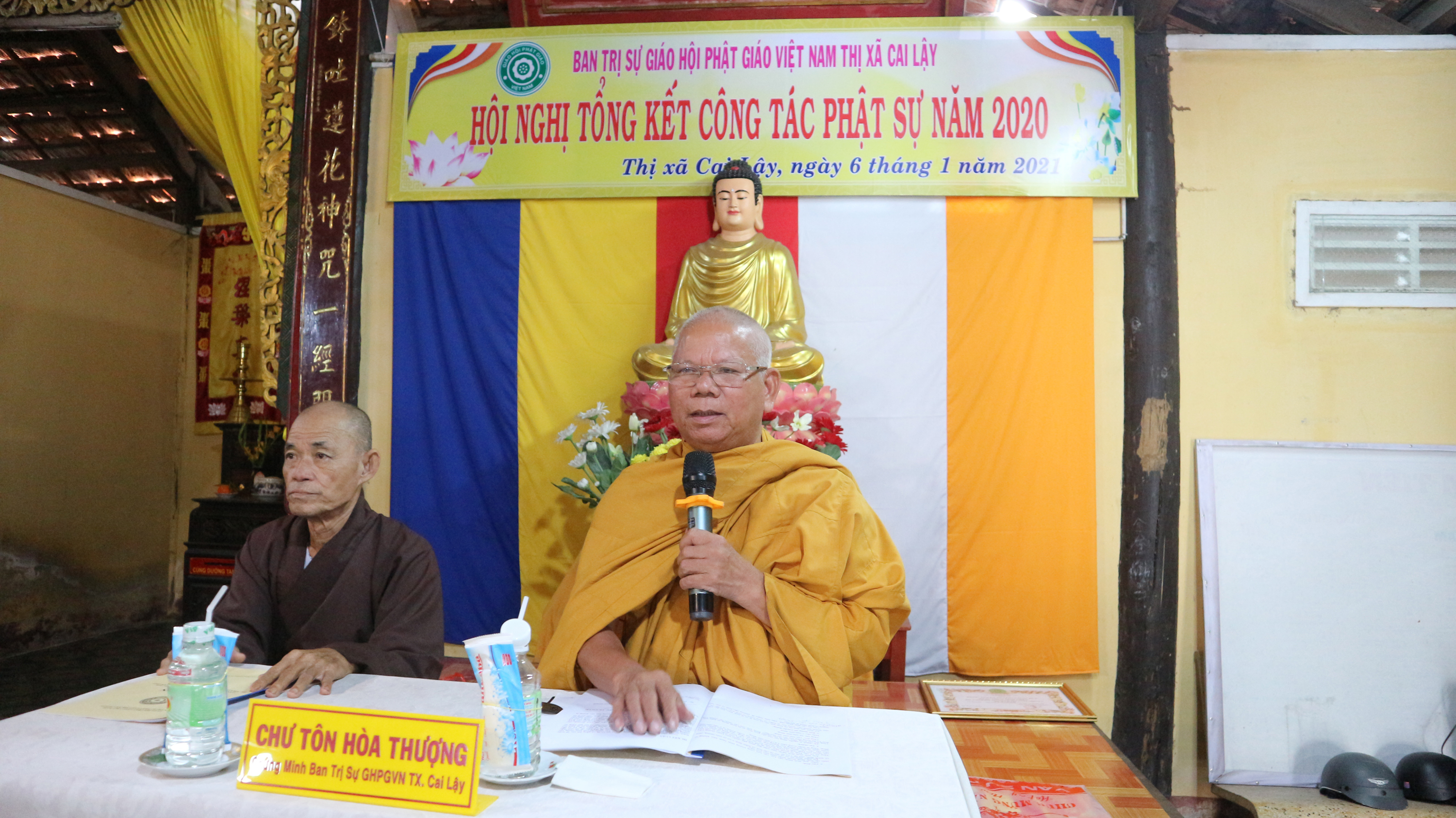 ĐĐ.Thích Minh Thiền - Phó BTS kiêm Trưởng ban Hoằng pháp Phật giáo thị xã trình dự thảo Phương hướng hoạt động năm 2021. Năm 2021 tiếp tục thực hiện phương hướng hoạt động Phật sự nhiệm kỳ I (2016-2021), hướng đến tổ chức Đại hội Đại biểu Phật giáo thị xã Cai Lây nhiệm kỳ II (2021 – 2026) dưới sự chỉ đạo của Ban Chỉ đạo tổ chức Đại hội Đại biểu Phật giáo cấp huyện của tỉnh Tiền Giang.