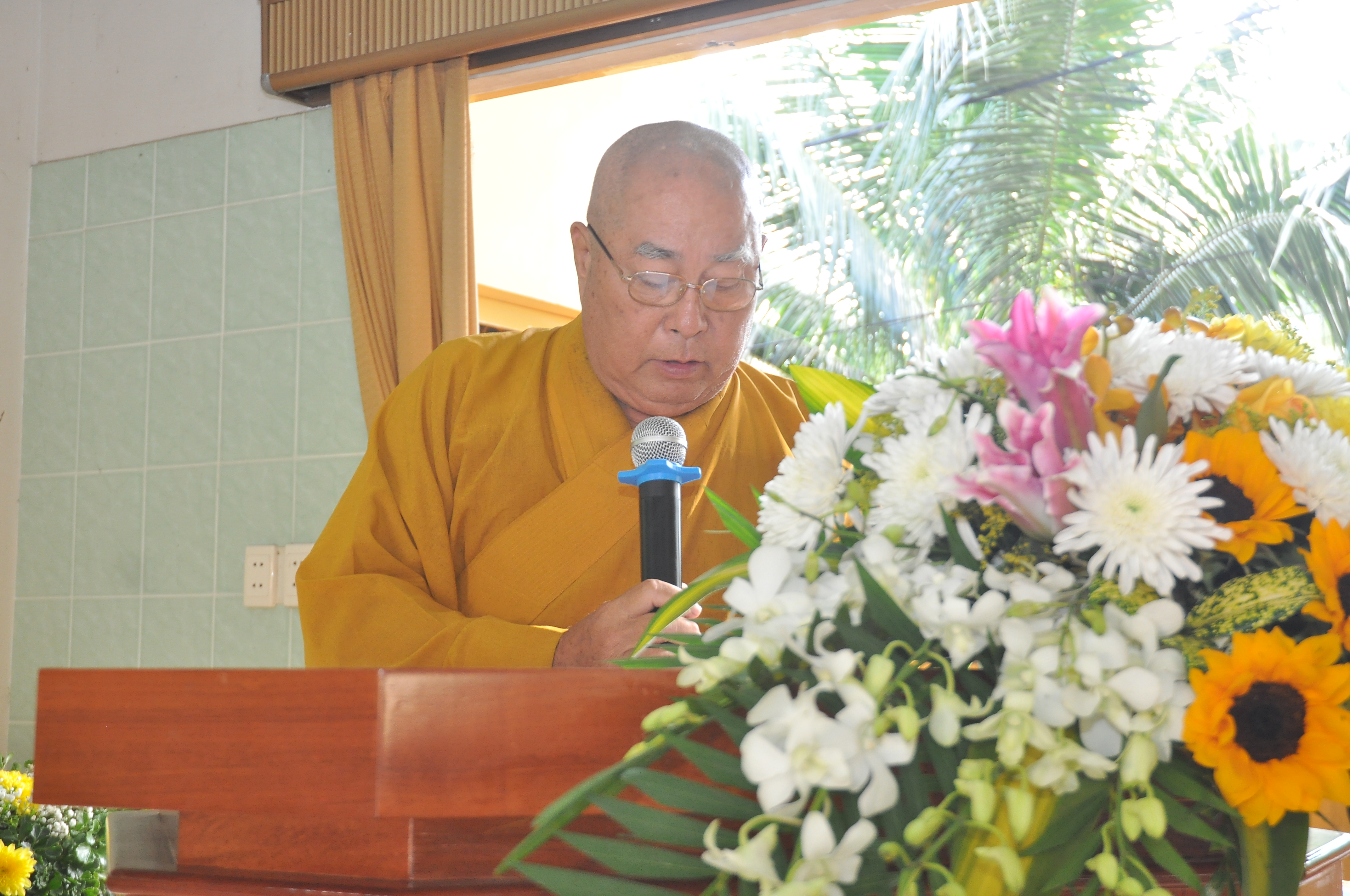 TT.Thích Quảng Lộc đọc Quyết định tặng Bằng Tuyên dương Công đức của Thường trực BTS GHPGVN tỉnh Tiền Giang