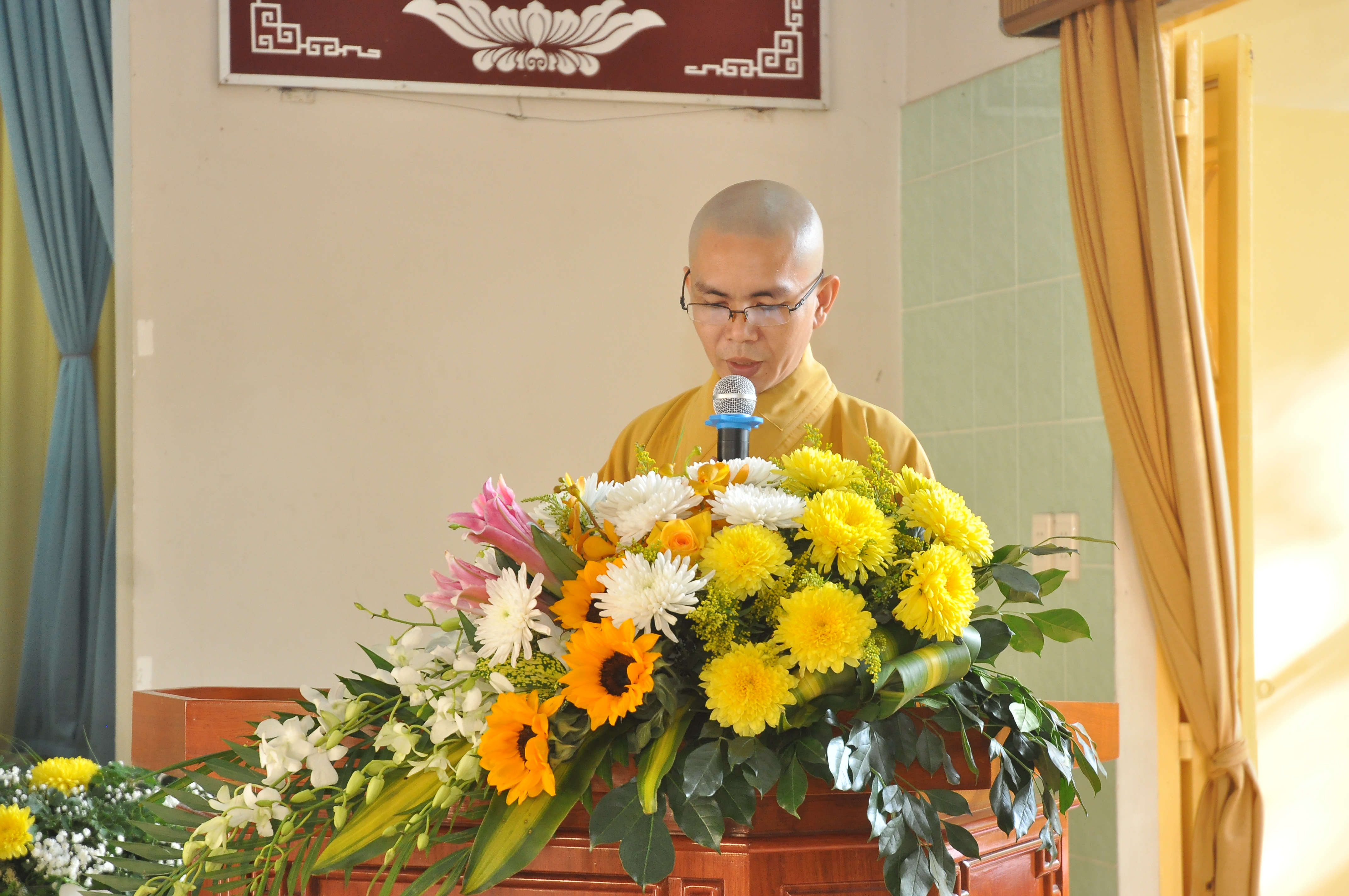 ĐĐ.Thích Huệ Phát - Chánh Thư ký BTS GHPGVN tỉnh Tiền Giang dẫn chương trình Hội nghị