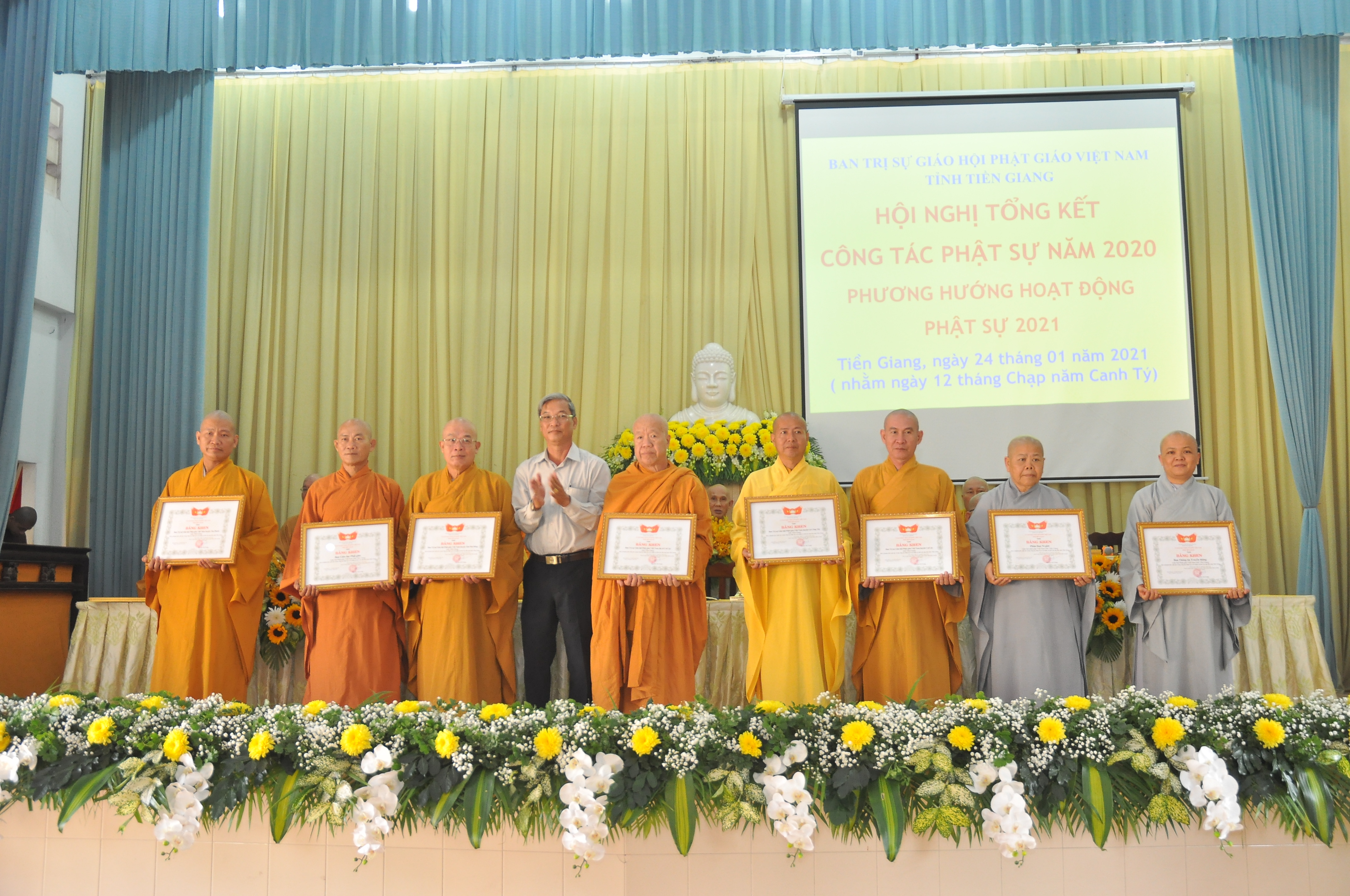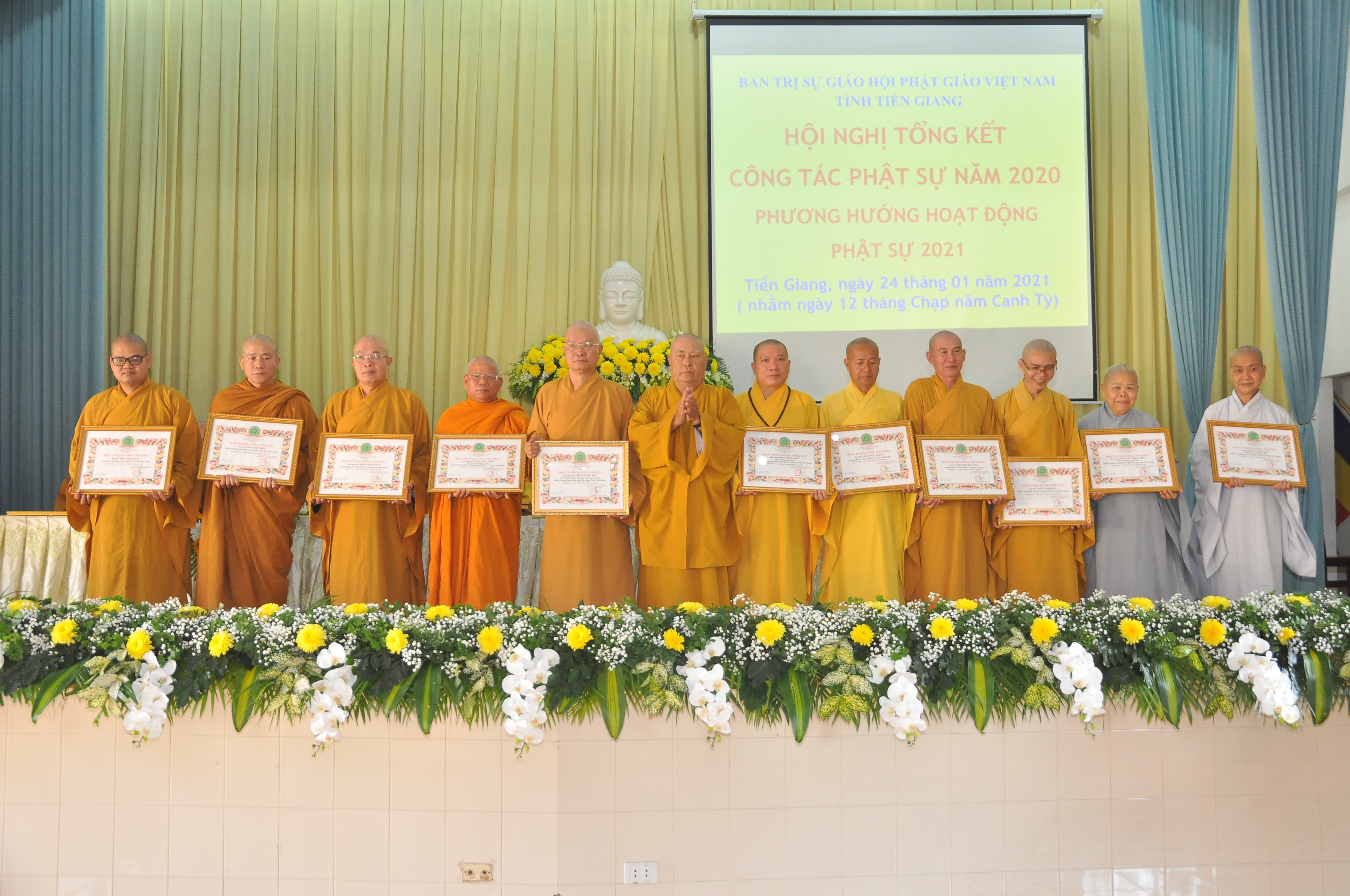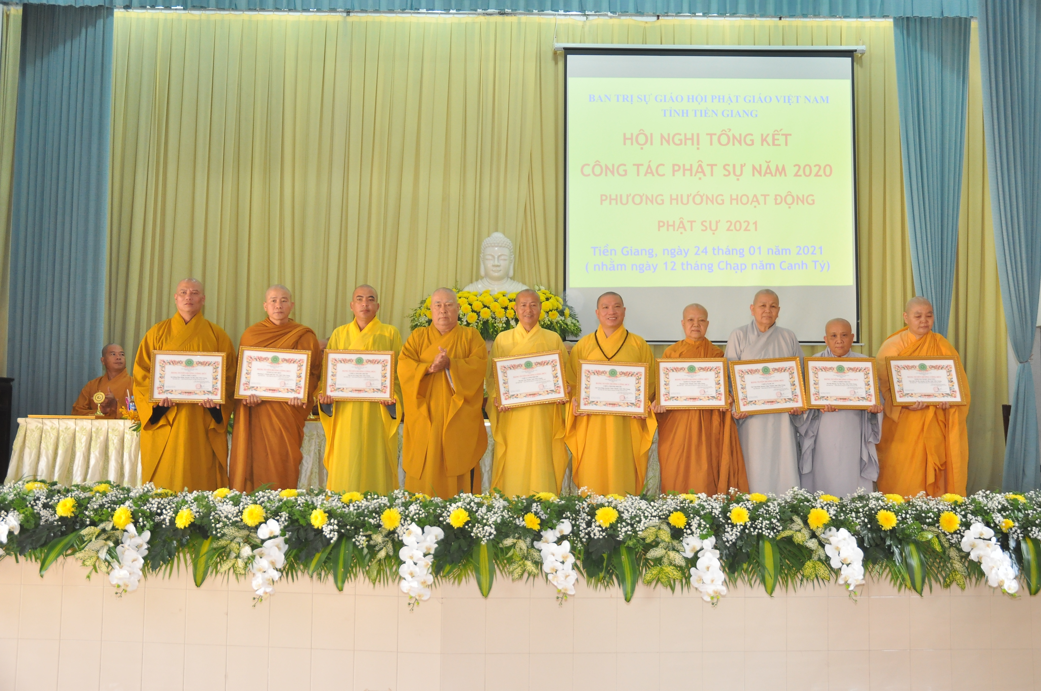 Để khích lệ tinh thần làm việc cho Tăng Ni, tại Hội nghị BTS GHPGVN tỉnh đã Quyết định trao tặng Bằng Tuyên dương Công đức đến các tập thể và quý Tôn đức có nhiều đóng góp cho hoạt động Phật sự chung. UBND và UB MTTQVN tỉnh Tiền Giang cũng có Bằng khen, Giấy khen và Kỷ niệm chương gửi tặng các tập thể cũng như cá nhân chư Tôn đức có đóng góp tích cực cho hoạt động Phật sự và Từ thiện Xã hội trong năm qua.