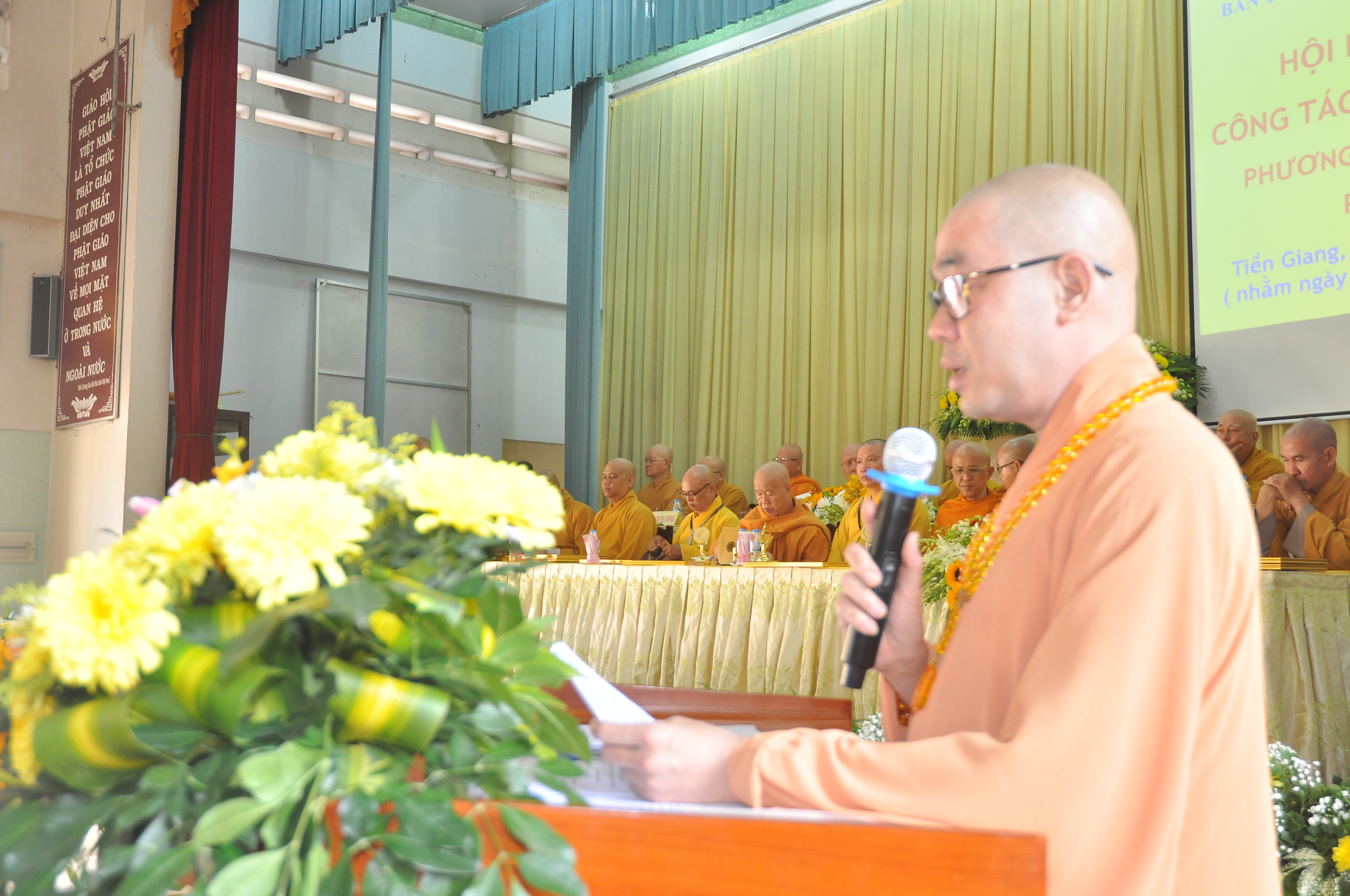 TT.Thích Quảng Lộc - Phó BTS GHPGVN tỉnh Tiền Giang phát biểu cảm tạ và Bế mạc Hội nghịPhần cuối chương trình TT.Thích Quảng Lộc gửi lời cảm tạ đến chư Tôn đức và toàn thể đại biểu tham dự Hội nghị.