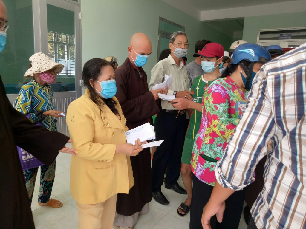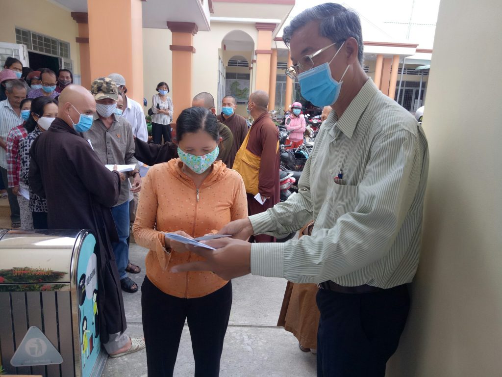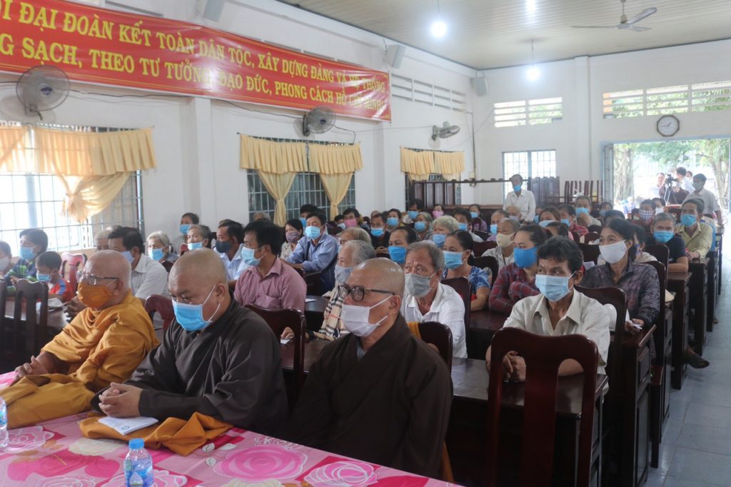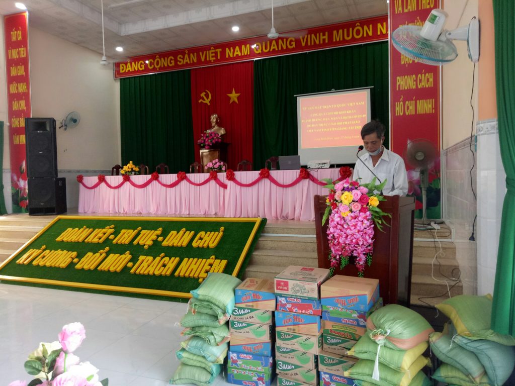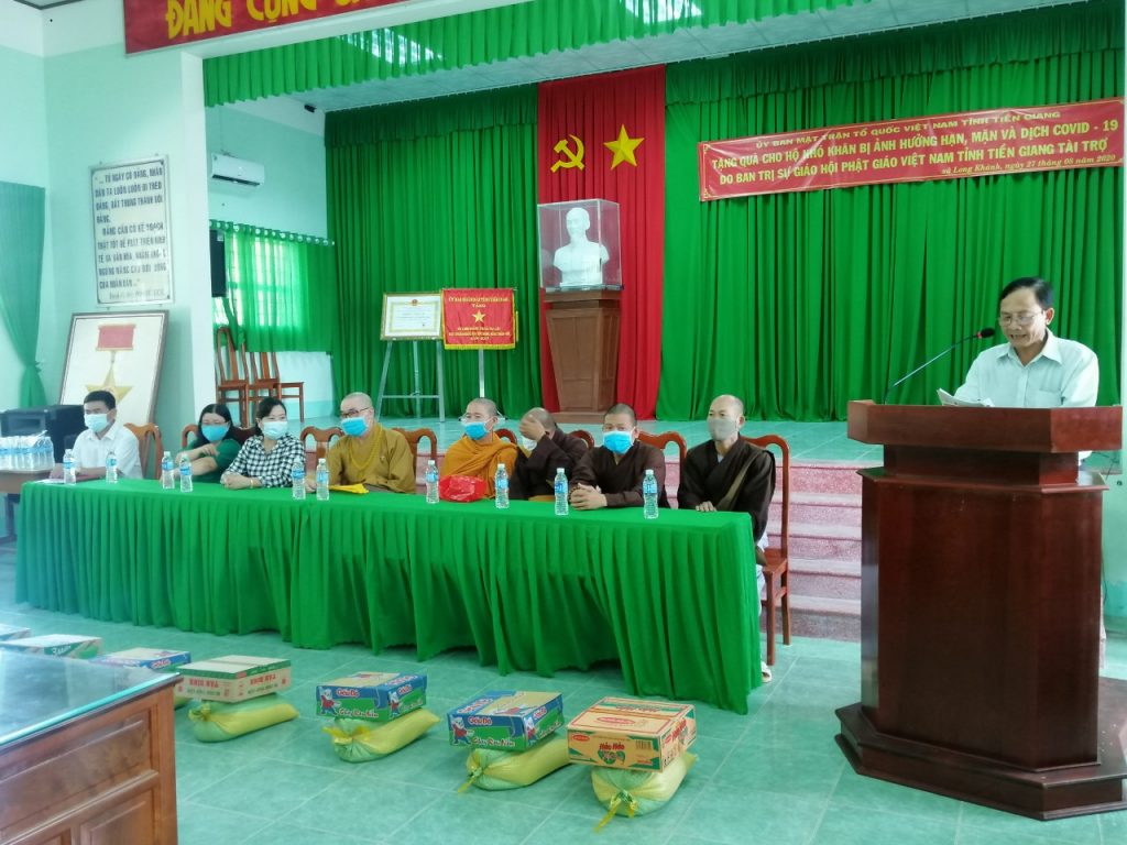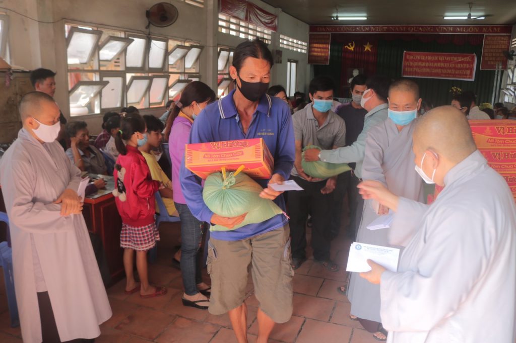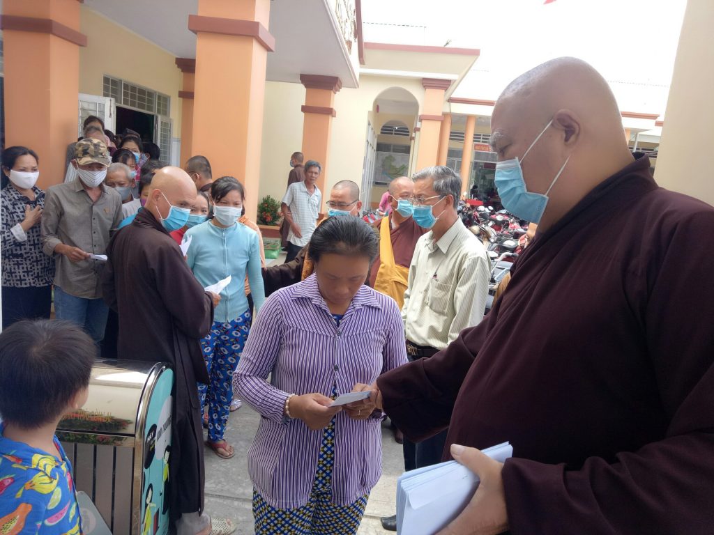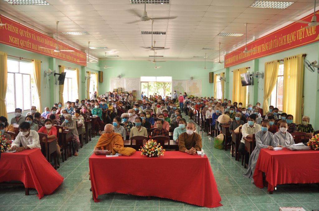 Đại dịch Covid-19 tuy không trực tiếp bùng phát tại tỉnh Tiền Giang, nhưng hậu quả của nó đã để lại rất nhiều khó khăn trong đời sống sinh hoạt cũng như nền kinh tế nói chung, đặc biệt là đối với người dân có thu nhập thấp. Với mong muốn tất cả mọi người đều được bình an vượt qua dịch bệnh và góp phần ổn định xã hội, Thường trực BTS GHPGVN đã phát động chương trình “cùng nhau đẩy lùi dịch bệnh”. Được sự phát tâm của chư Tôn đức Tăng, Ni và Phật tử trong toàn tỉnh, chương trình đã trao tặng 3.000 phần quà gồm: Gạo, mì gói và tiền mặt, tổng trị giá trên 1 tỷ 500 triệu đồng, đến với bà con.
