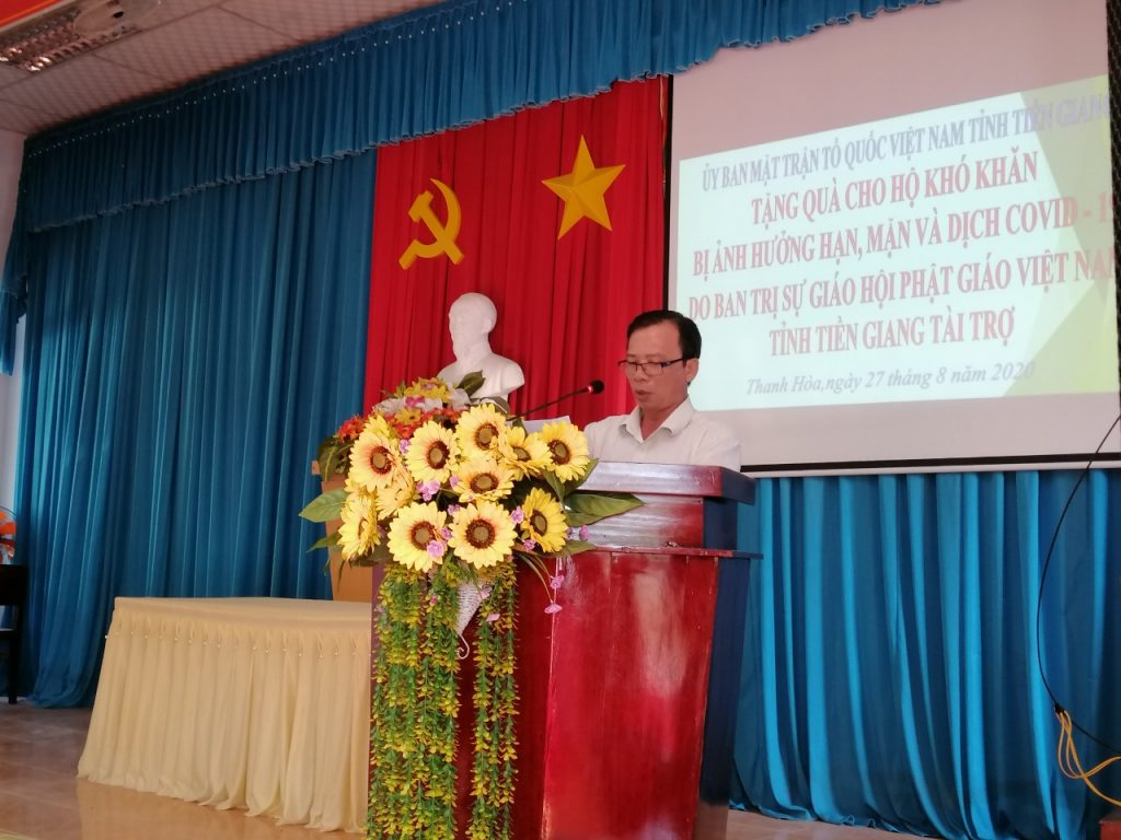 PSO - Nhân mùa Vu lan Báo hiếu đã về, với lòng từ bi và tinh thần cứu khổ ban vui của đạo Phật, hưởng ứng phong trào “cùng toàn dân đẩy lùi dịch bệnh” do Trung ương MTTQVN phát động; ngày 27/8/2020 (9/7 năm Canh Tý) Ban Trị sự và Ban Từ thiện xã hội GHPGVN tỉnh Tiền Giang đã tổ chức trao tặng 3.000 phần quà đến bà con có hoàn cảnh khó khăn ở các huyện: Chợ Gạo, Châu Thành, Tân Phước, Cái Bè, Cai Lậy và thị xã Cai Lậy.