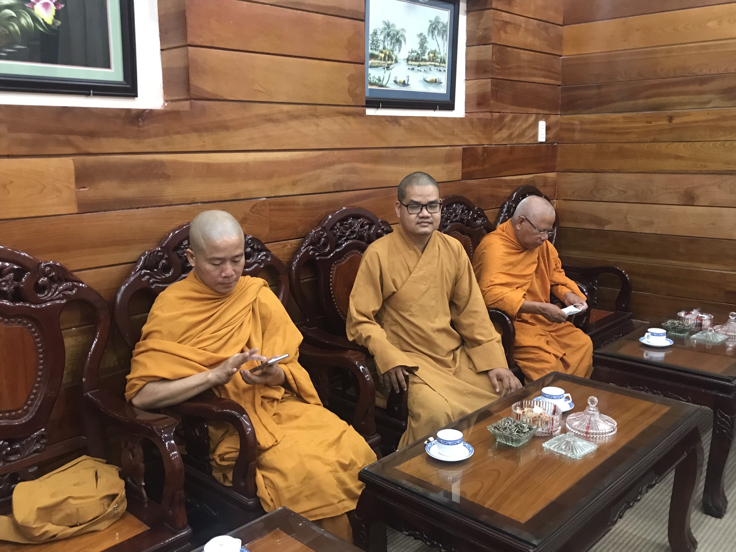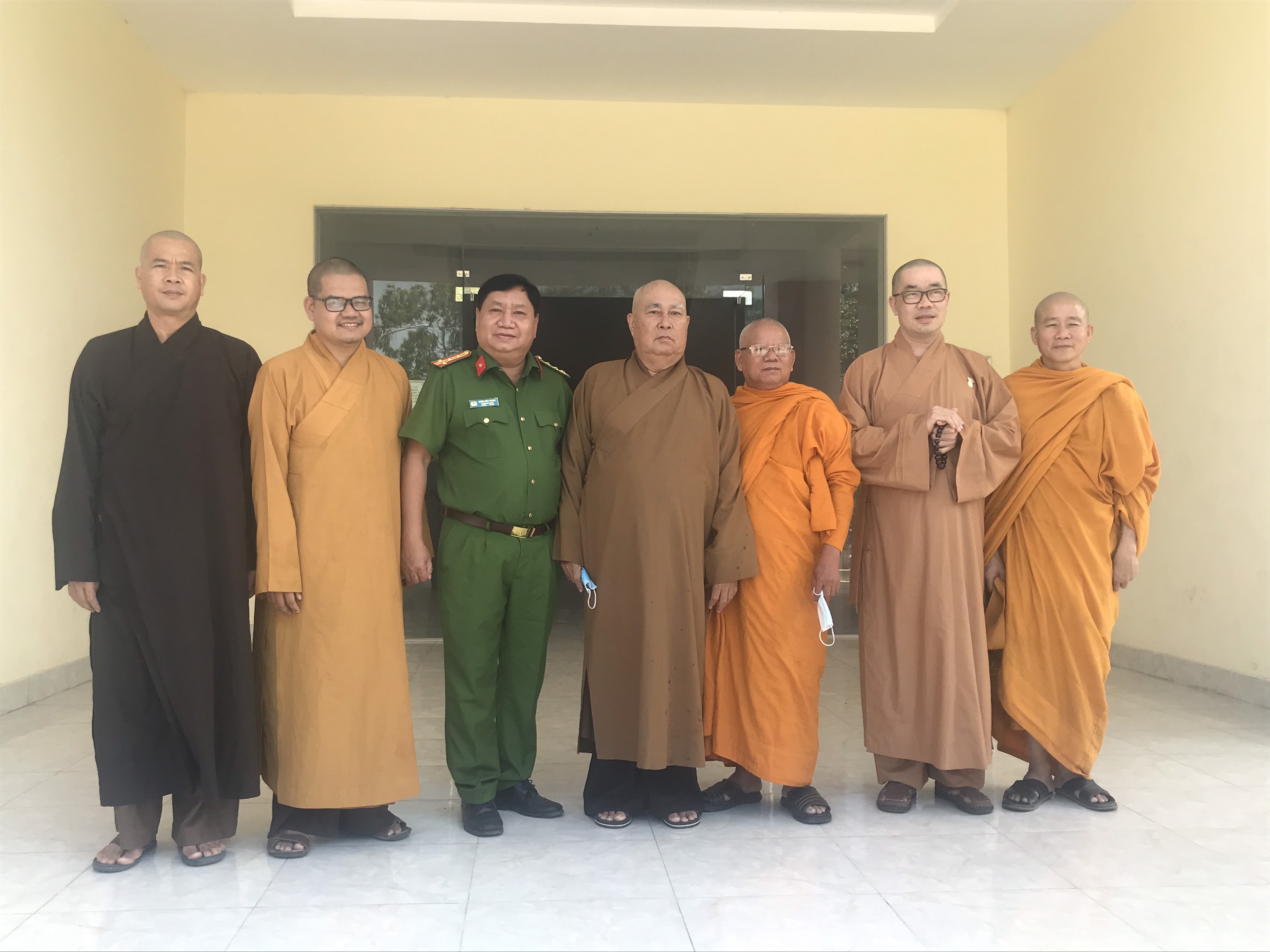 Cùng đi với đoàn còn có HT.Thích Giác Nhân - Ủy viên HĐTS, Phó trưởng BTS, Trưởng ban Hoằng pháp GHPGVN tỉnh Tiền Giang; TT.Thích Quảng Lộc - Phó trưởng BTS GHPGVN tỉnh Tiền Giang, Trưởng BTS Phật giáo TP.Mỹ Tho cùng chư Tôn đức Thường trực BTS GHPGVN tỉnh Tiền Giang và TP.Mỹ Tho.