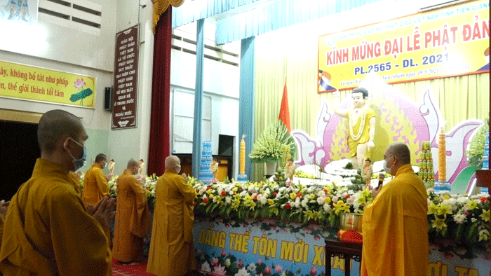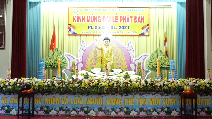 Mùa Phật đản về, không khí thiêng liêng và an lành dường như thêm trải rộng khắp đất trời, cùng lan tỏa mạnh mẽ trong huyết quản bao người con Phật. Trong buổi lễ Khai mạc Phật đản năm nay tại tỉnh Tiền Giang, do ảnh hưởng của dịch bệnh Covid-19, thực hiện nghiêm Thông tư hướng dẫn của HĐTS và công văn hướng dẫn của Ủy ban Nhân dân tỉnh, chư Tăng Ni và Phật tử không được tập trung đông; nhưng không vì thế mà sự thiêng liêng của ngày lễ bị suy giảm.