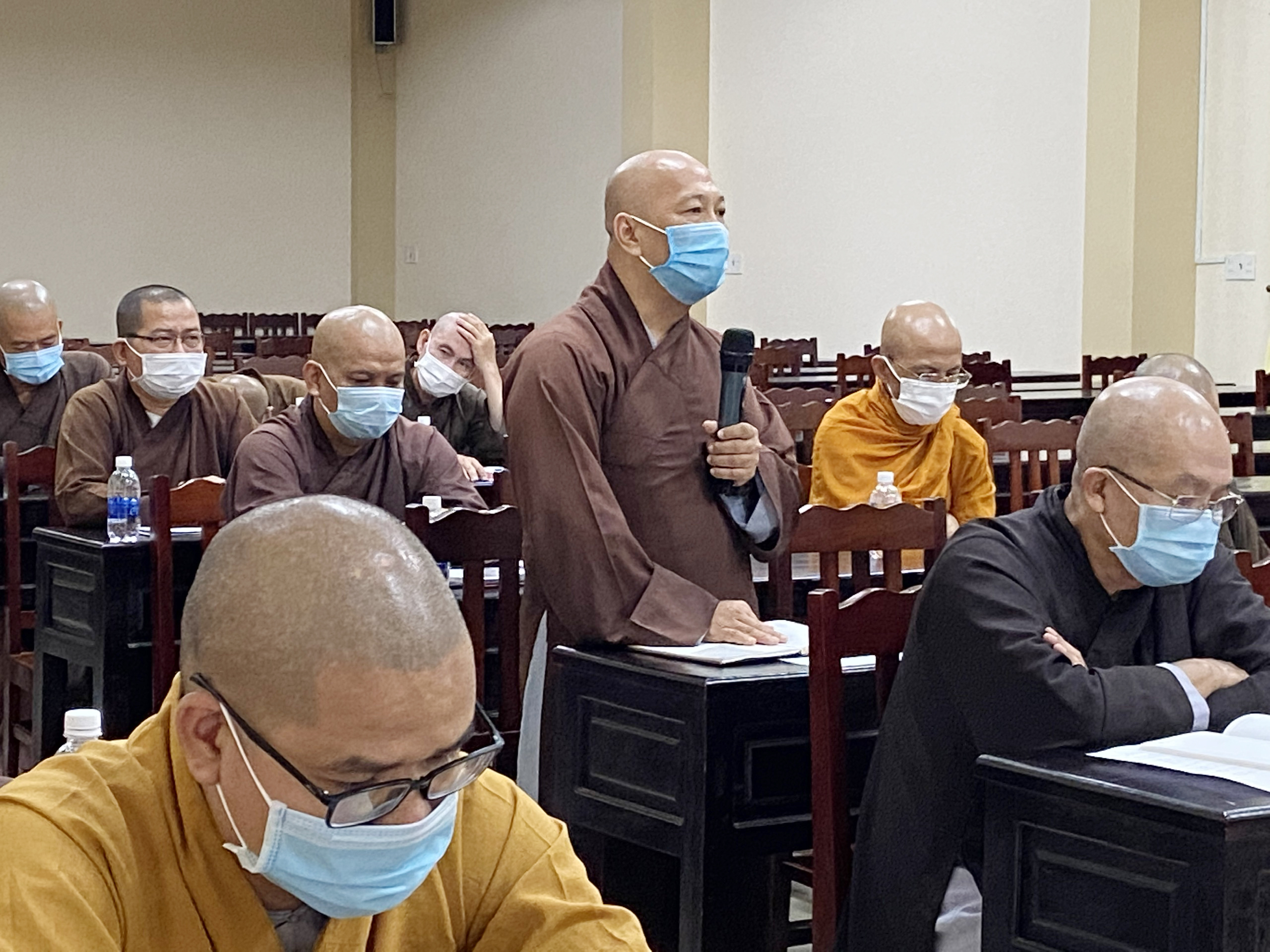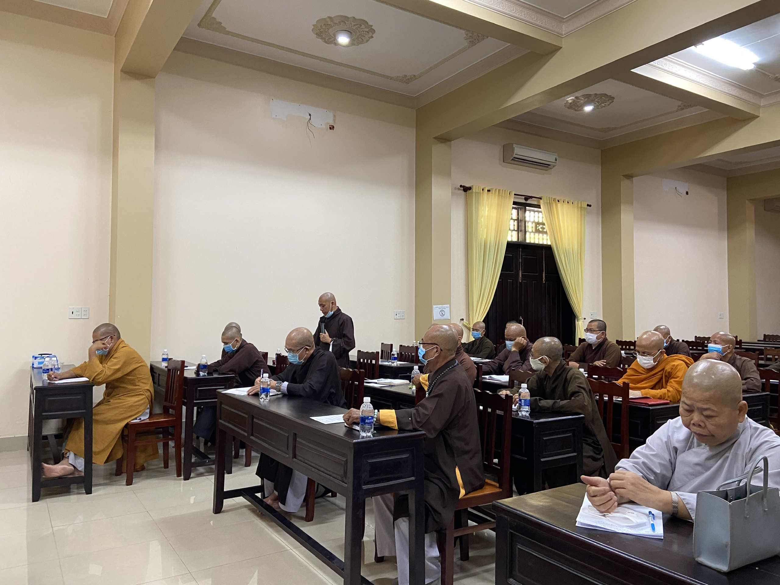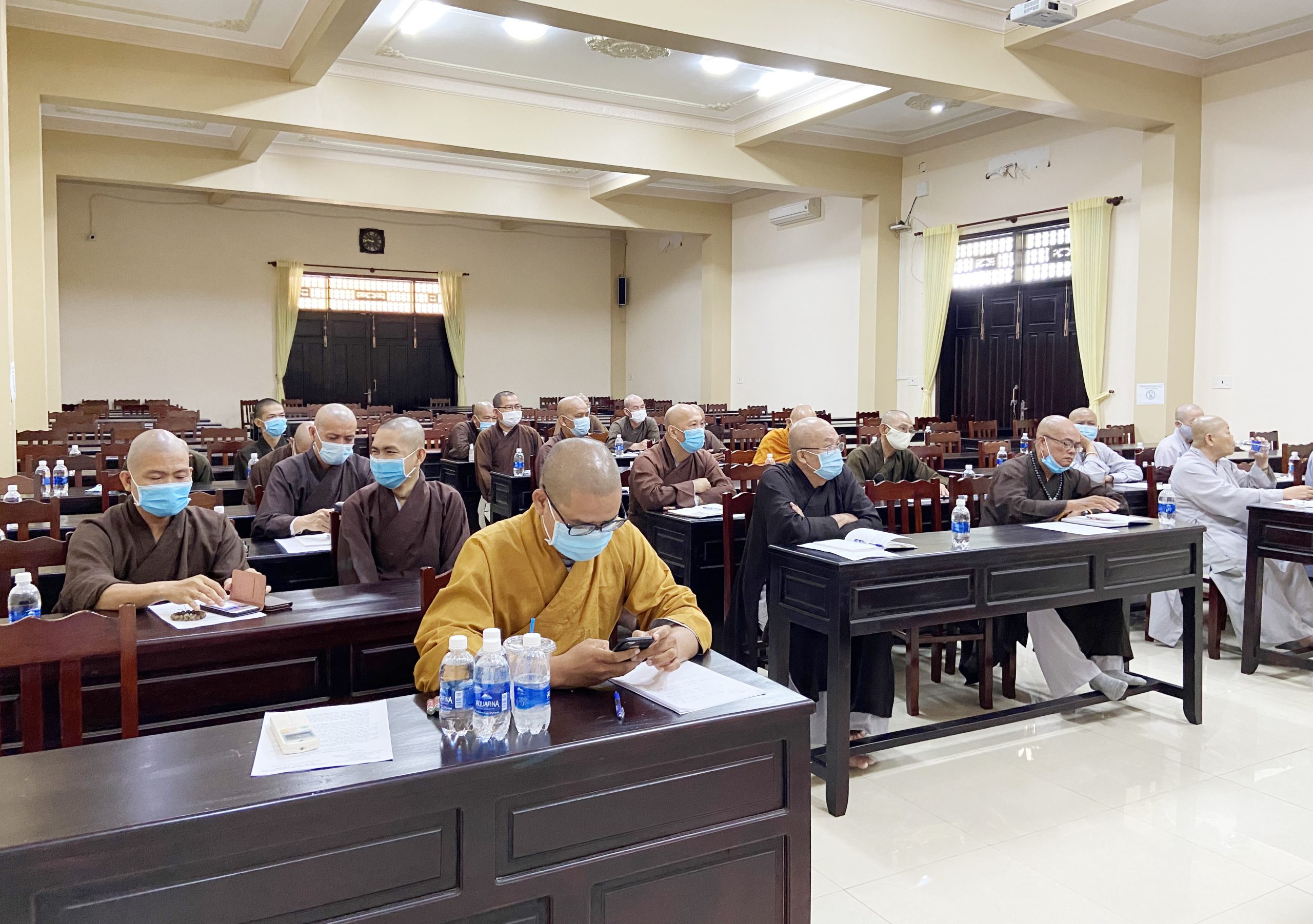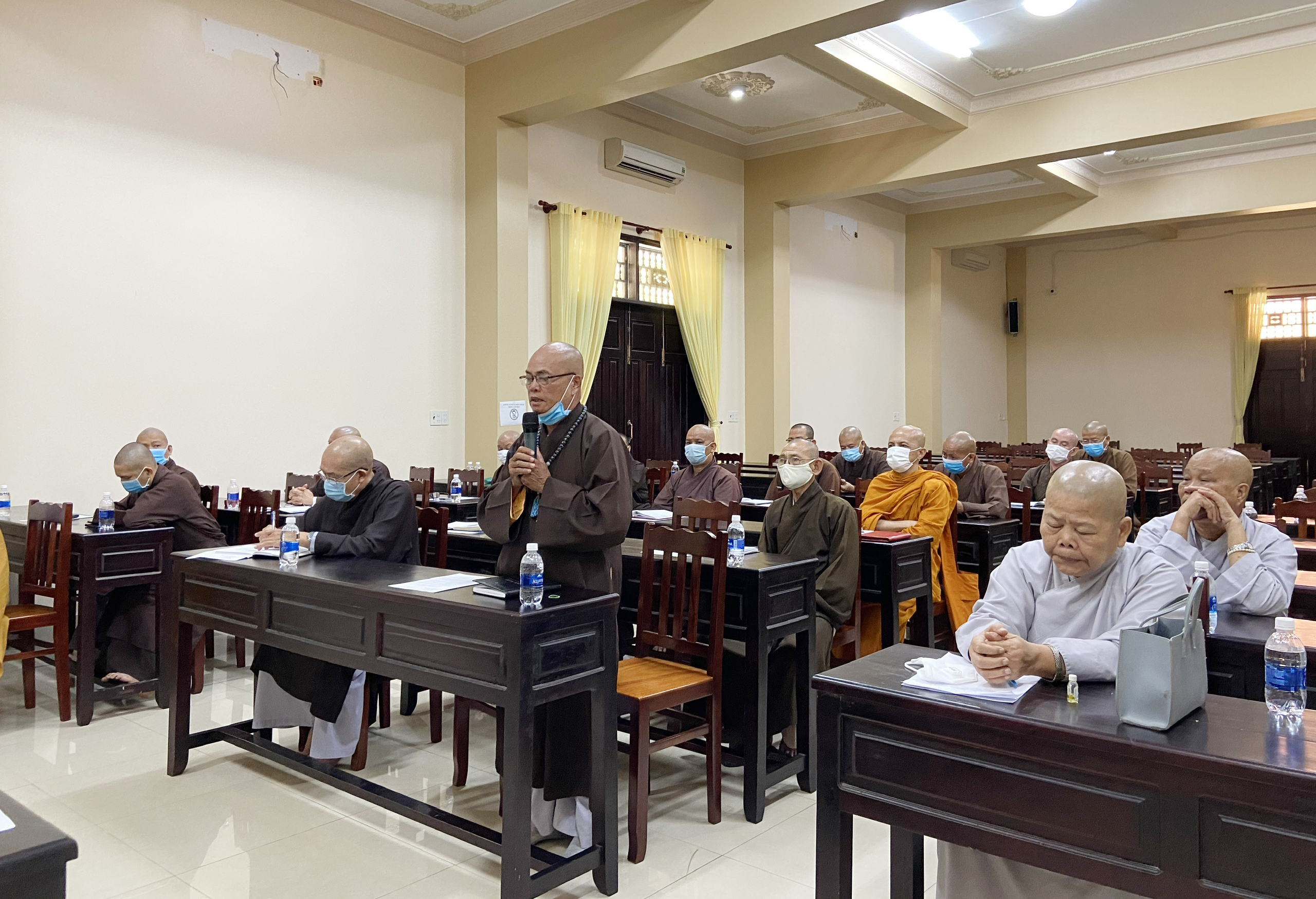 Phát biểu khai mạc phiên họp, HT.Thích Huệ Minh cho biết: Do tình hình diễn biến của dịch bệnh như hiện nay, để đảm bảo tính an toàn và thực hiện nghiêm việc phòng chống dịch bệnh như các công văn của Giáo hội và Nhà nước quy định, các công tác Phật sự sắp tới như: tổ chức Đại lễ Phật Đản PL.2565, khóa An cư Kiết hạ và tổ chức Đại hội Đại biểu Phật giáo tại các huyện cần phải bàn bạt kỹ lưỡng mới có thể thực hiện. Phiên họp hôm nay rất cấp thiết nên chư Tôn đức phải tập trung tìm phương pháp thực hiện hợp lý và hiệu quả.