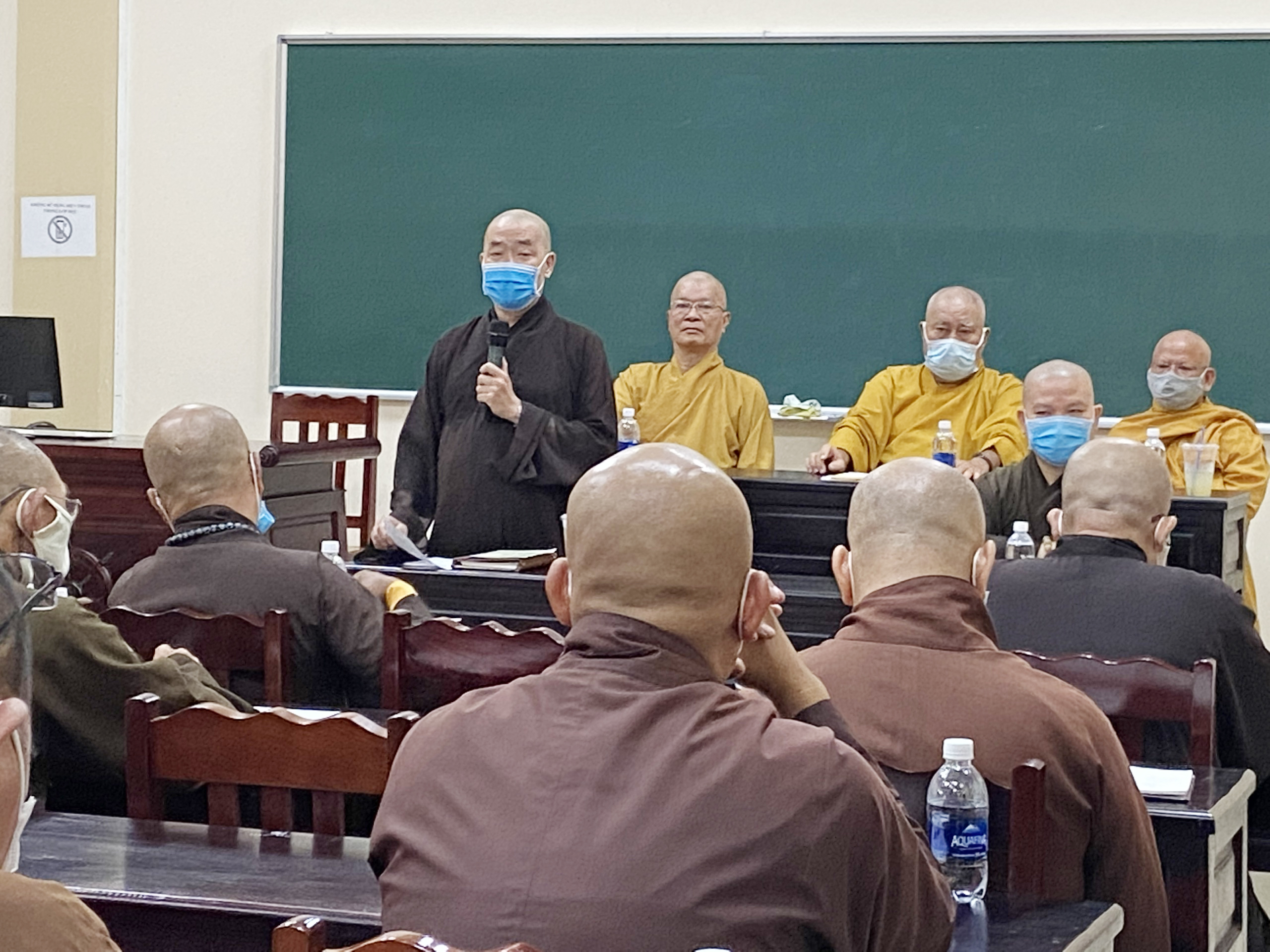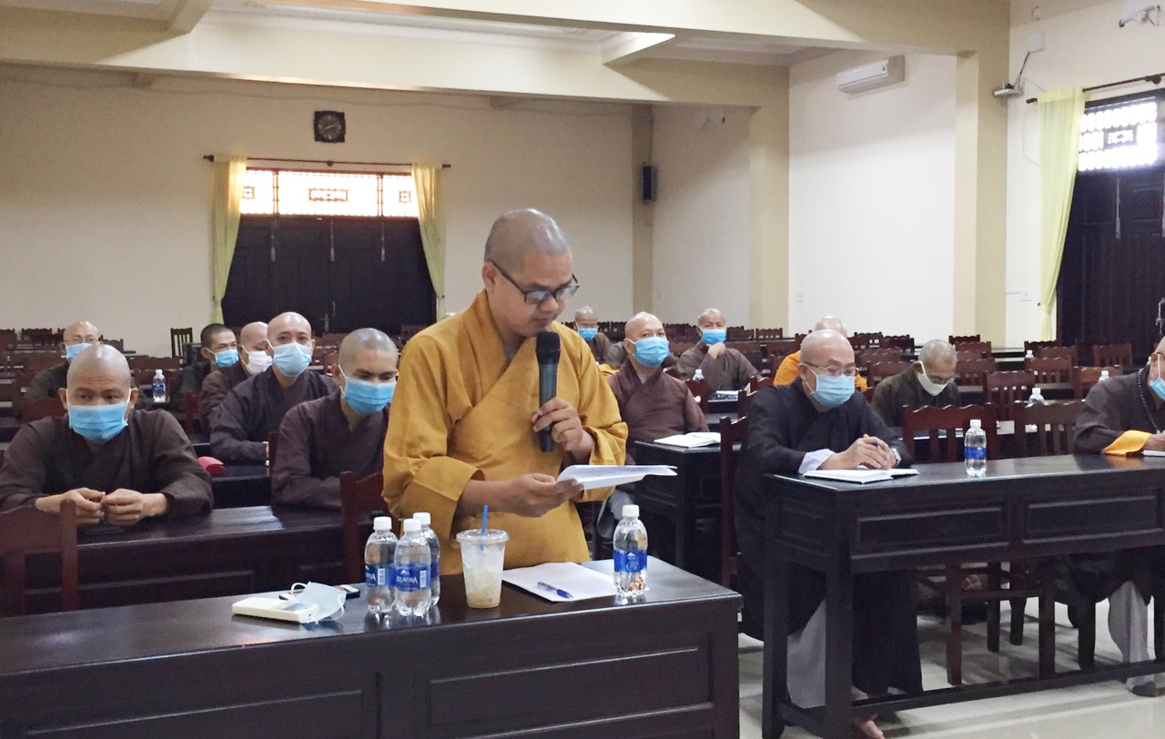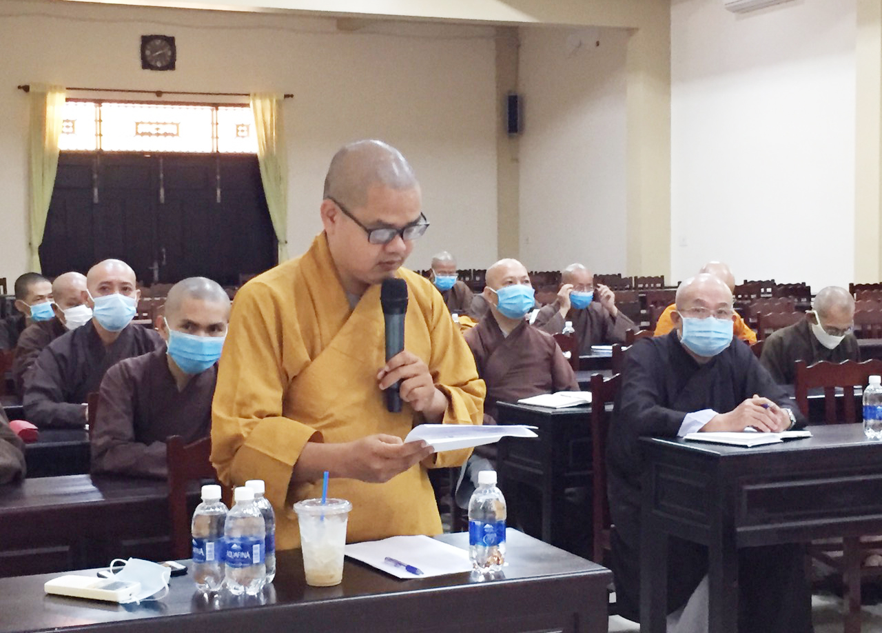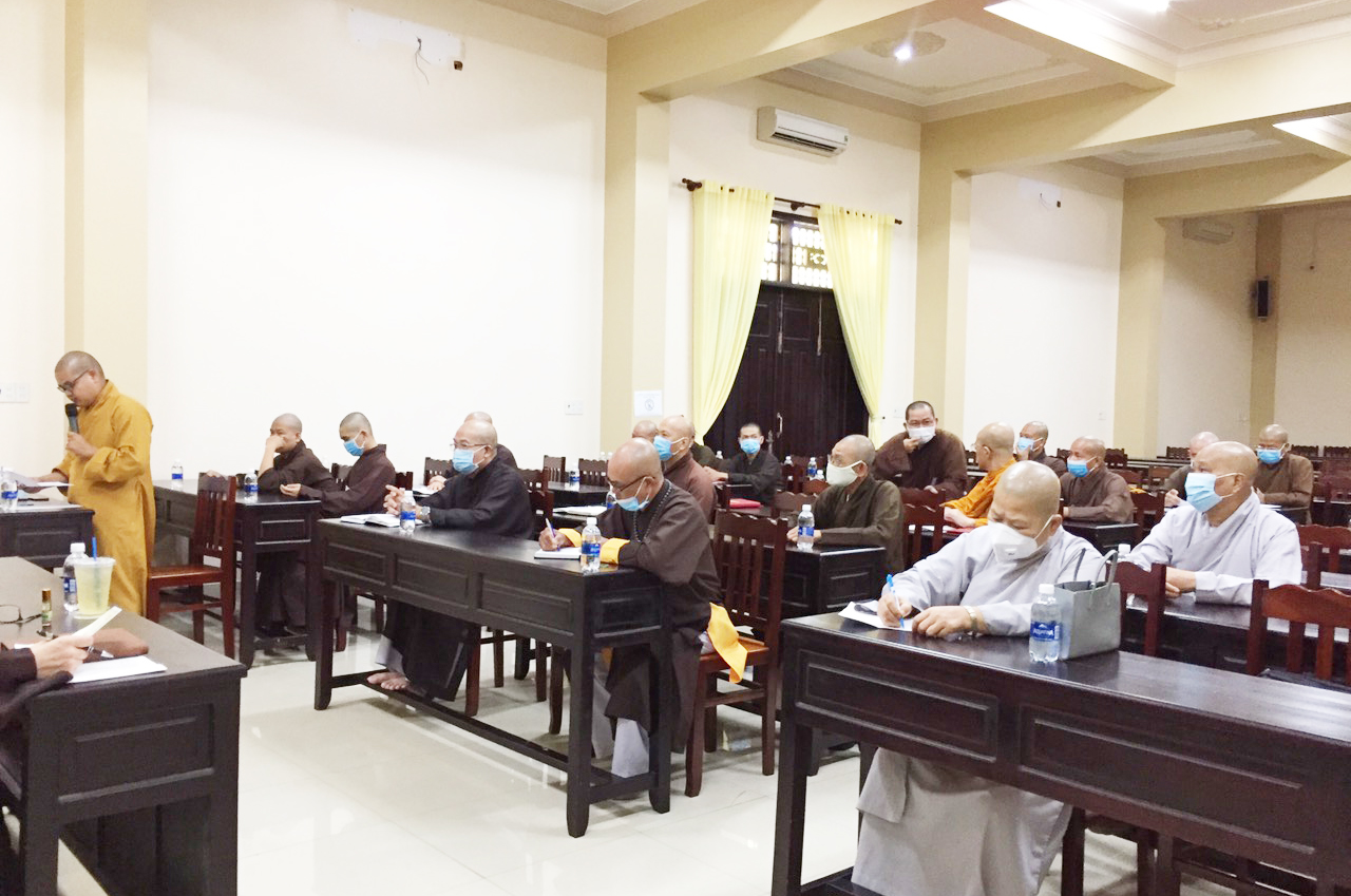 Phát biểu khai mạc phiên họp, HT.Thích Huệ Minh cho biết: Do tình hình diễn biến của dịch bệnh như hiện nay, để đảm bảo tính an toàn và thực hiện nghiêm việc phòng chống dịch bệnh như các công văn của Giáo hội và Nhà nước quy định, các công tác Phật sự sắp tới như: tổ chức Đại lễ Phật Đản PL.2565, khóa An cư Kiết hạ và tổ chức Đại hội Đại biểu Phật giáo tại các huyện cần phải bàn bạt kỹ lưỡng mới có thể thực hiện. Phiên họp hôm nay rất cấp thiết nên chư Tôn đức phải tập trung tìm phương pháp thực hiện hợp lý và hiệu quả.