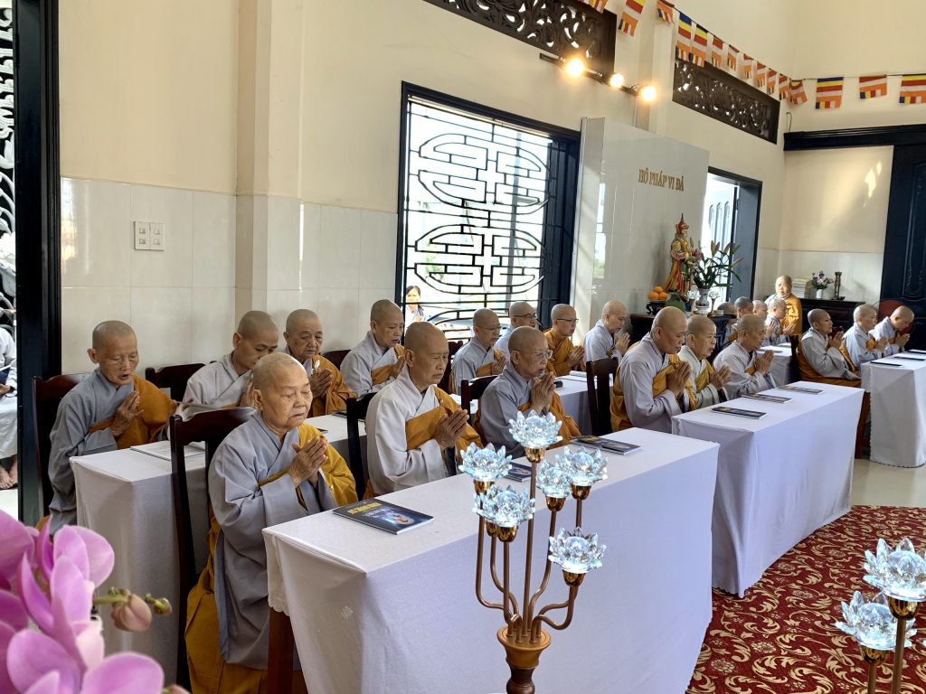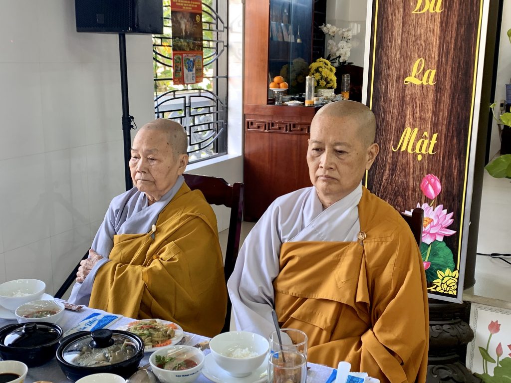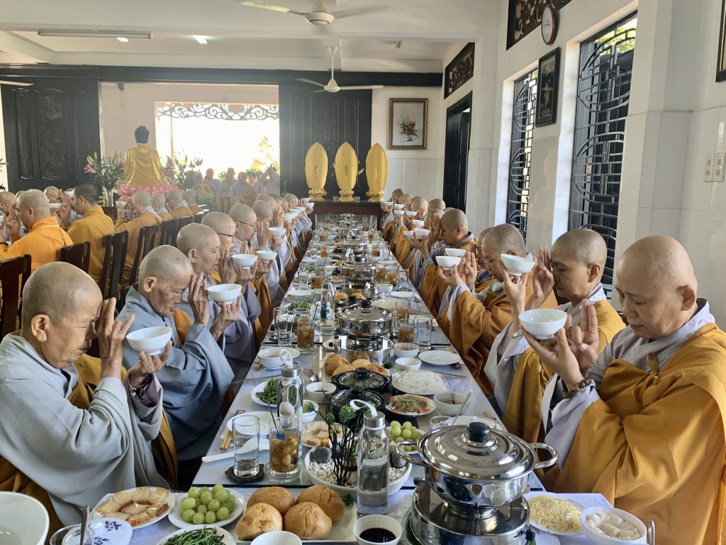 Sau thời khóa trì tụng Kinh Dược Sư là nghi thức cúng dường trai tăng. Tại Trai đường, trước khi tác bạch cúng dường, Ni trưởng Thích Nữ Tịnh Nghiêm bày tỏ niềm cảm xúc khi Trai đàn Dược Sư luôn được sư hộ niệm đông đủ của chư Tôn đức Tăng Ni. Nguyện Đức Phật Dược Sư gia hộ chư Tôn đức Pháp thể khinh an, Ni chúng đạo tràng được nhiều lợi lạc cùng hồi hướng duyên lành đến khắp pháp giới chúng sanh thoát khổ đắc lạc.