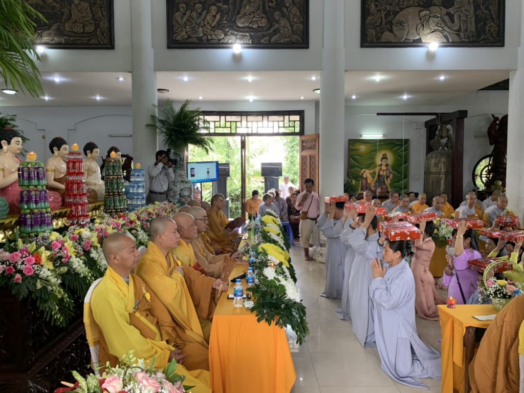 Buổi lễ diễn ra long trọng và trang nghiêm dưới sự chứng minh của HT.Thích Hạnh Trân - chứng minh BTS GHPGVN tỉnh Tiền Giang; HT.Thích Giác Nhân – UV HĐTS, Phó trưởng BTS kiêm Trưởng ban Hoằng pháp Phật giáo tỉnh Tiền Giang; HT.Thích Thiện Tín - Chứng minh BTS Phật giáo huyện Cái Bè; TT.Thích Quảng Lộc - Phó BTS kiêm Trưởng ban Từ thiện Xã hội GHPGVN tỉnh, Trưởng BTS Phật giáo TP.Mỹ Tho; TT.Thích Thiện Lưu – UV Thường trực BTS GHPGVN tỉnh Tiền Giang, Trưởng BTS Phật giáo huyện Cái Bè; TT.Thích Thiện Sanh – Chứng minh BTS GHPGVN huyện Cái Bè; ĐĐ.Thích Nhuận Đức - Phó BTS kiêm Trưởng ban Hướng dẫn Phật tử tỉnh Tiền Giang; TT.Thích Quảng Thiện – UV BTS GHPGVN tỉnh Tiền Giang, Trưởng ban Nghi lễ Phật giáo huyện Cái Bè; ĐĐ.Thích Đức Thắng - UV TT BTS GHPGVN tỉnh, Trưởng BTS Phật giáo huyện Tân Phước; ĐĐ.Thích Huệ Chơn – Phó ban Hướng dẫn Phật tử tỉnh Tiền Giang, Phó BTS kiêm Trưởng ban Hoằng pháp GHPGVN huyện Cái Bè; chư Tôn đức Tăng Ni trong và ngoài huyện Cái Bè, cùng đông đảo Phật tử đồng về tham dự.