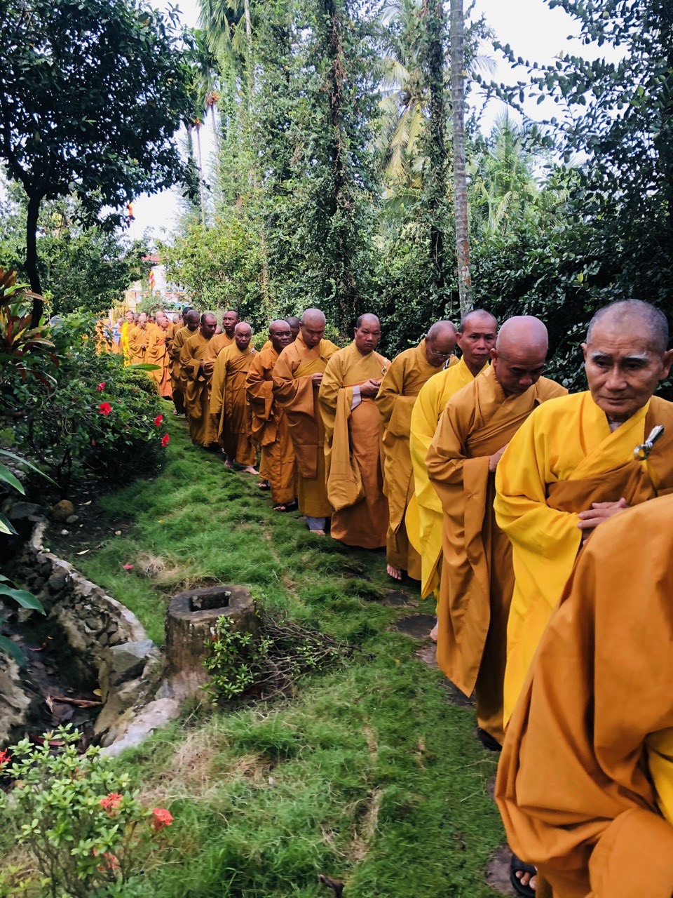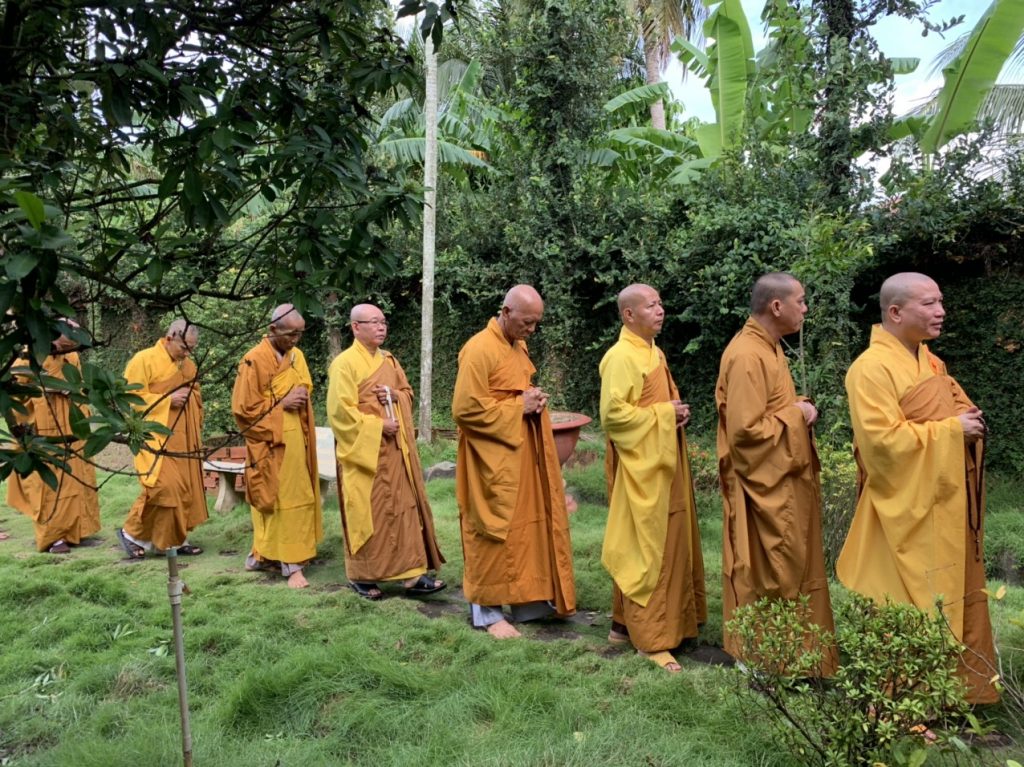 Dịp này, Đại đức Trụ trì còn tổ chức nghi thức Cổ Phật khất thực, tái hiện lại hình bóng Tăng đoàn thời Đức Phật tại thế, bưng bình bát đi khất thực để cho hàng Phật tử gieo duyên cúng dường nhân ngày Vu lan Báo hiếu năm 2020.