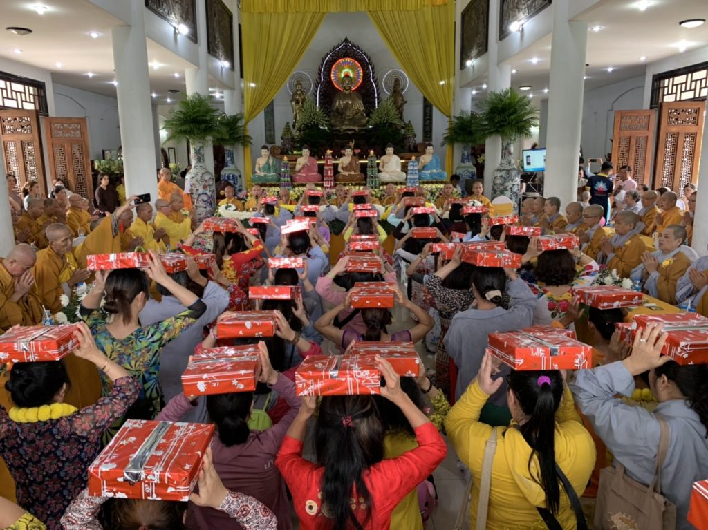 Nhân mùa Vu lan, ngoài việc về Chùa dự lễ, quý Phật tử còn phát tâm dâng Pháp ý cúng dường, tạo Phước điền hồi hướng tri ân các đấng sanh thành.