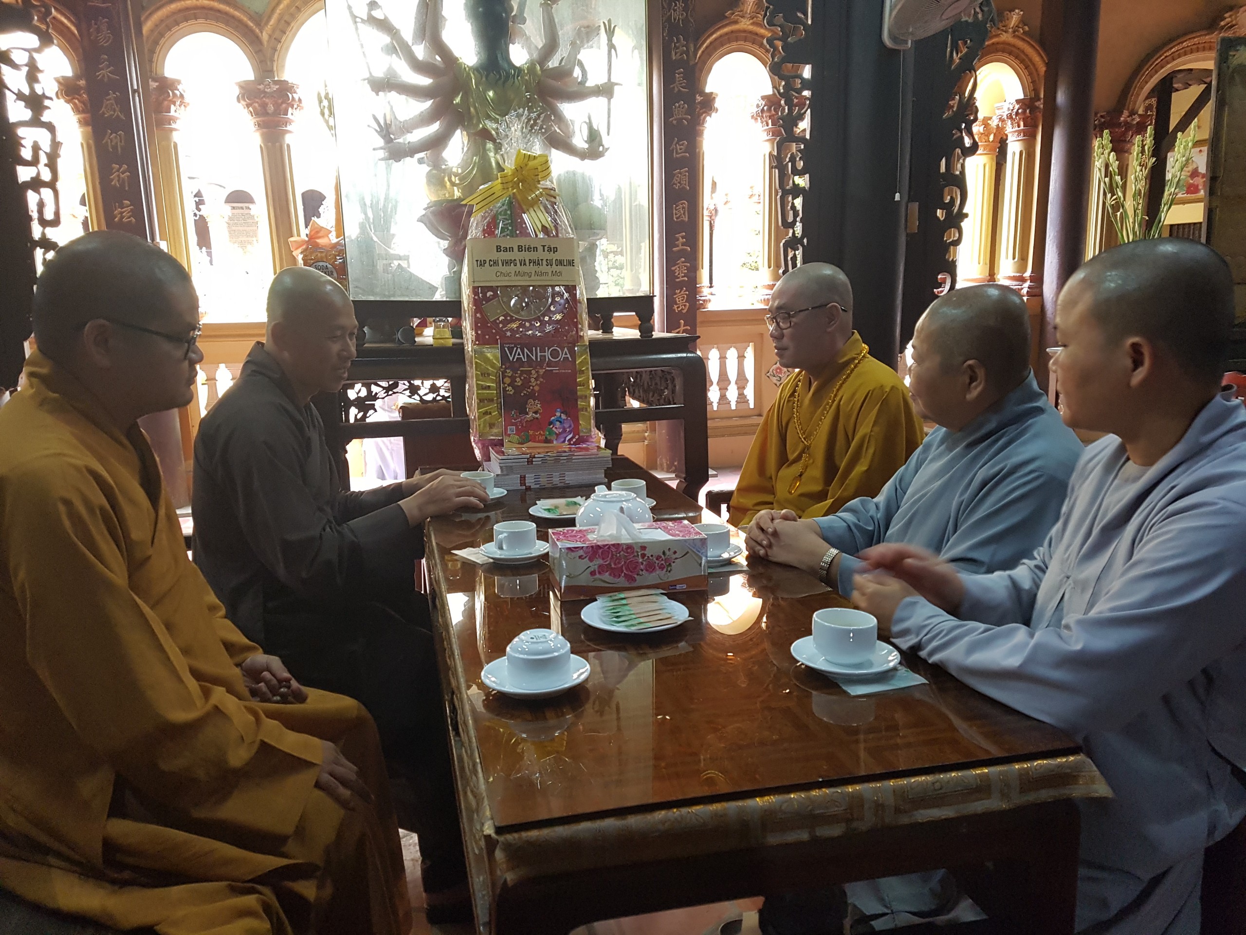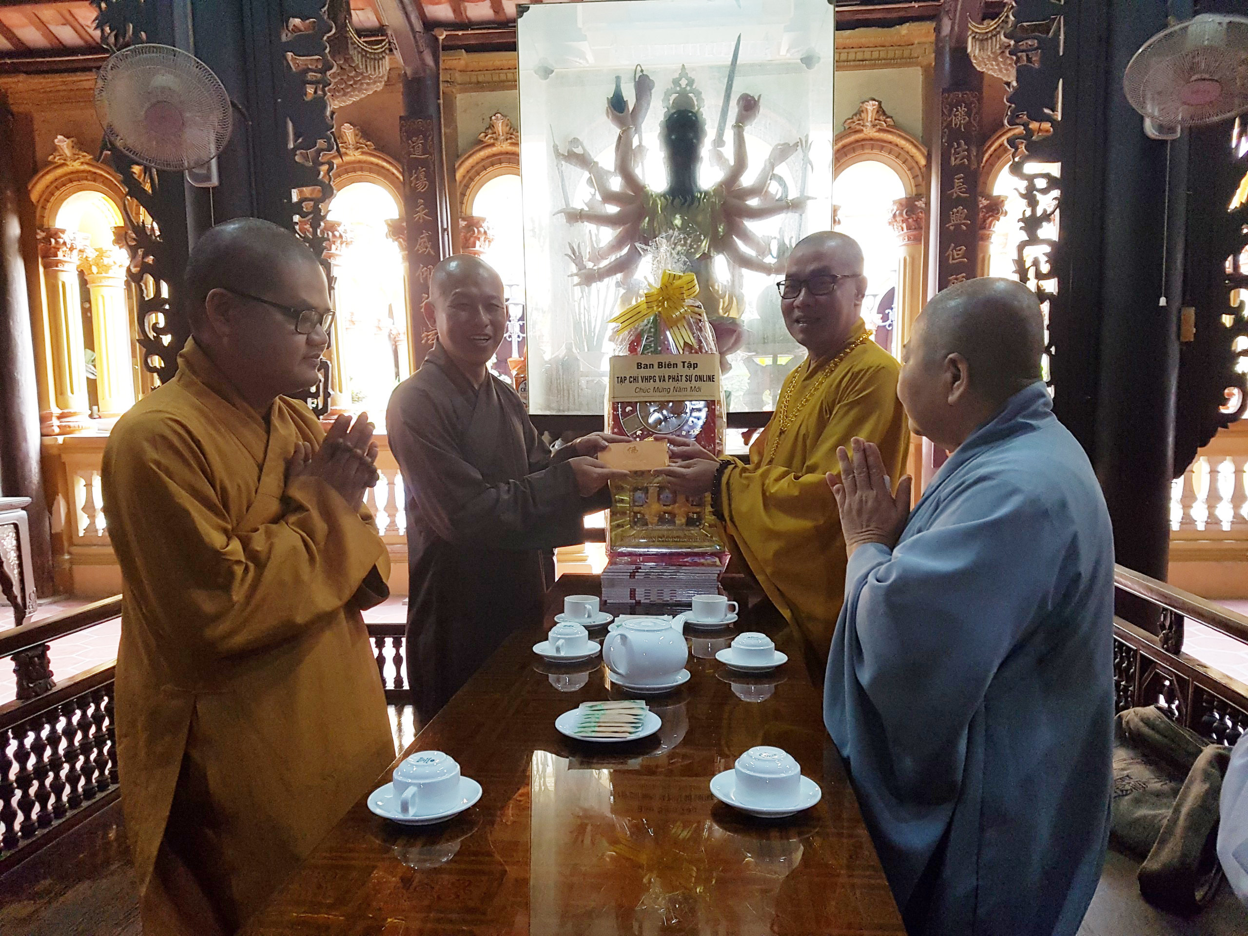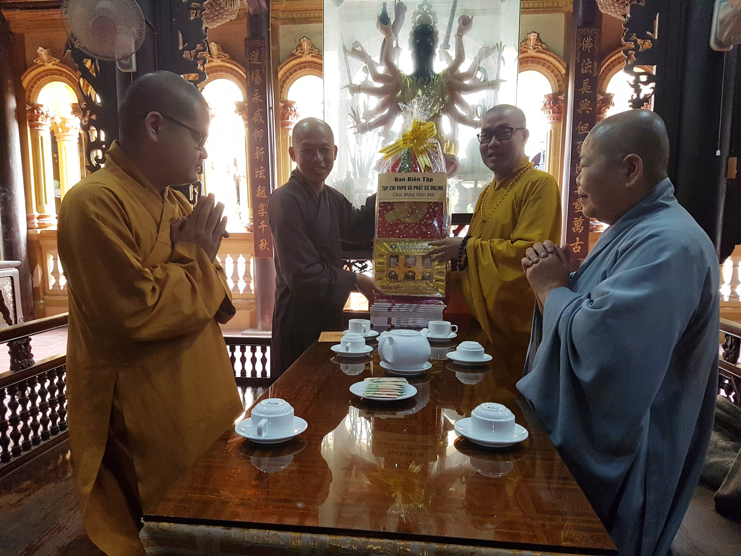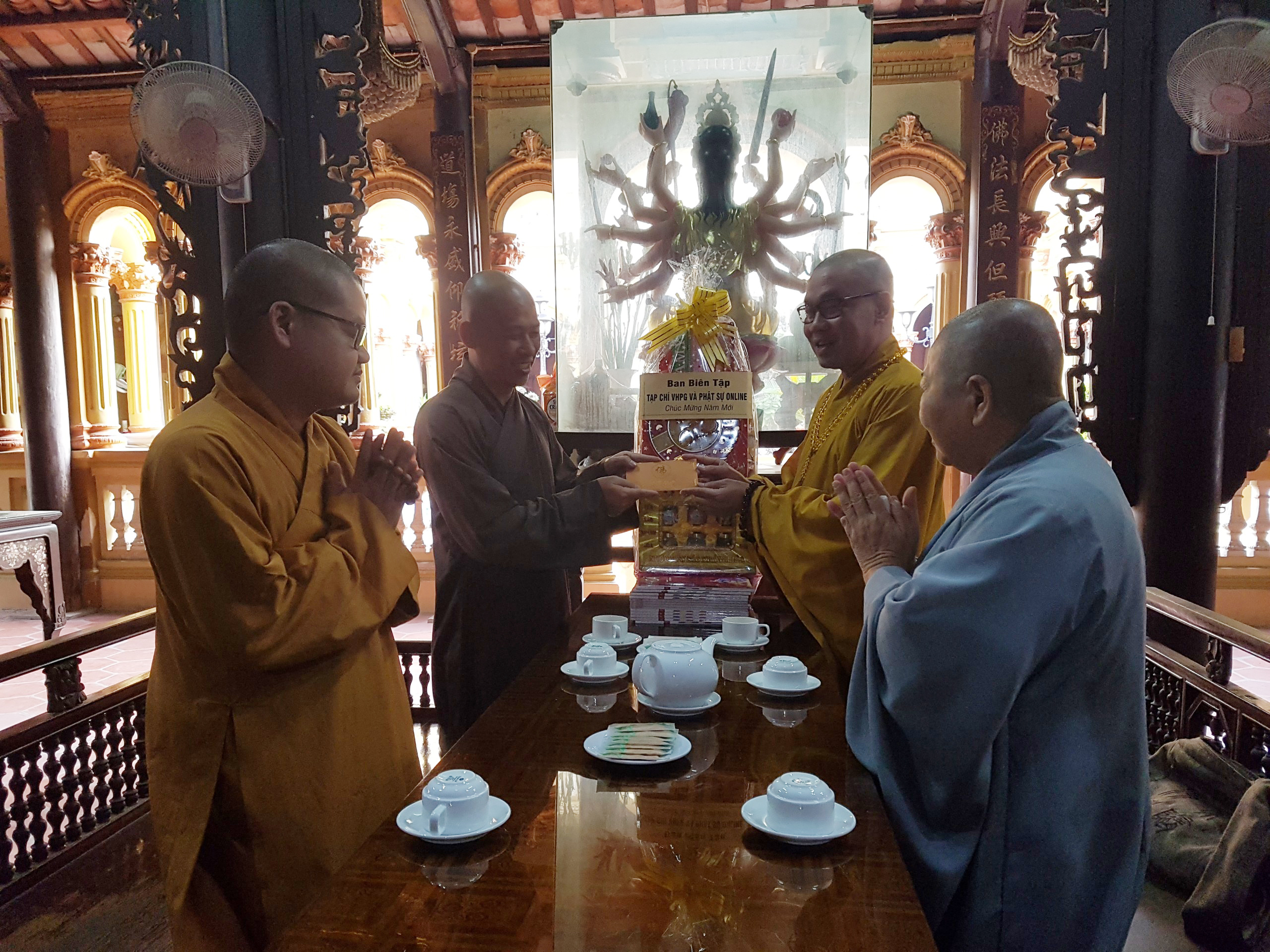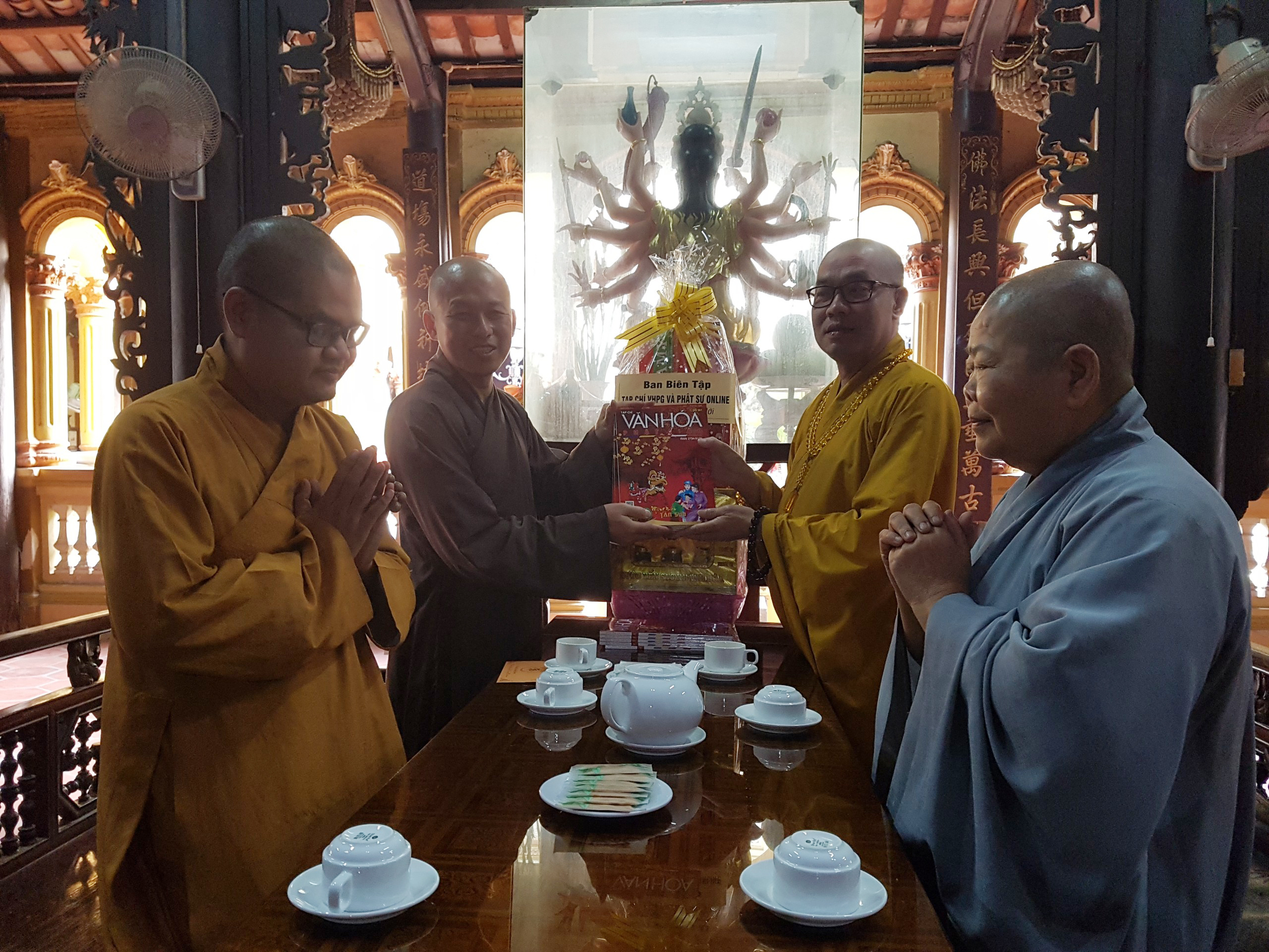 TT.Thích Quảng Lộc – Phó trưởng BTS GHPGVN tỉnh Tiền Giang, Trưởng BTS Phật giáo TP.Mỹ Tho; ĐĐ.Thích Huệ Phát – Chánh Thư ký BTS GHPGVN tỉnh; NT.Thích Nữ Tịnh Nghiêm – Phó BTS, Trưởng Phân ban Ni giới tỉnh; SC.Thích Nữ Diệu Tâm - Ủy viên thường trực BTS, trưởng ban Thông tin Truyền thông Phật giáo tỉnh Tiền Giang đã thân mật tiếp đón Thượng tọa Phó Tổng Biên tập Thường trực Tạp chí Văn hóa Phật giáo.
