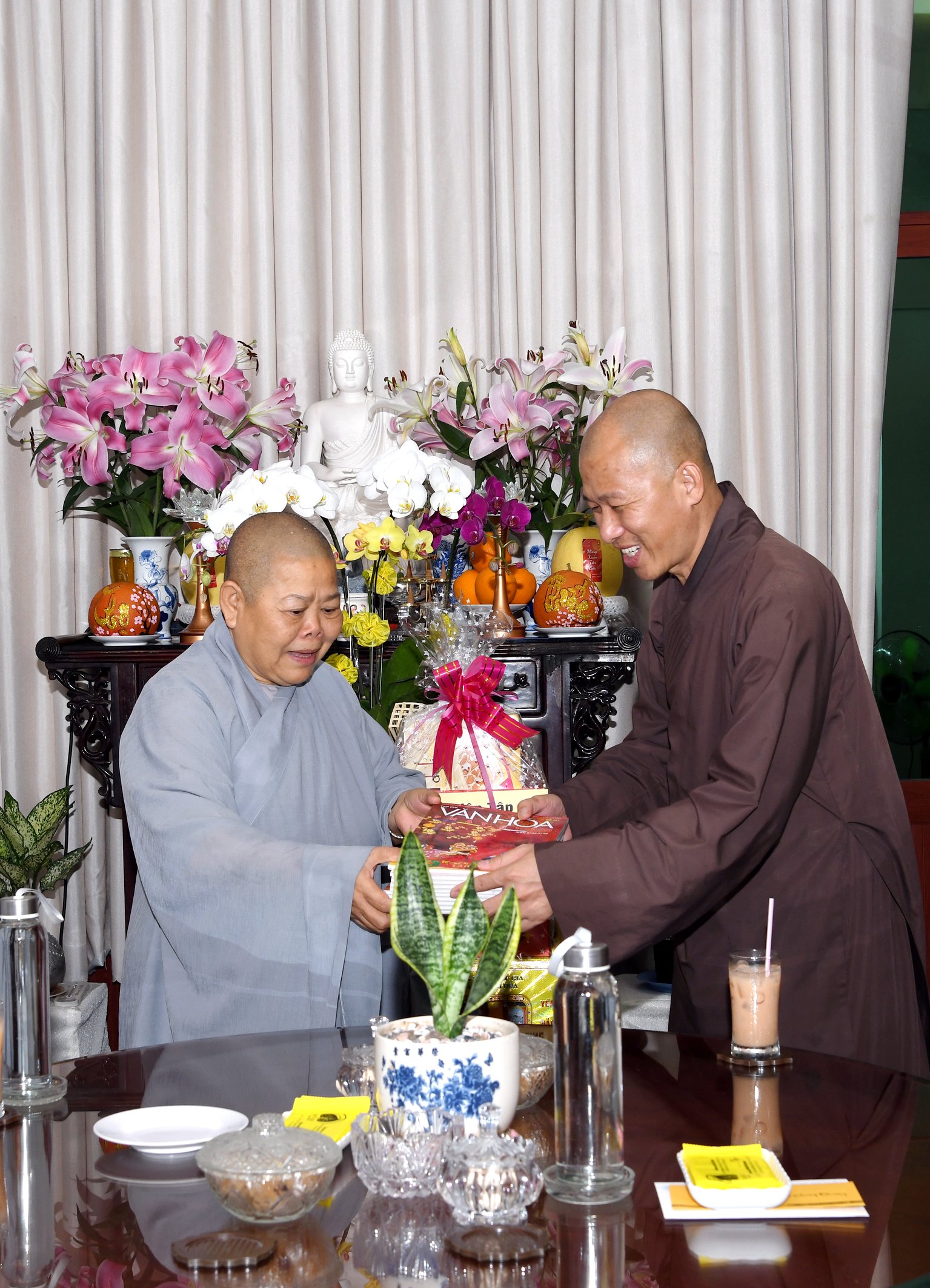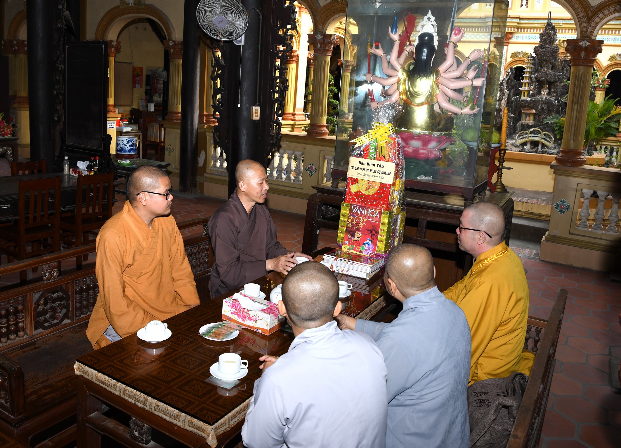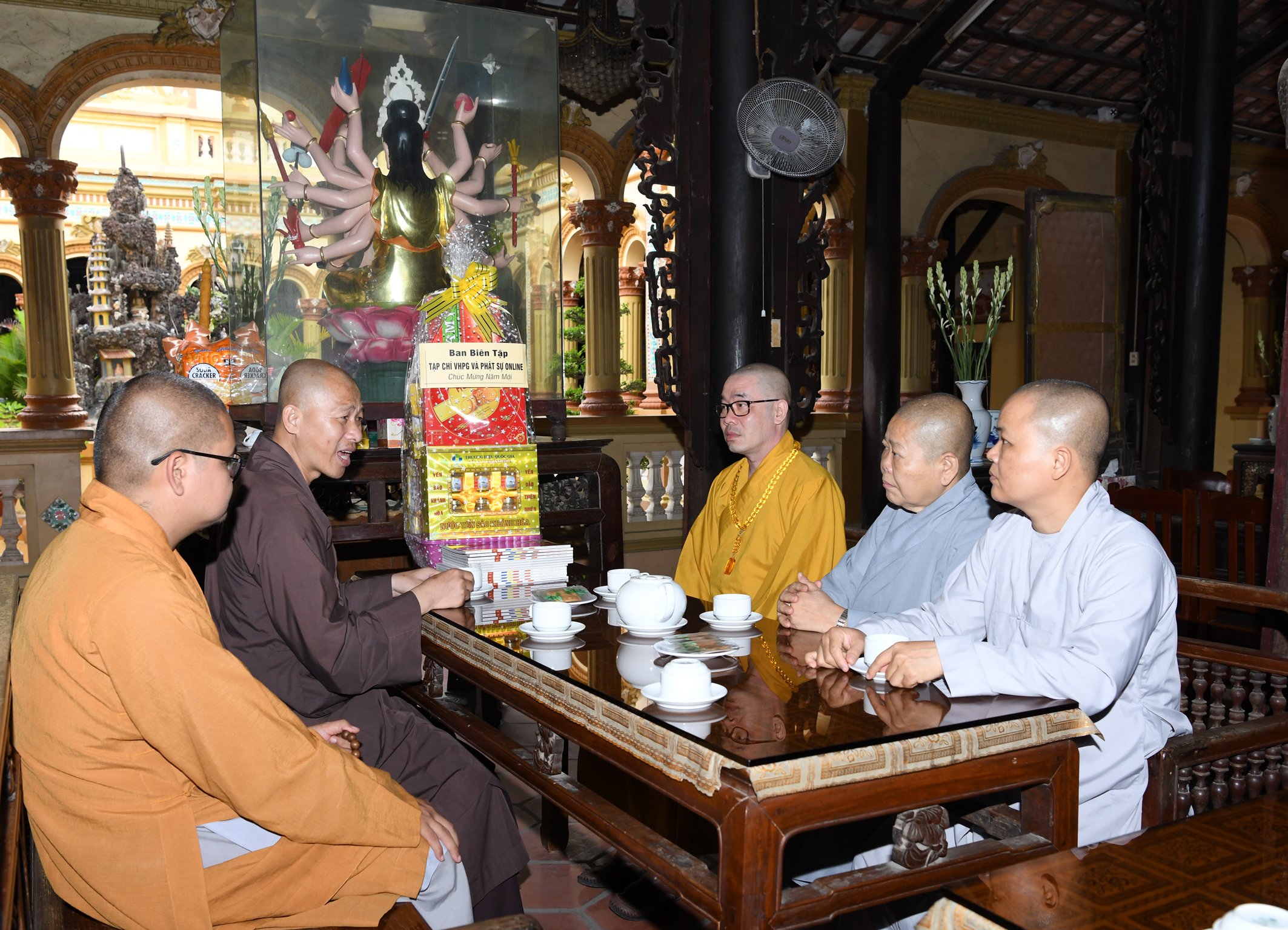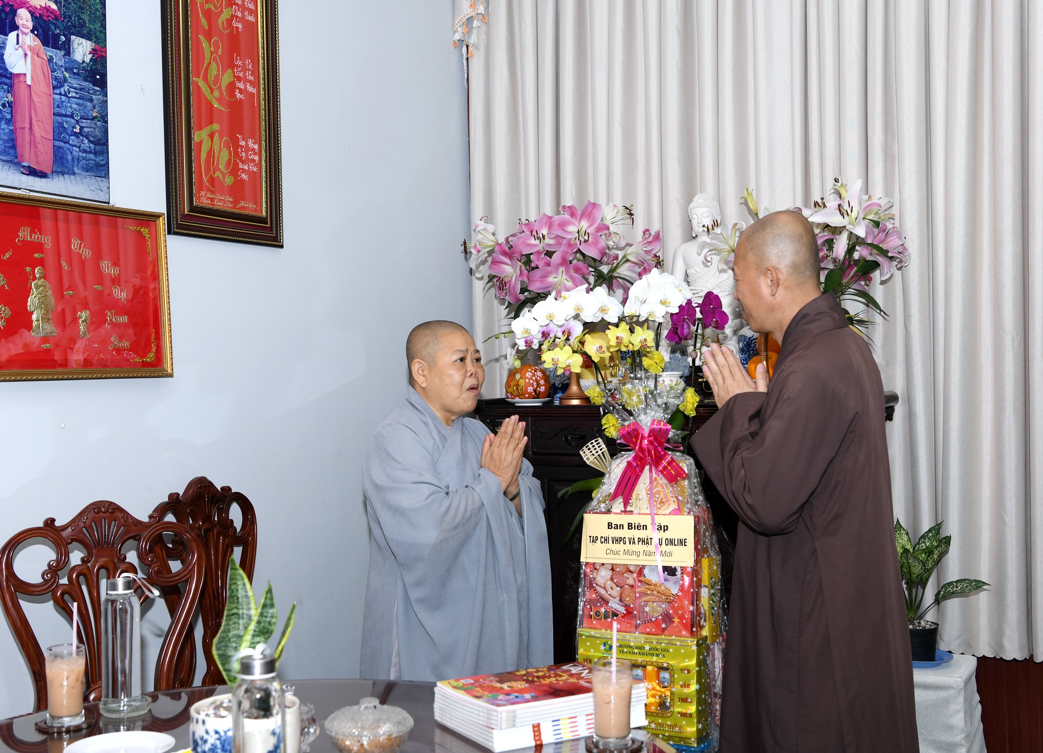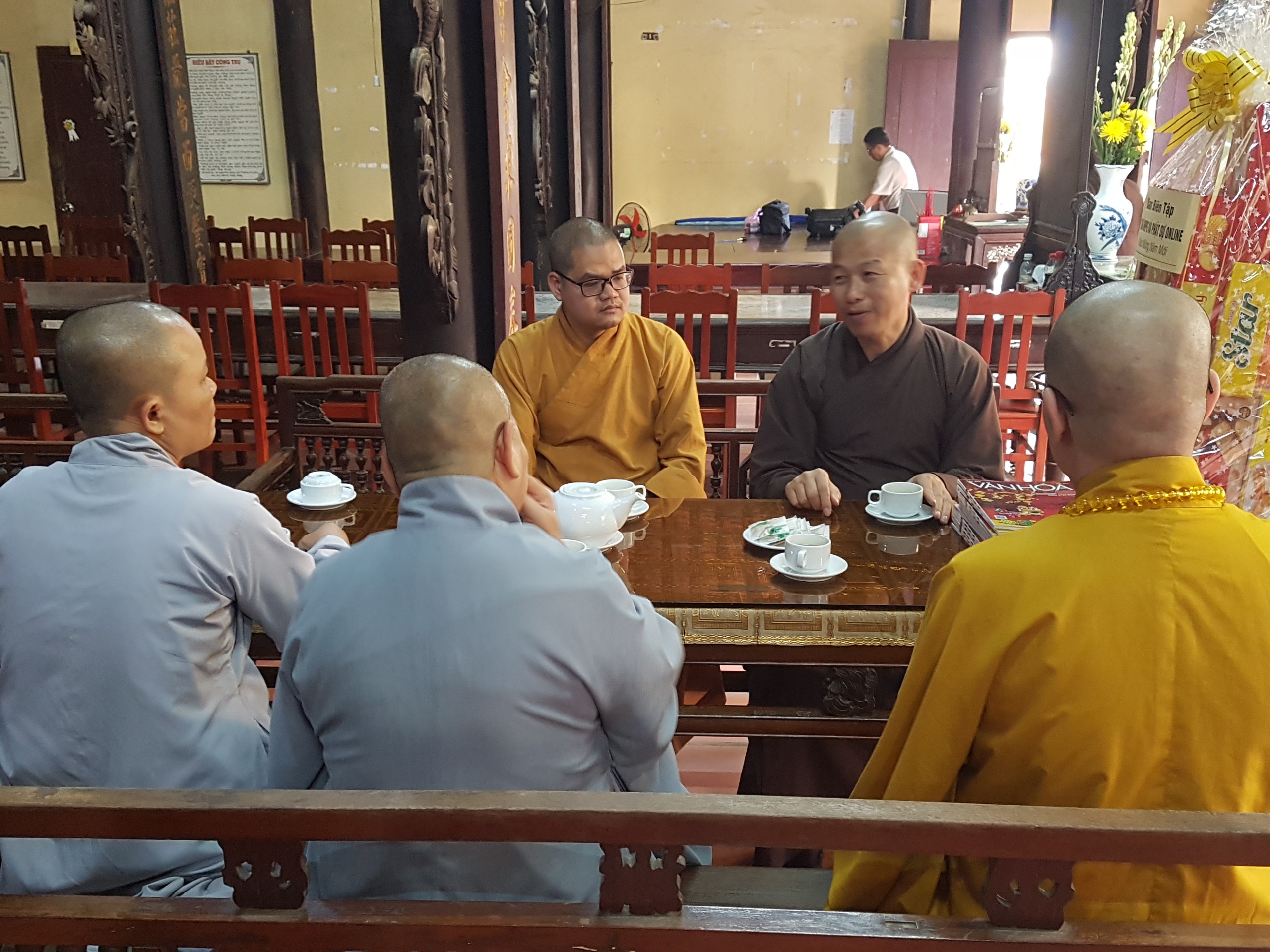 TT.Thích Quảng Lộc – Phó trưởng BTS GHPGVN tỉnh Tiền Giang, Trưởng BTS Phật giáo TP.Mỹ Tho; ĐĐ.Thích Huệ Phát – Chánh Thư ký BTS GHPGVN tỉnh; NT.Thích Nữ Tịnh Nghiêm – Phó BTS, Trưởng Phân ban Ni giới tỉnh; SC.Thích Nữ Diệu Tâm - Ủy viên thường trực BTS, trưởng ban Thông tin Truyền thông Phật giáo tỉnh Tiền Giang đã thân mật tiếp đón Thượng tọa Phó Tổng Biên tập Thường trực Tạp chí Văn hóa Phật giáo.