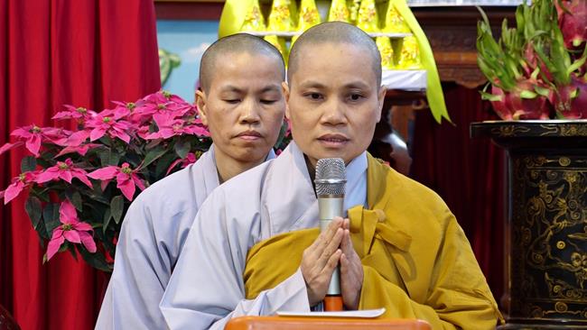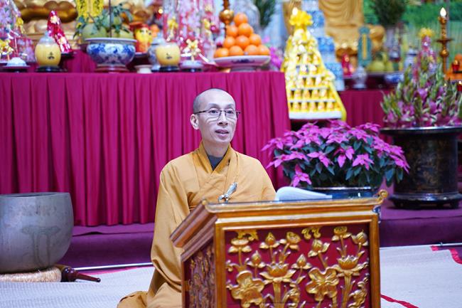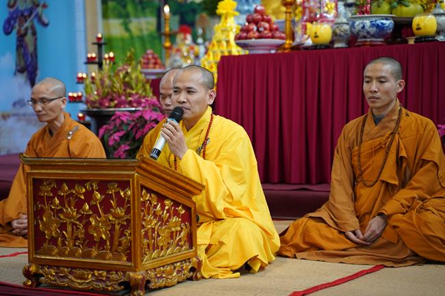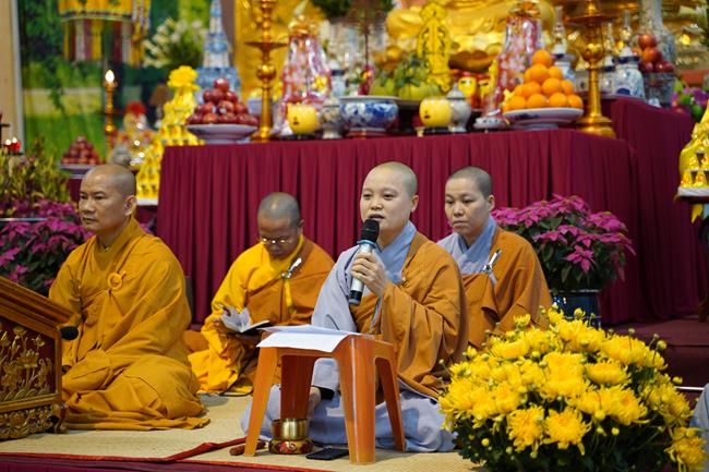 Sau khi giảng giải về bốn pháp mà Đức Phật chỉ dạy, sư cô khuyến tấn đại chúng "nên giữ những nguyên tắc đạo đức để xây dựng một cuộc sống lành mạnh, trau dồi kiến thức Phật pháp, sống đúng với chính pháp của Đức Phật đã dạy, làm những việc làm thiết thực để tạo nên phúc cho đời này và đời sau. Chúng ta nên giữ tinh thần sống lục hòa, cùng hòa ái với nhau từ tinh thần đến với vật chất, biết chia sẻ thương yêu, cảm thông, luôn trải tâm thiện lành vô lượng đến tất cả mọi người và chúng sinh. Giúp đỡ những người khốn khó để họ luôn có những niềm vui tích cực, tránh xa những ưu tư buồn khổ và thực hành những điều lành. Khi tránh xa những xấu ác, biết làm những việc thiện lành, chúng ta sẽ đến với giá trị Chân - Thiện - Mỹ, con đường của niềm an vui và hạnh phúc".