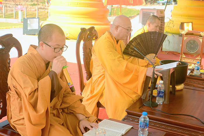 Cùng ngày, HT Thích Thanh Phúc - Giám Luật Hạ Trường cùng với Đại đức Thích Giác Hoằng đã dẫn chúng tụng Kinh Sám Hối cũng như Kinh Dược Sư Bản Nguyện vào đầu giờ chiều.