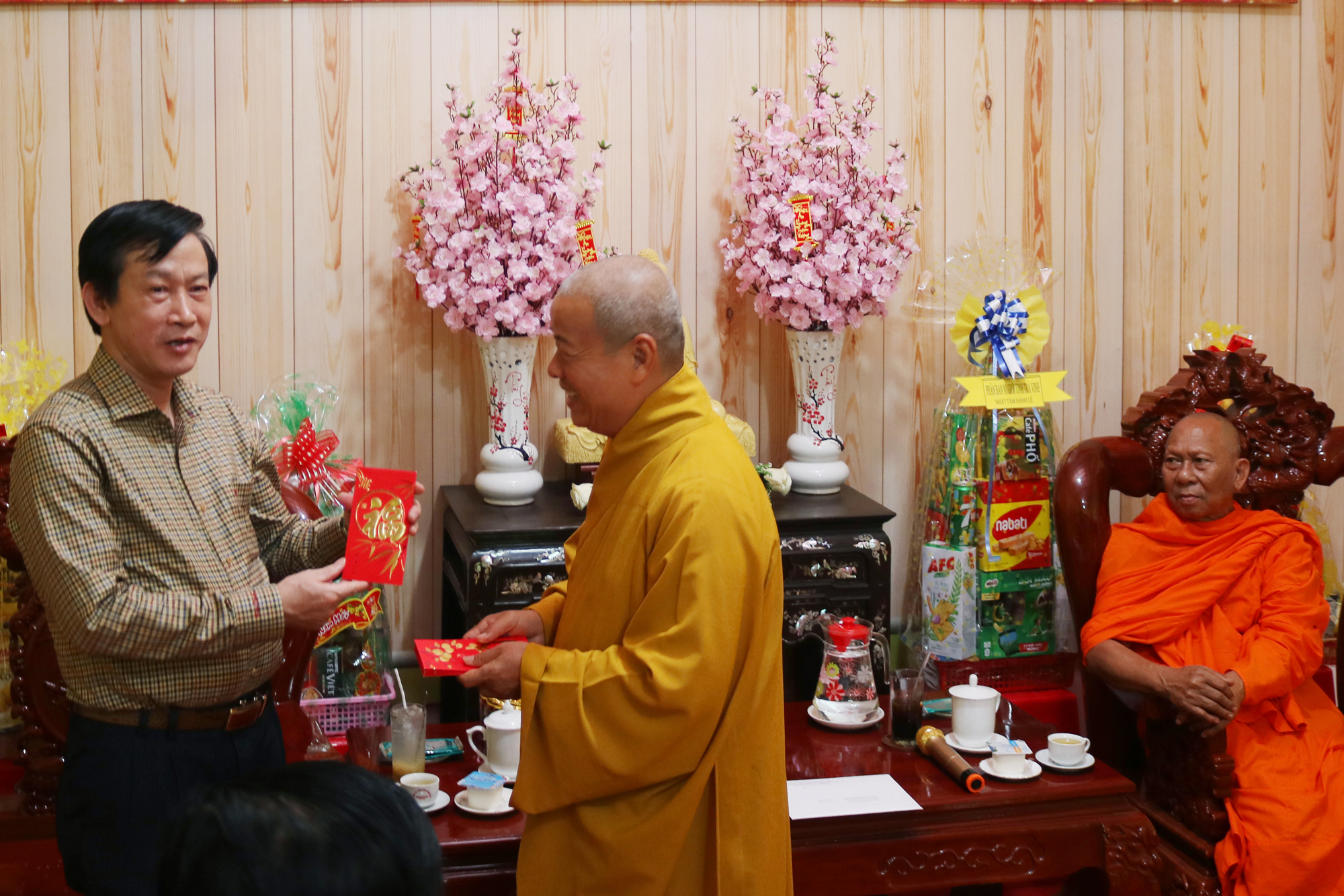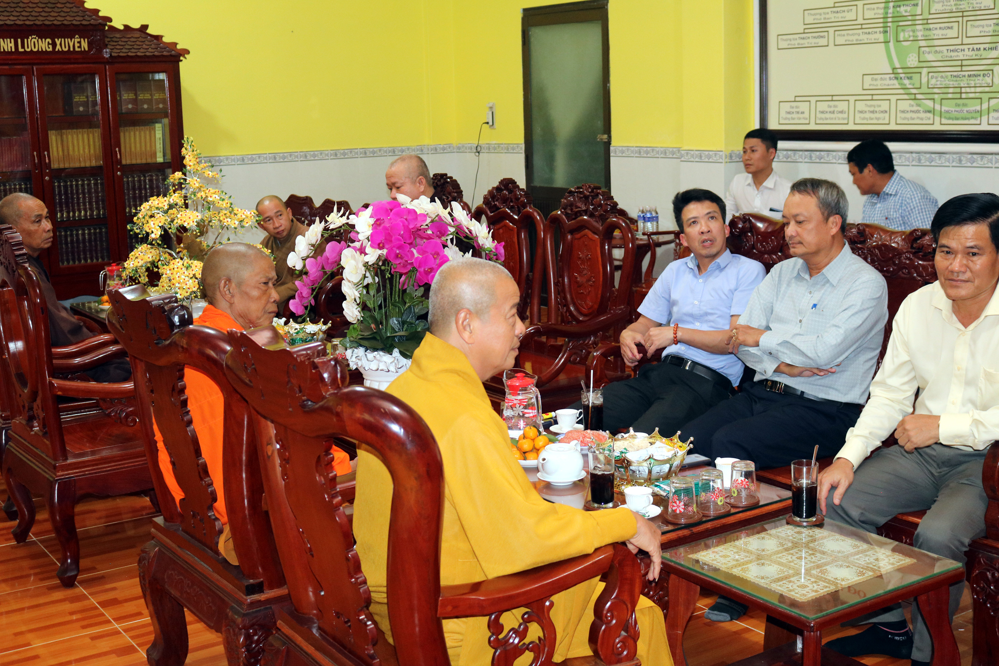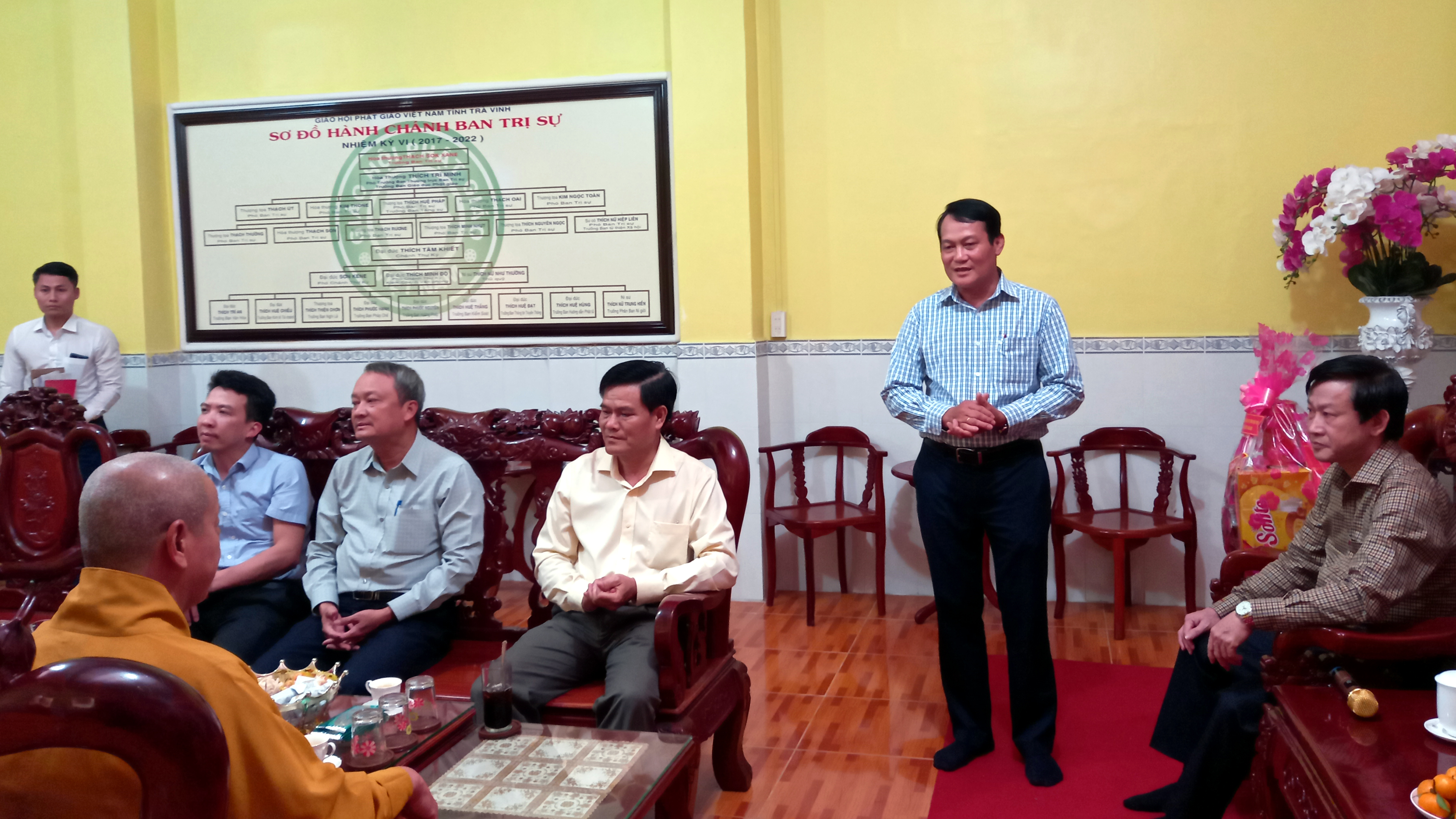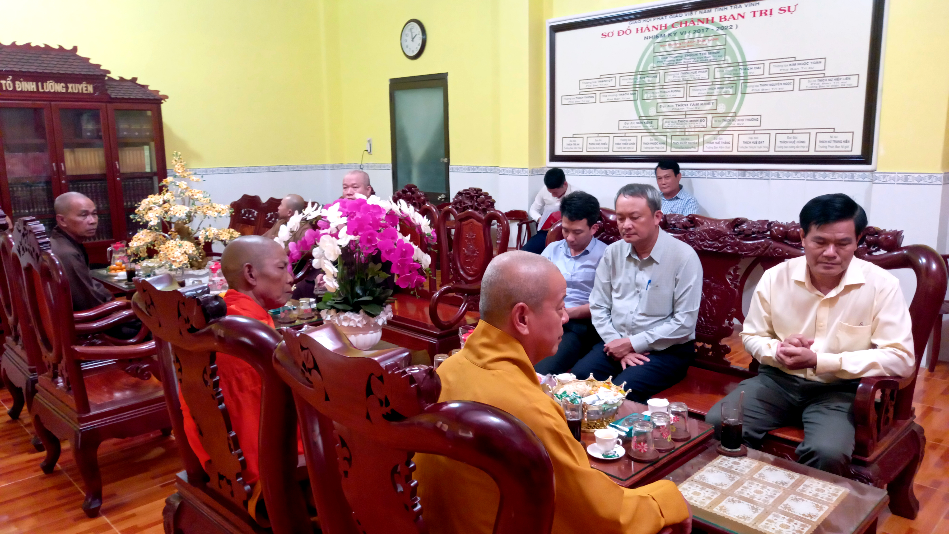 Buổi chiều cùng ngày, ông Bùi Thành Thương – Giám đốc Sở Nội vụ tỉnh Trà Vinh cũng đã đến thăm và chúc Tết chư Tôn đức Ban Thường trực BTS GHPGVN tỉnh tại chùa Lưỡng Xuyên. Tháp tùng đoàn có ông Lê Văn Tịnh – Trưởng ban Tôn giáo tỉnh.
