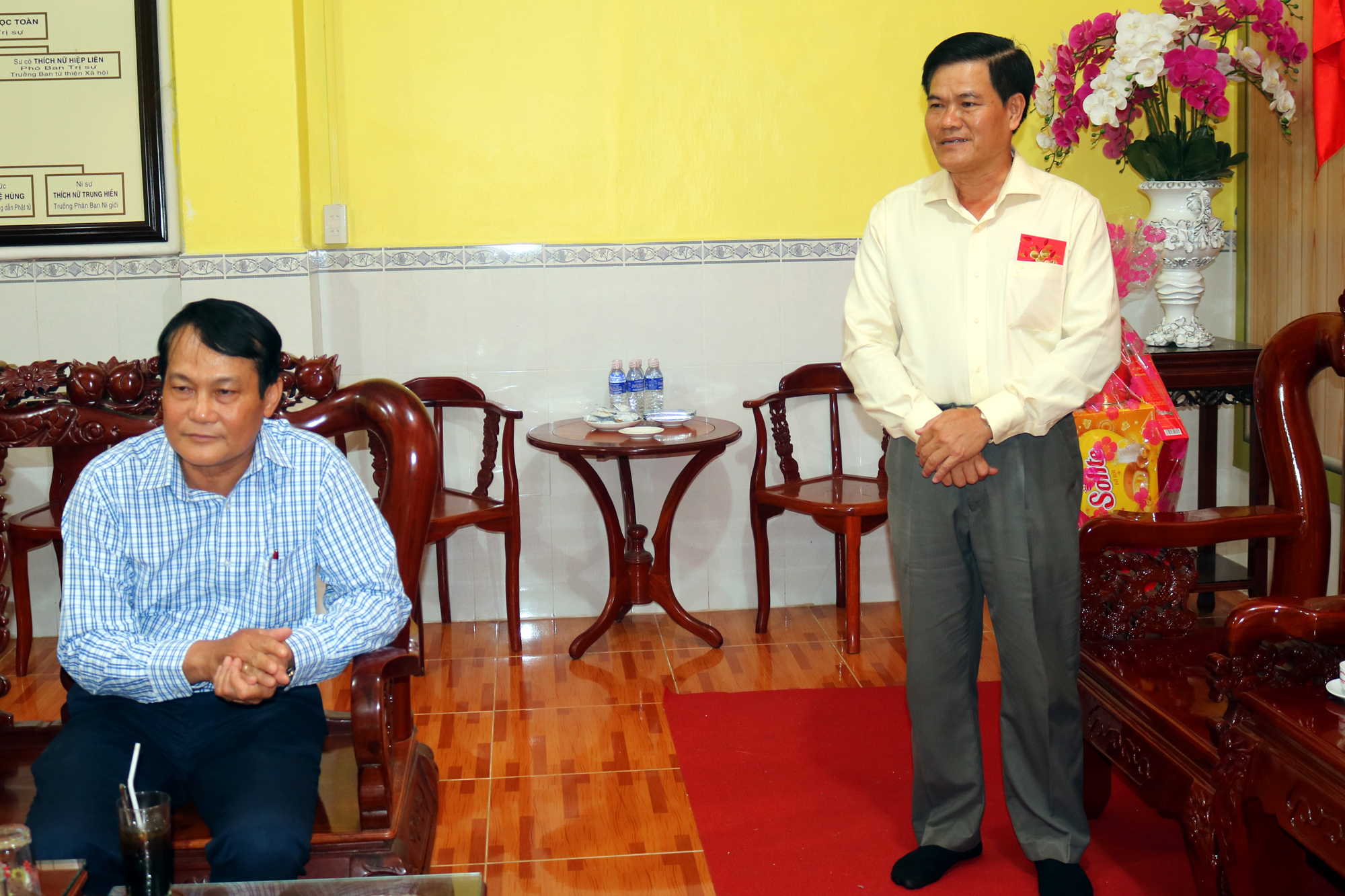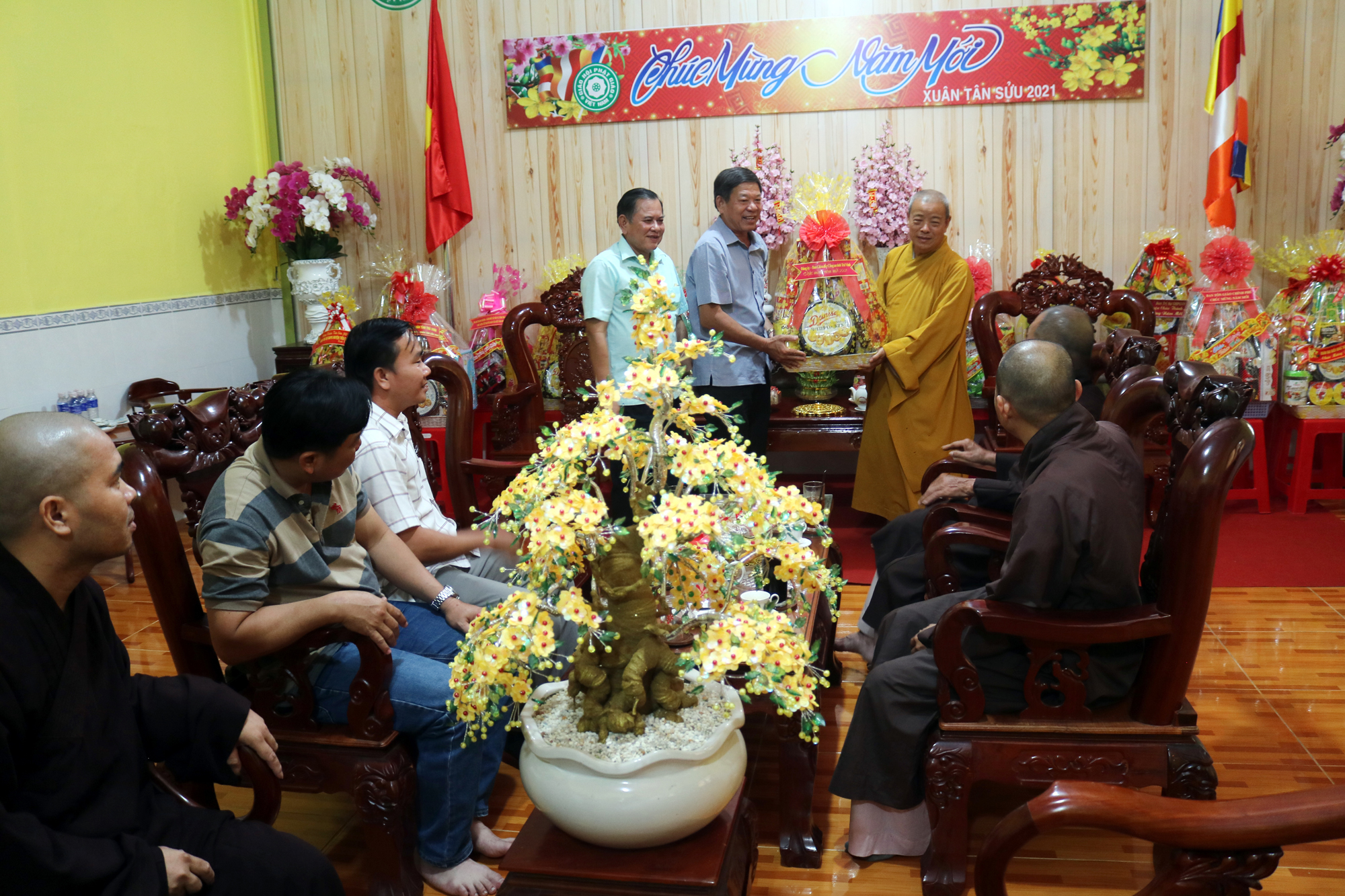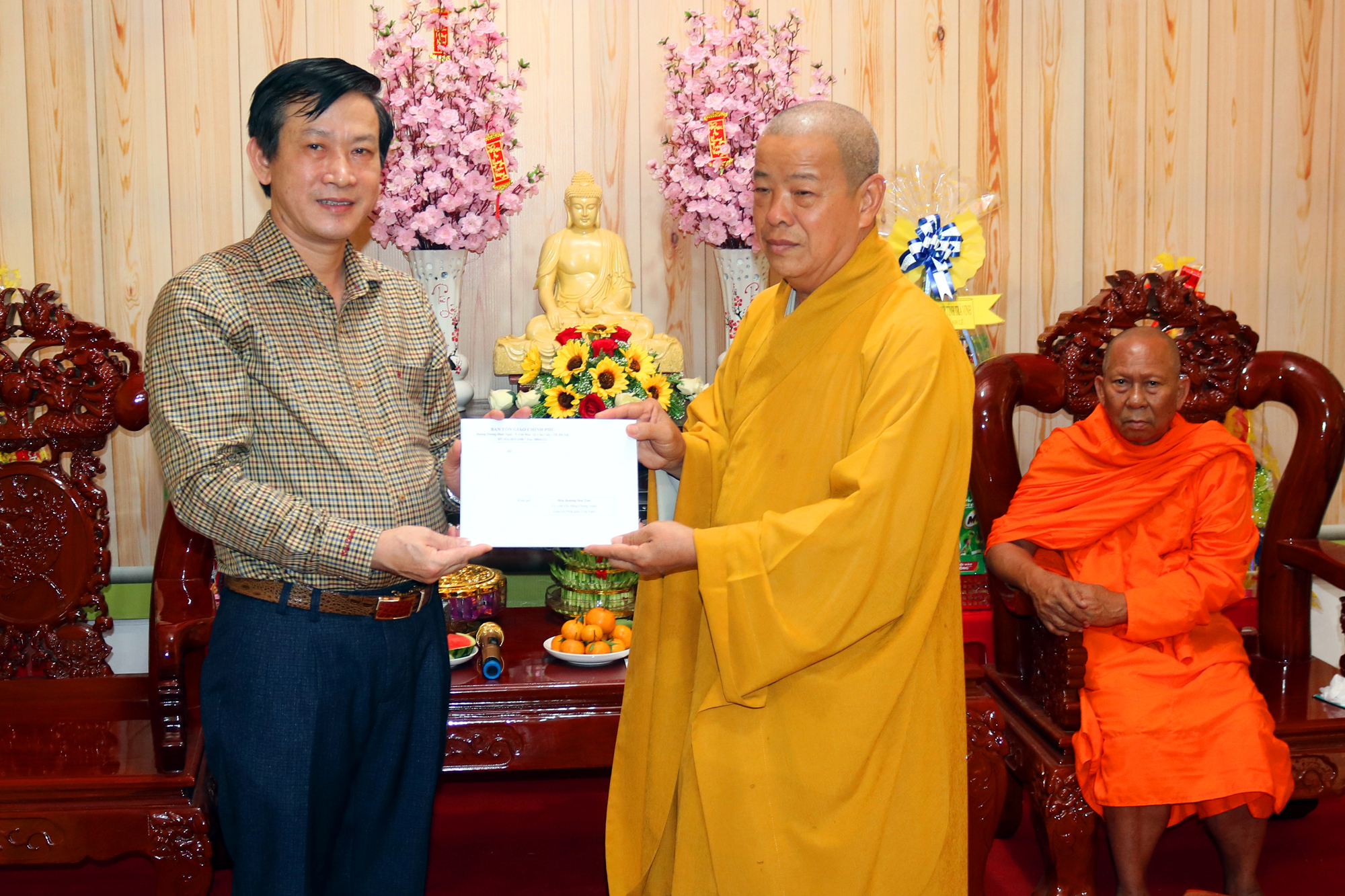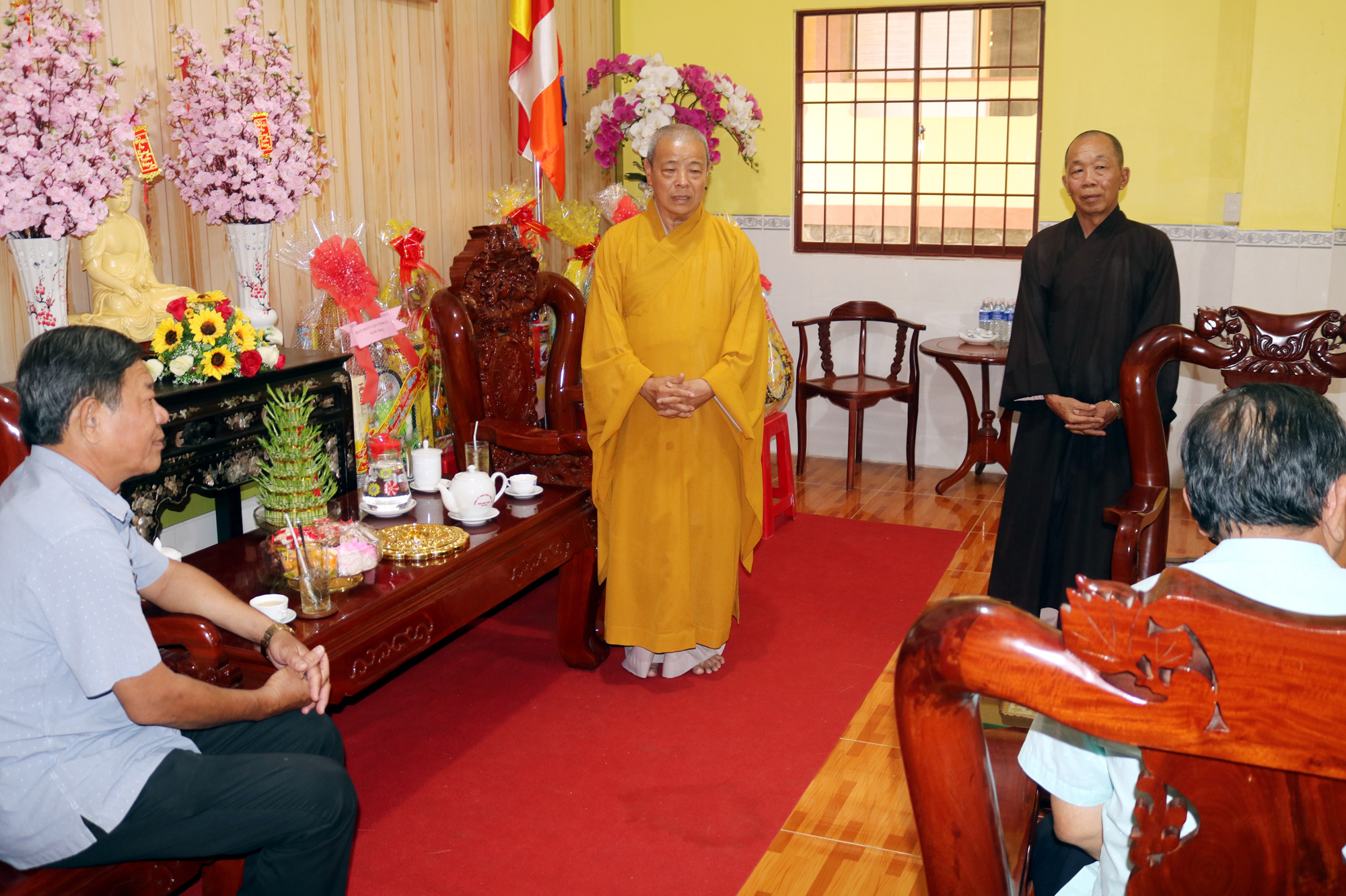 Buổi chiều cùng ngày, ông Bùi Thành Thương – Giám đốc Sở Nội vụ tỉnh Trà Vinh cũng đã đến thăm và chúc Tết chư Tôn đức Ban Thường trực BTS GHPGVN tỉnh tại chùa Lưỡng Xuyên. Tháp tùng đoàn có ông Lê Văn Tịnh – Trưởng ban Tôn giáo tỉnh.
