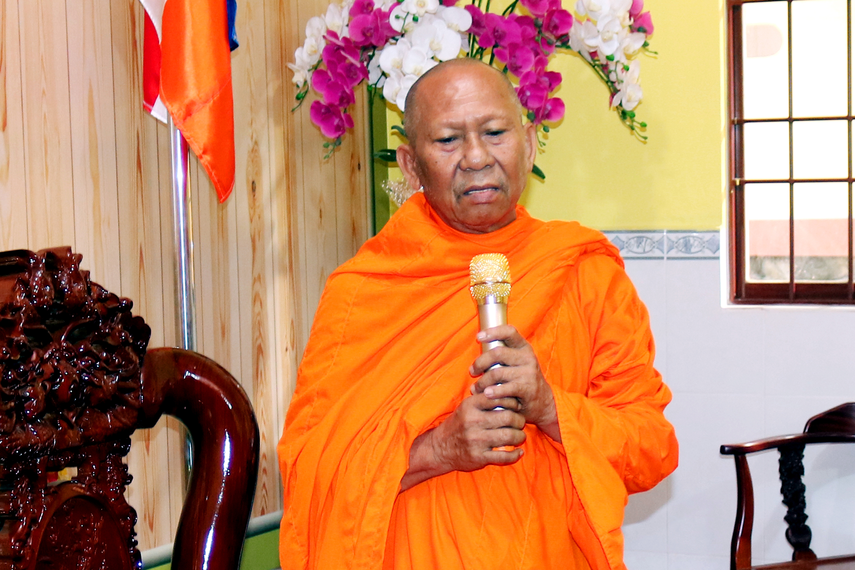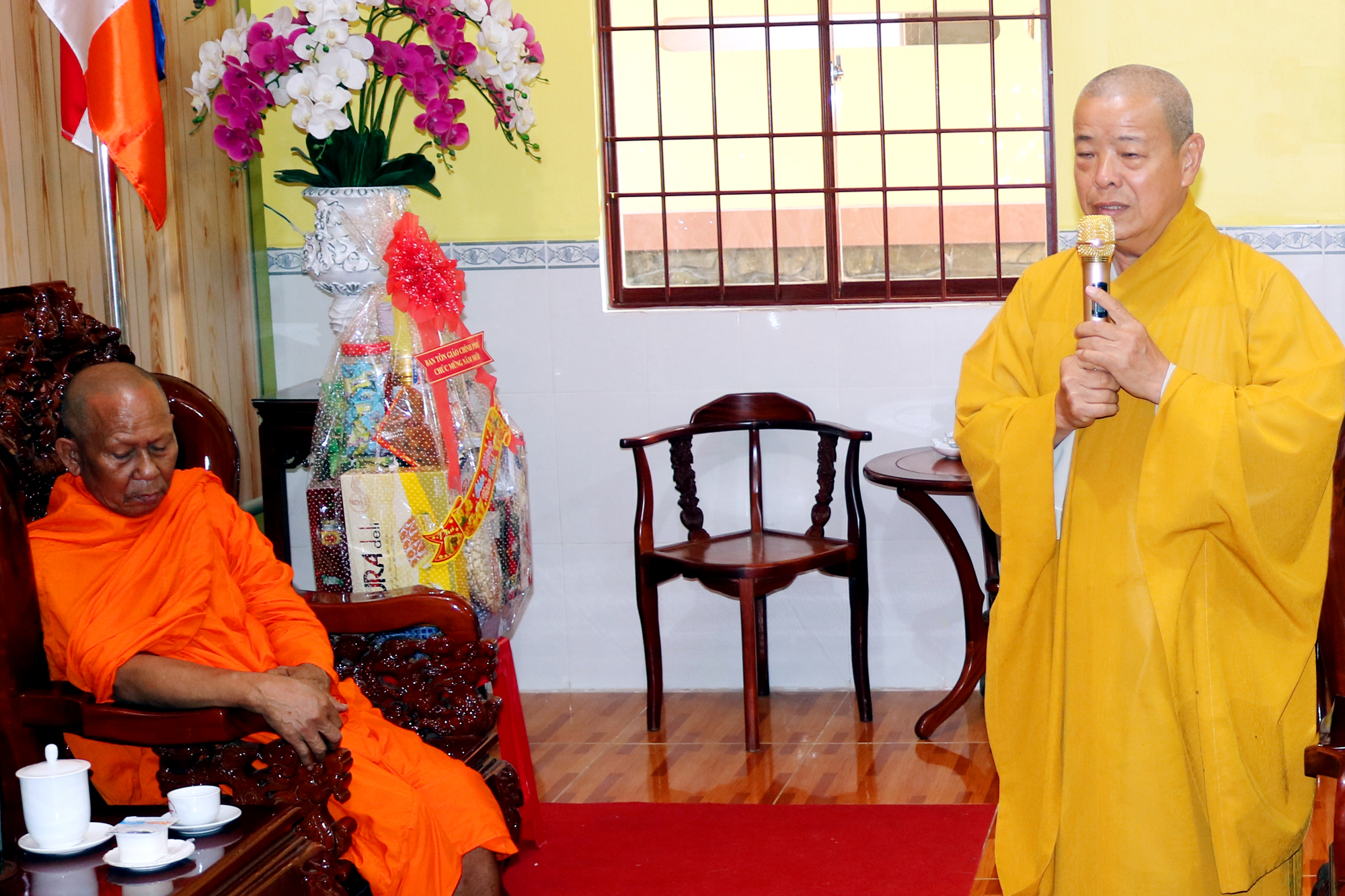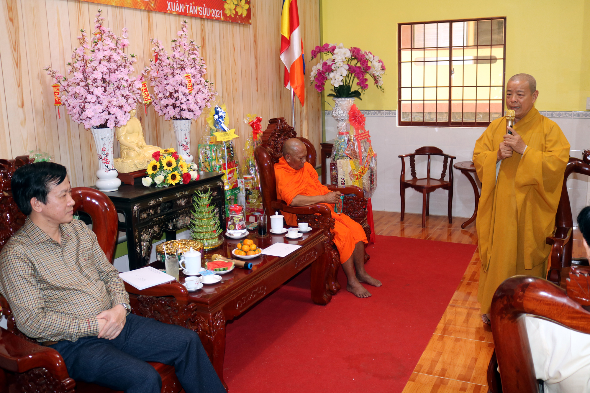 HT.Thạch Sox Xane thay mặt chư Tăng Ni, Phật tử tỉnh Trà Vinh bày tỏ niềm vui trước sự quan tâm của lãnh đạo Ban Tôn giáo Chính phủ đến Phật giáo tỉnh nhà. Hoà thượng chúc đoàn có được mùa Xuân viên mãn.