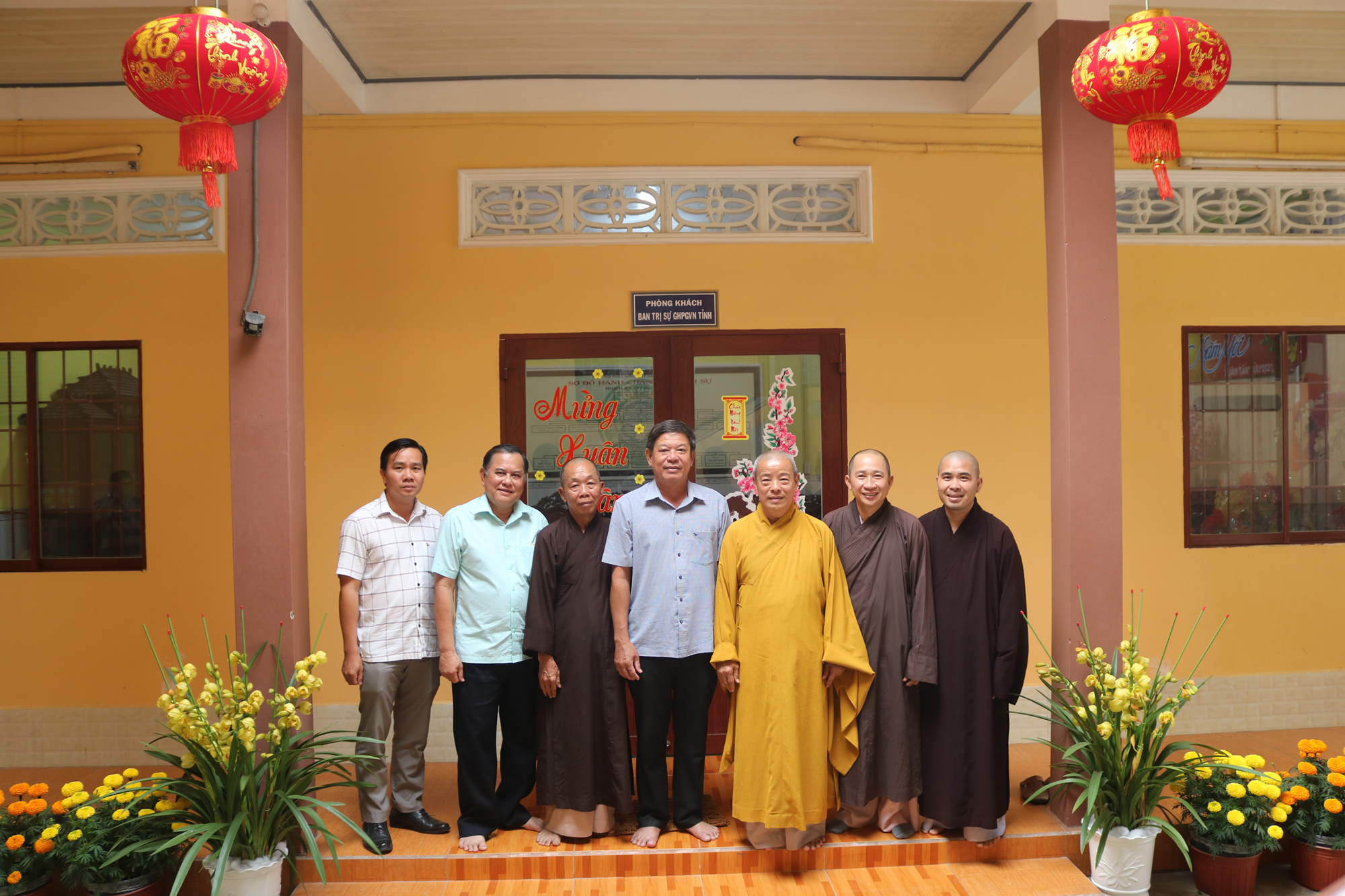 HT.Thích Trí Minh - UV HĐTS GHPGVN, Phó Trưởng ban Thường trực BTS GHPGVN tỉnh, Trụ trì chùa Lưỡng Xuyên; TT.Thích Minh Nhựt – Phó BTS GHPGVN tỉnh; ĐĐ.Thích Trí An – Trưởng ban Văn hóa GHPGVN tỉnh; ĐĐ.Thích Như Đạt – Phó chánh Văn phòng BTS GHPGVN tỉnh đã tiếp đón đoàn.