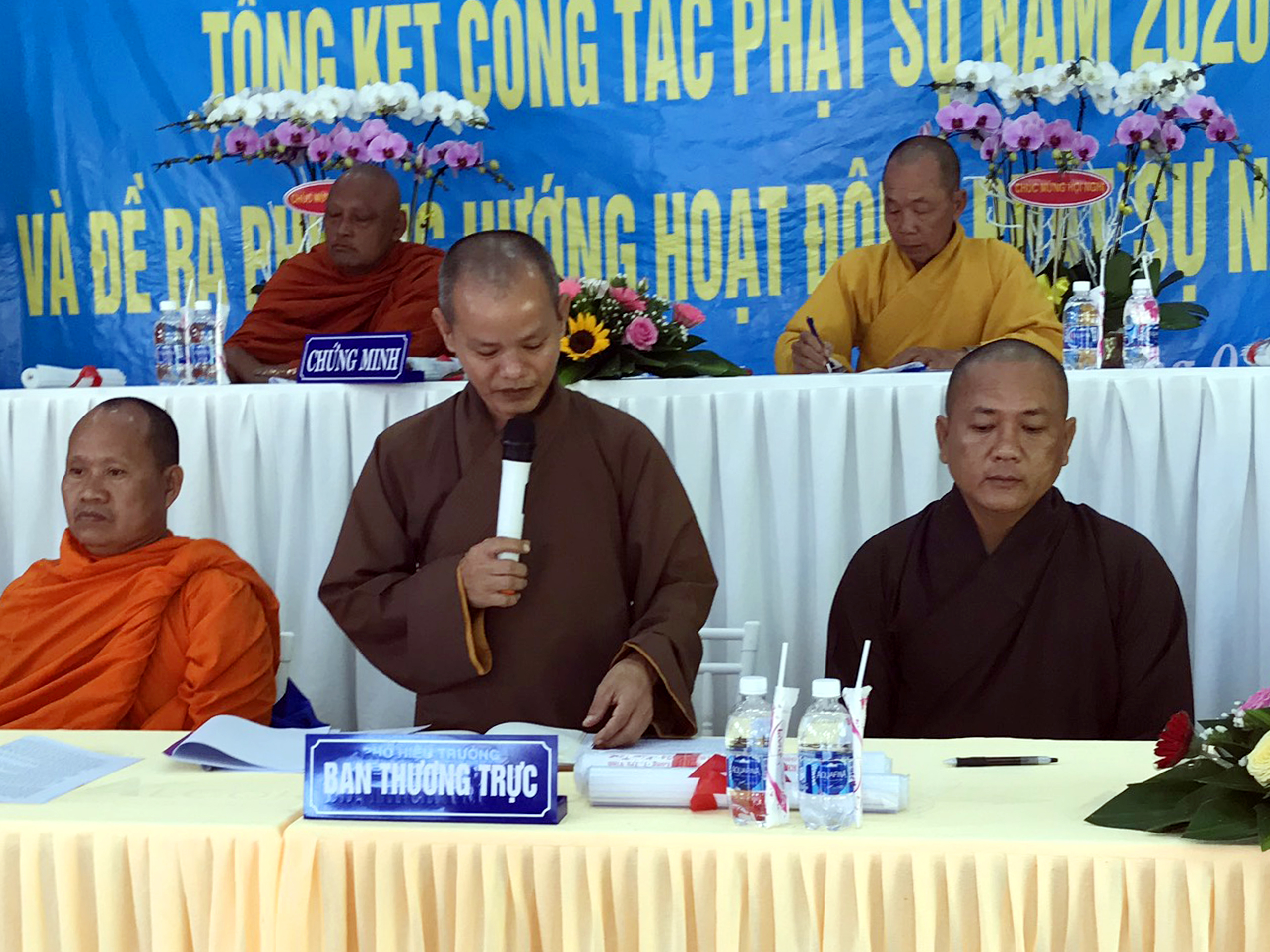Sau khi thông qua chương trình, giới thiệu thành phần tham dự, ĐĐ.Thích Minh Trí điều phối chương trình, cung thỉnh TT.Thạch Thường - Trưởng BTS Phật giáo huyện phát biểu khai mạc Hội nghị. Sau đó, NS.Thích Nữ Như Thức thông qua báo cáo tổng kết công tác Phật sự năm 2020.