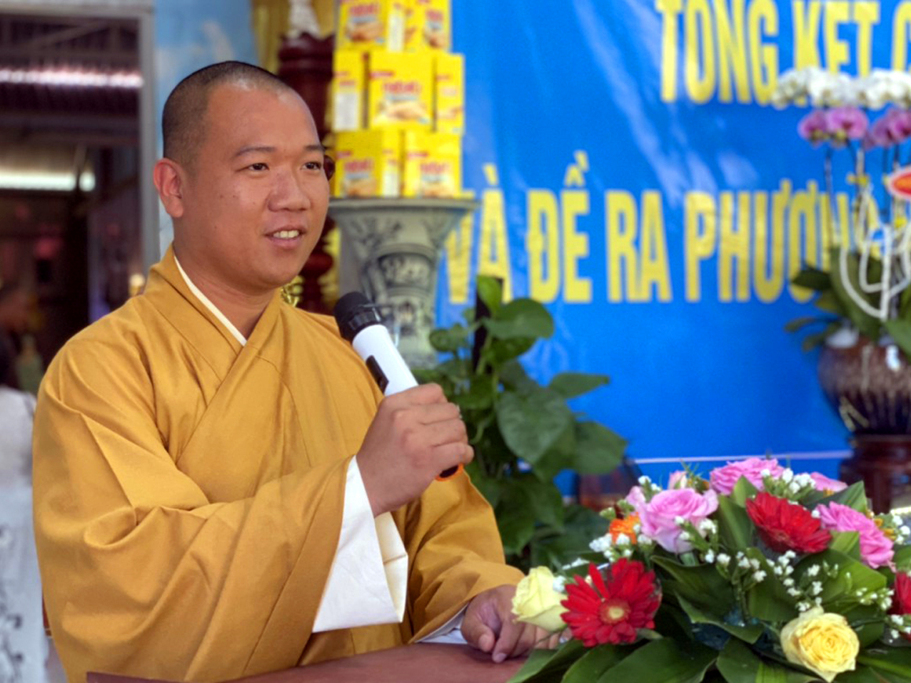 NS.Thích Nữ Như Thức - Phó BTS GHPGVN huyện báo cáo tổng kết công tác Phật sự năm 2020Theo đó, trong huyện hiện có 24 chùa (Nam tông 4, Bắc tông 18). 126 Tu sĩ (Nam tông có 73 vị, Bắc tông có 53 vị). Các công tác Hoằng pháp, HDPT, Văn hóa... đều có sự phát triển. Công tác từ thiện trong toàn huyện do chư Tôn đức Tăng Ni vận động Phật tử và các nhà hảo tâm thực hiện, tính thành tiền đạt trên 8 tỷ đồng.
