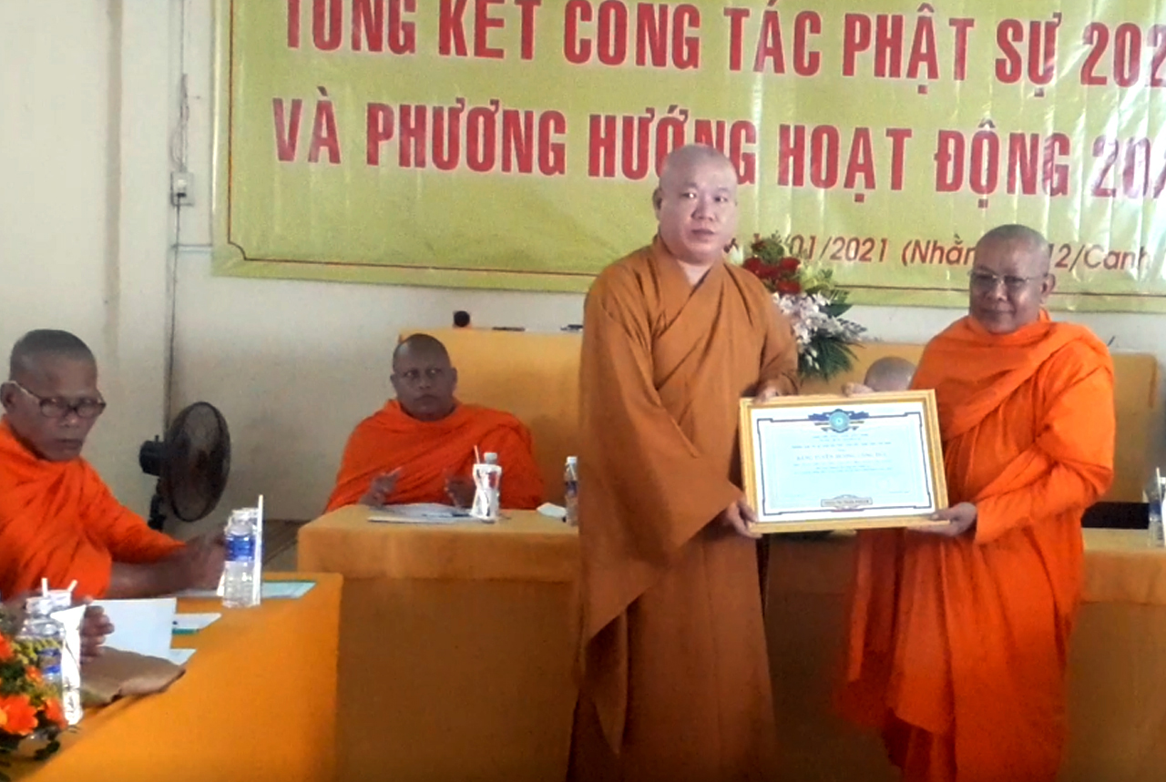 Báo cáo đã điểm qua những nét chính của tất cả các Ban như: Ban Hoằng Pháp, Ban Giáo dục Phật giáo, Ban Hướng dẫn Phật tử, Ban Từ thiện Xã hội, Ban Văn hoá, Ban Nghi lễ, Ban Kinh tế - Tài chánh, Ban Pháp chế, Ban Kiểm soát, Ban Tăng sự cùng Phân ban Ni giới. Đặc biệt, Phật giáo huyện trong năm 2020 đã vận động được số tiền từ thiện là 4.945.500.000 đồng, trong đó Phật giáo Nam tông đóng góp 2.249.750.000 đồng, góp phần cải thiện an sinh xã hội và sát cánh với chính quyền tỉnh trong các hoạt động thiện nguyện.