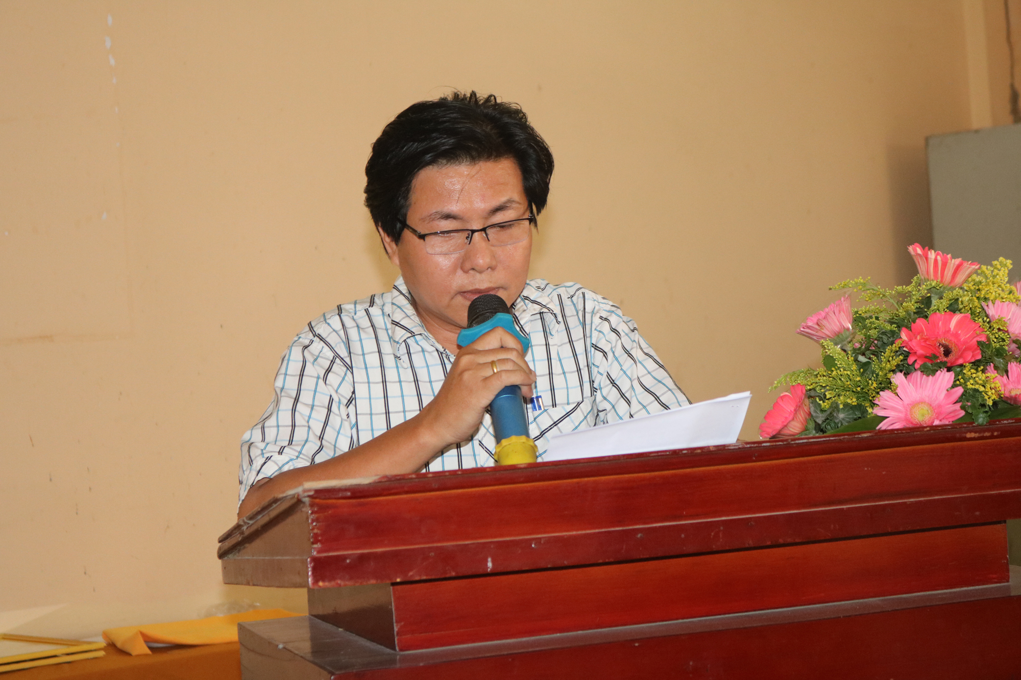 HT.Thạch Rây thay mặt BTS GHPGVN huyện Cầu Ngang tiếp thu sự chỉ đạo của BTS GHPGVN tỉnh cũng như ghi nhận những góp ý của các đại biểu tham dự Hội nghi.