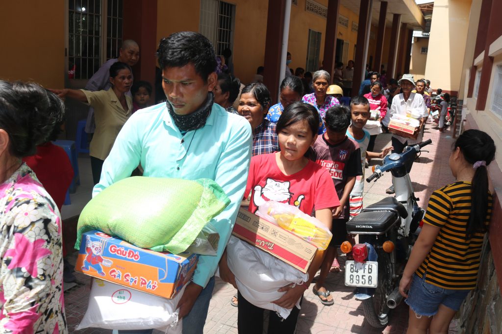 Tham dự buổi tặng quà có ĐĐ.Thích Tâm Khiết – Chánh Thư ký BTS GHPGVN tỉnh, Trụ trì chùa Phật Tâm; ĐĐ.Thích Minh Huy – Tri sự chùa Phật Tâm; ông Kim Pinh – Huyện ủy viên huyện Châu Thành; bà Lê Minh Thư – Phó Chủ tịch UBND xã; bà Thạch Thị ChalSô Phiary – Chủ tịch UB MTQVN xã; ông Lâm Văn Luyến – Trưởng Công an xã; ông Bùi Nam Kha – Chỉ huy Trưởng quân sự xã.