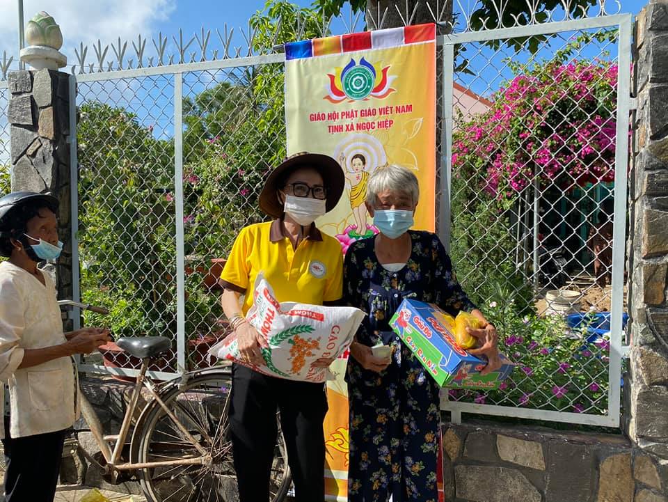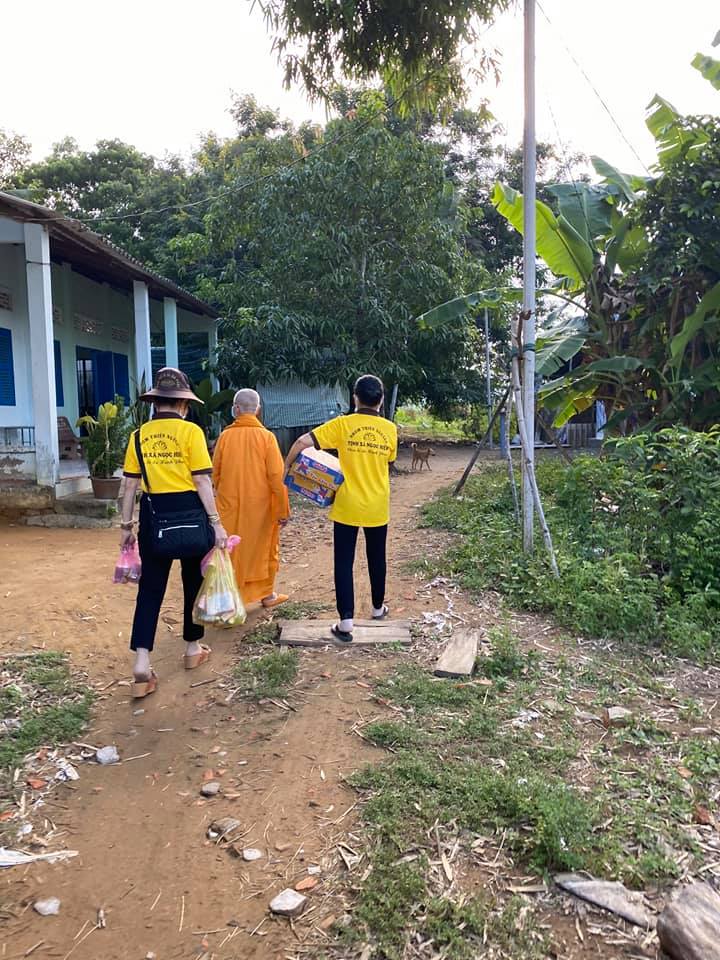 Tiếp đó, buổi chiều cùng ngày, Hội từ thiện tịnh xá Ngọc Hiệp với sự hướng dẫn của Ni sư Huy Liên, đã đến trao tặng 05 phần quà trị giá 750 ngàn đồng tại năm hộ gia đình có người thân đang mang bệnh nặng, không đi đứng được. Nhóm đã có buổi trò chuyện thân tình và hỏi thăm sức khoẻ, cũng như cập nhật tình hình hiện tại để có thể hỗ trợ trong tương lai.