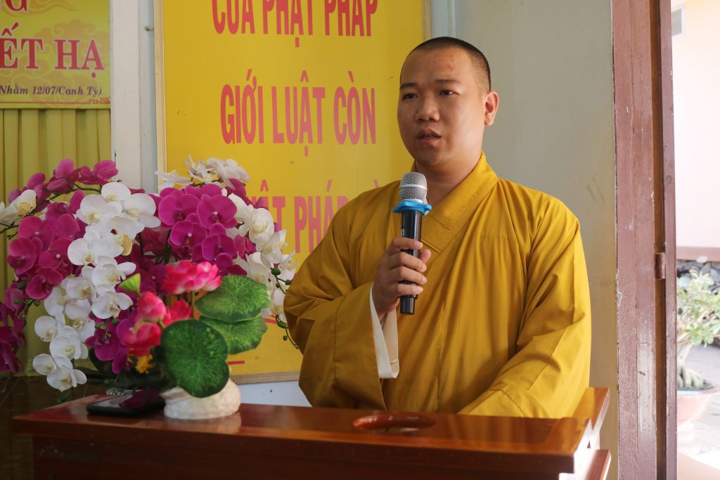 ĐĐ.Thích Tâm Khiết - Chánh Thư ký BTS GHPGVN tỉnh thay mặt Ban tổ chức có lời cảm tạ đến chư Tôn đức Giáo phẩmTiếp đó ĐĐ.Thích Tâm Khiết thay mặt Ban tổ chức có lời cảm tạ đến chư Tôn đức Giáo phẩm, cảm ơn quý Phật tử đã trở về tham dự buổi lễ Bế giảng khóa An cư Kiết hạ hôm nay.