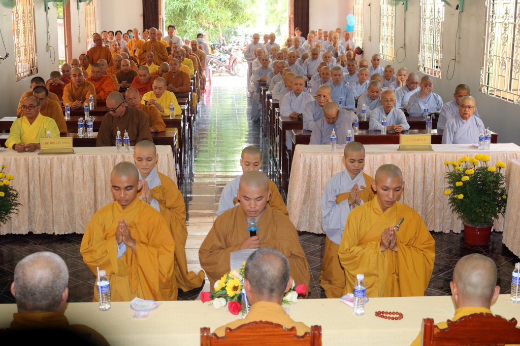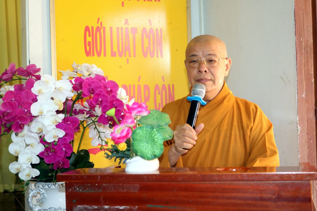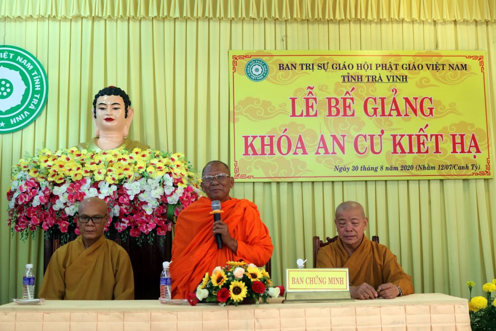 TT.Thích Trí Minh – Ủy viên HĐTS, Phó trưởng Ban Thường trực BTS GHPGVN tỉnh Trà Vinh phát biểu Khai mạc buổi lễMở đầu buổi lễ, ĐĐ.Thích Minh Trí dẫn chương trình, cung thỉnh TT.Thích Trí Minh phát biểu Khai mạc lễ Bế giảng. Dù ba tháng tại Hạ trường không là thời gian dài, nhưng là một khoảng thời gian rất quý báu để các hành giả tịnh tu tam nghiệp, phát huy tinh thần “trí huệ song tu”. TT.Thích Trí Minh thay mặt chư Tôn đức tán thán sự tu tập tinh tấn cũng như công đức chuẩn bị, điều phối khóa An cư Kiết hạ ba tháng vừa qua của tất cả hành giả và chư Tăng Ni.