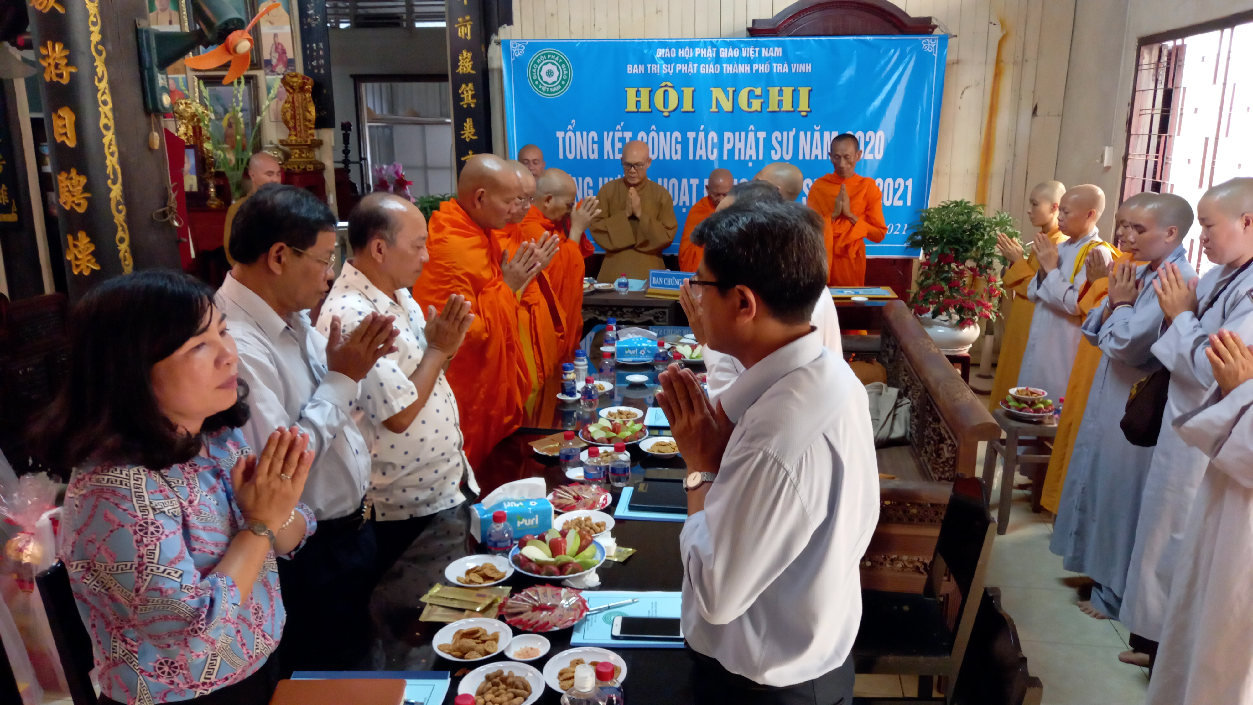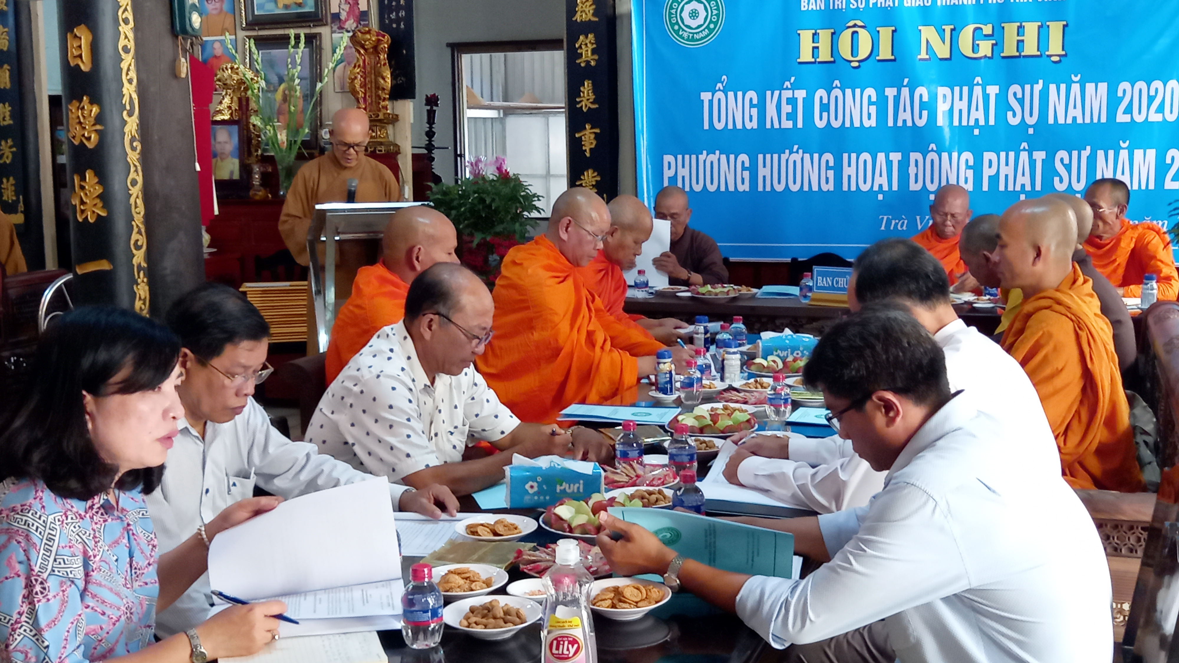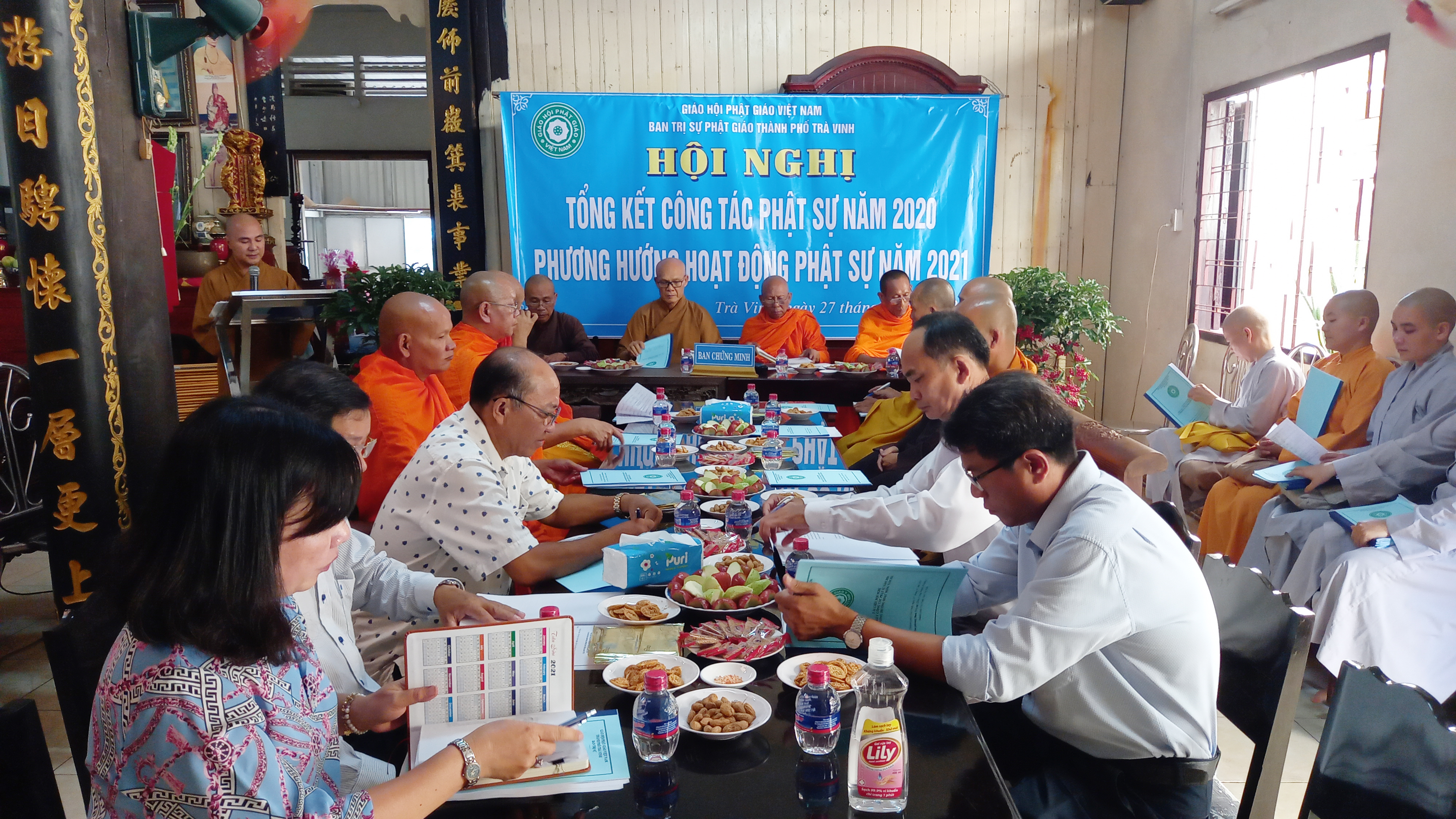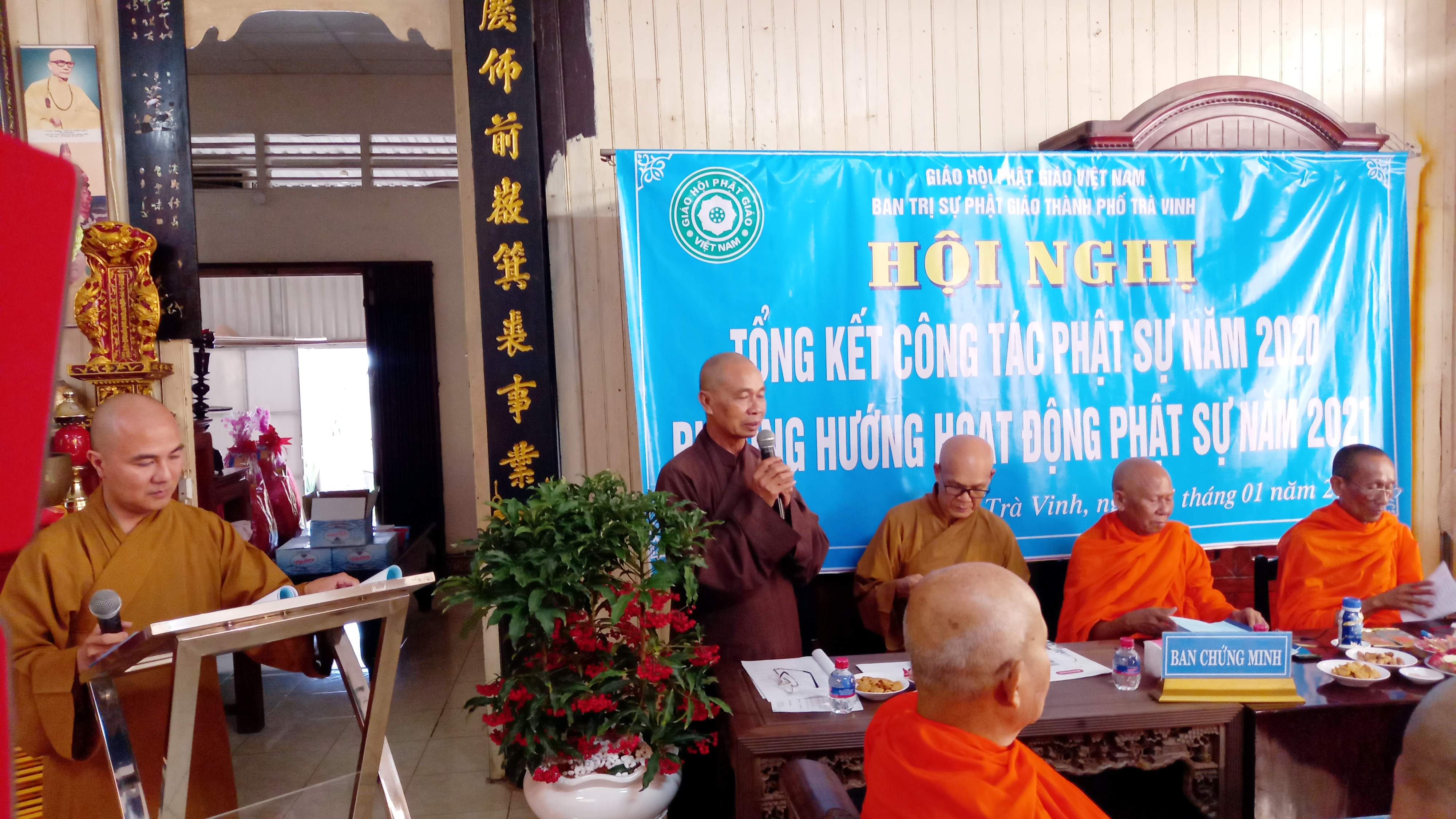 PSO - Ngày 27/01/2021 (nhằm ngày 15/12 năm Canh Tý), tại chùa Long Khánh (đường Bạch Đằng, phường 03, TP.Trà Vinh), BTS GHPGVN TP.Trà Vinh đã trọng thể tổ chức Hội nghị Tổng kết công tác Phật sự năm 2020 và đề ra Phương hướng hoạt động năm 2021, theo Nghị quyết Đại hội Đại biểu Phật giáo tỉnh nhiệm kỳ VI (2017 – 2021).