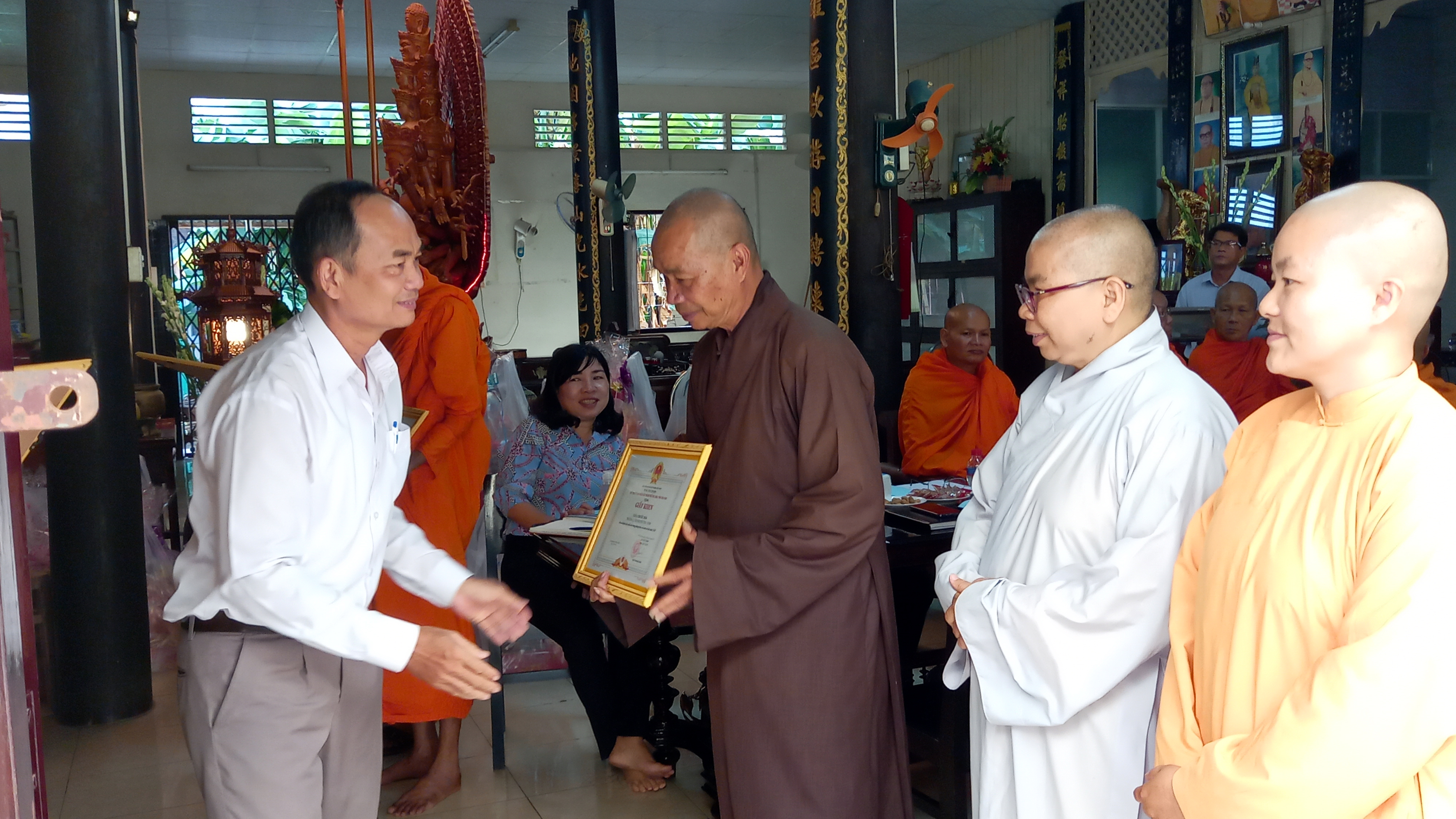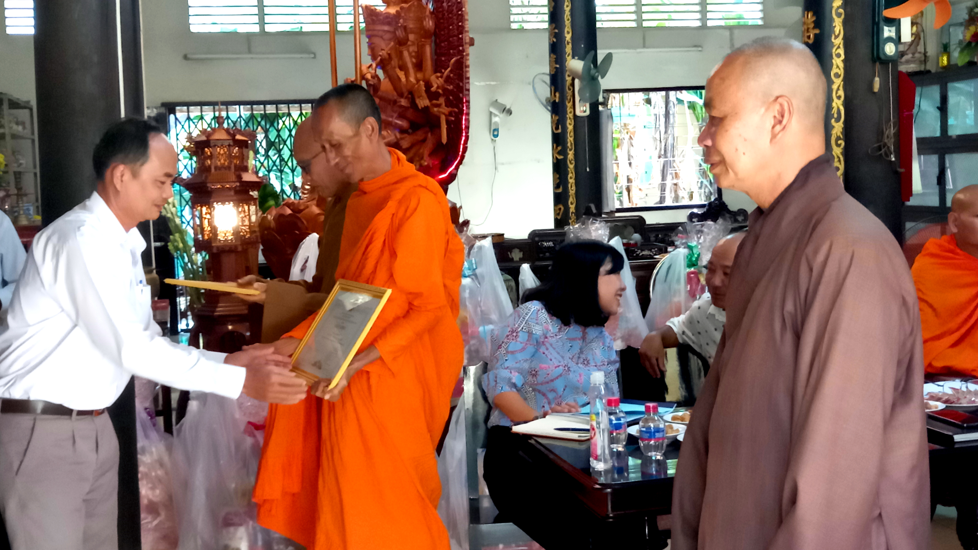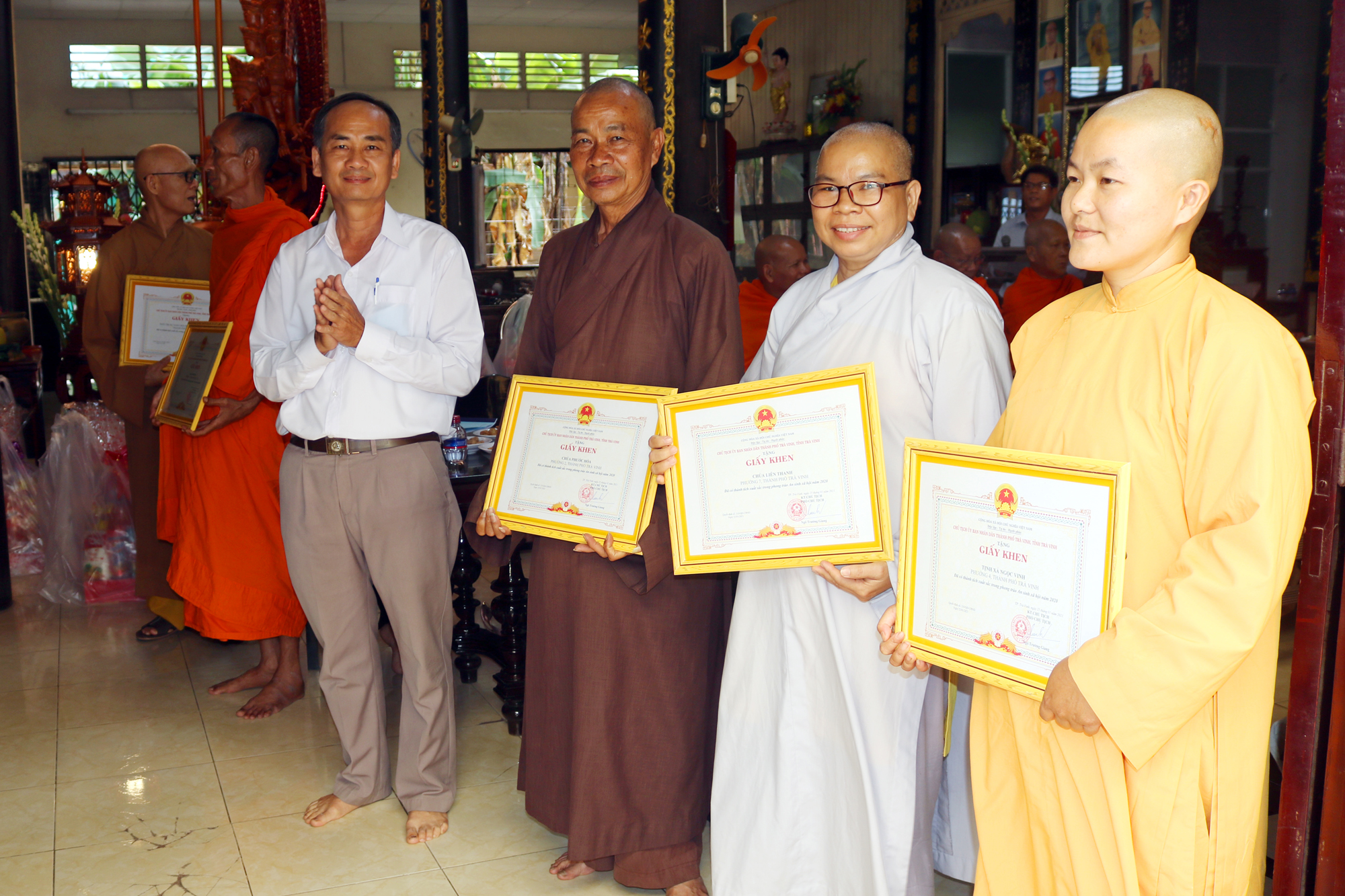 ĐĐ.Thích Minh Hải đã thông qua Quyết định tuyên dương công đức của BTS GHPGVN tỉnh cho các cá nhân và tập thể đã nỗ lực giúp cho Phật giáo tỉnh nhà. Ngoài ra, ông Lâm Tiên cũng tuyên đọc Quyết định khen thưởng của Chủ tịch UBND TP.Trà Vinh đến tập thể và cá nhân chư Tôn đức đã có thành tích xuất sắc trong năm 2020. Ông Quách Văn Tám và ông Kim Sóc đại diện chính quyền trao tặng Bằng khen và tiền mặt đến cá nhân chư Tôn đức.