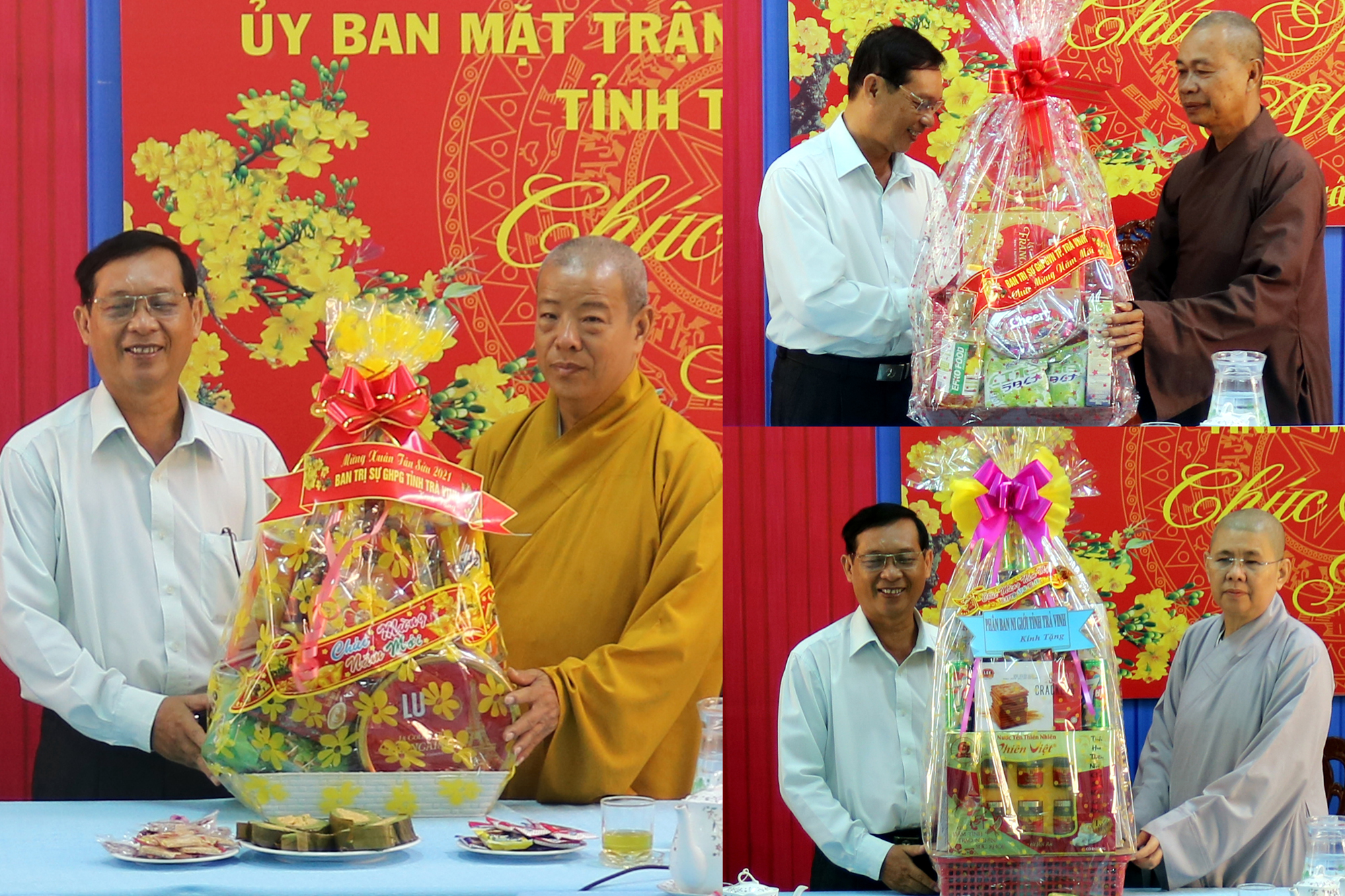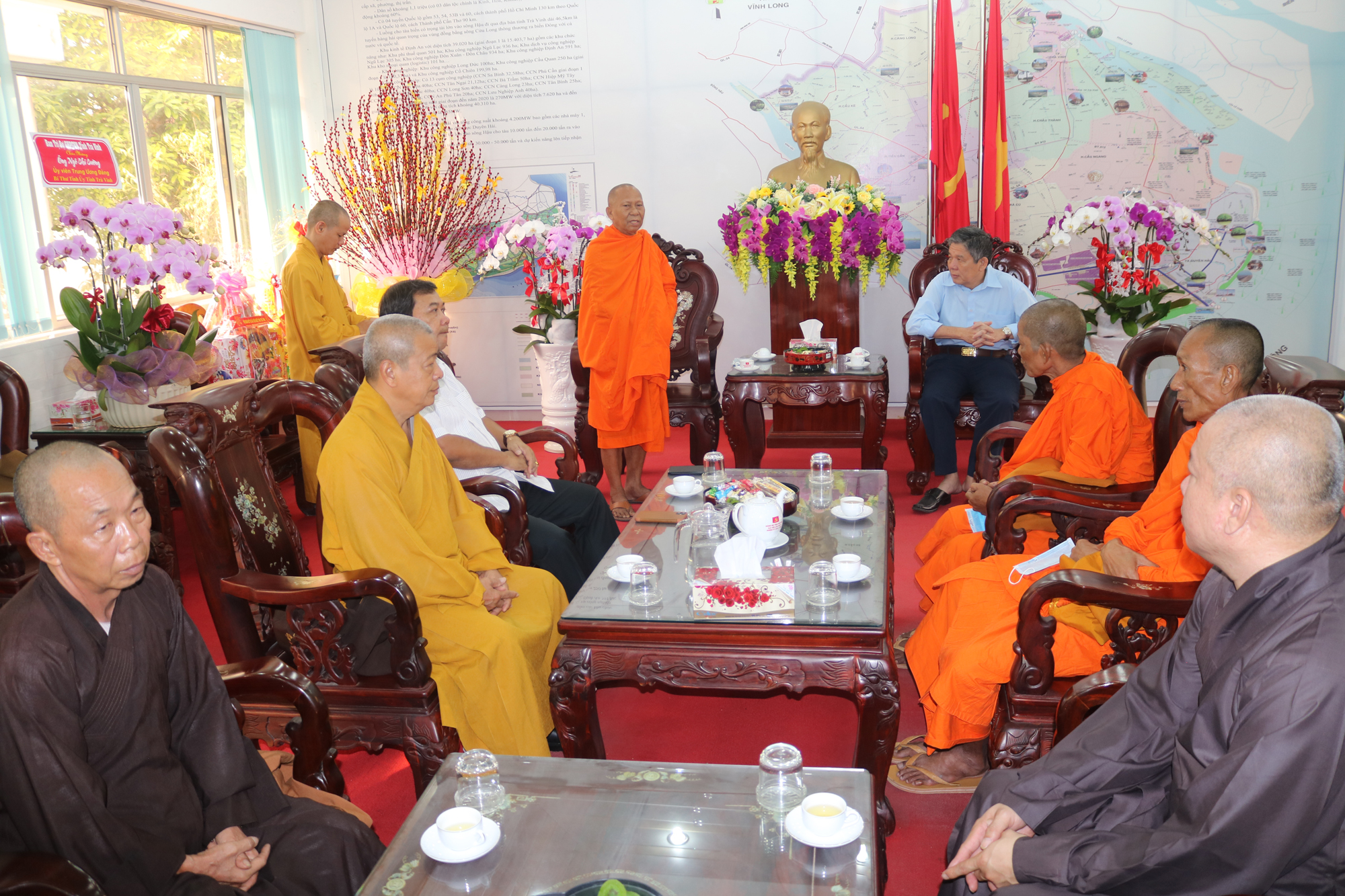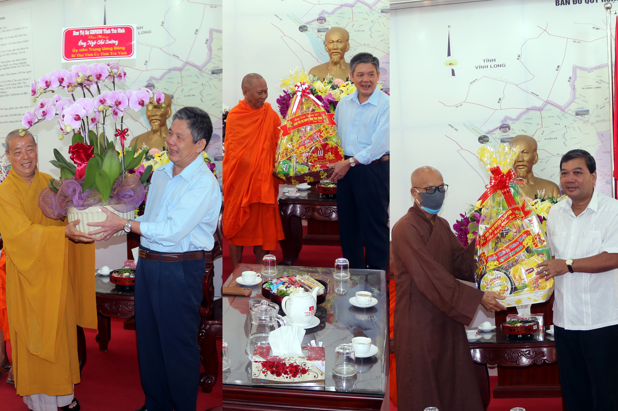 Chư Tôn đức trưởng đoàn đã gửi lời chúc Xuân mới an khang, thịnh vượng đến lãnh đạo các cơ quan ban ngành thành phố Trà Vinh.