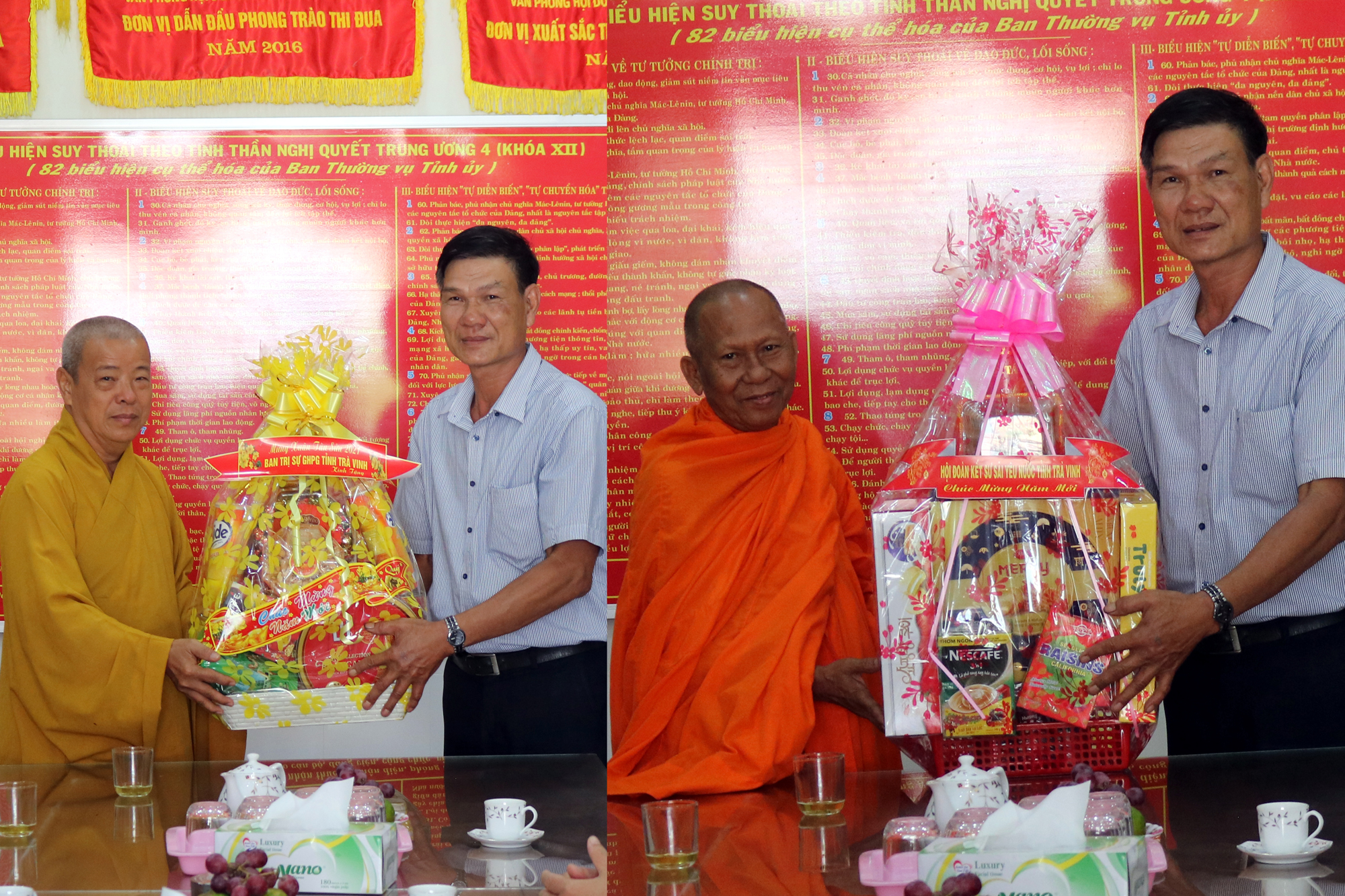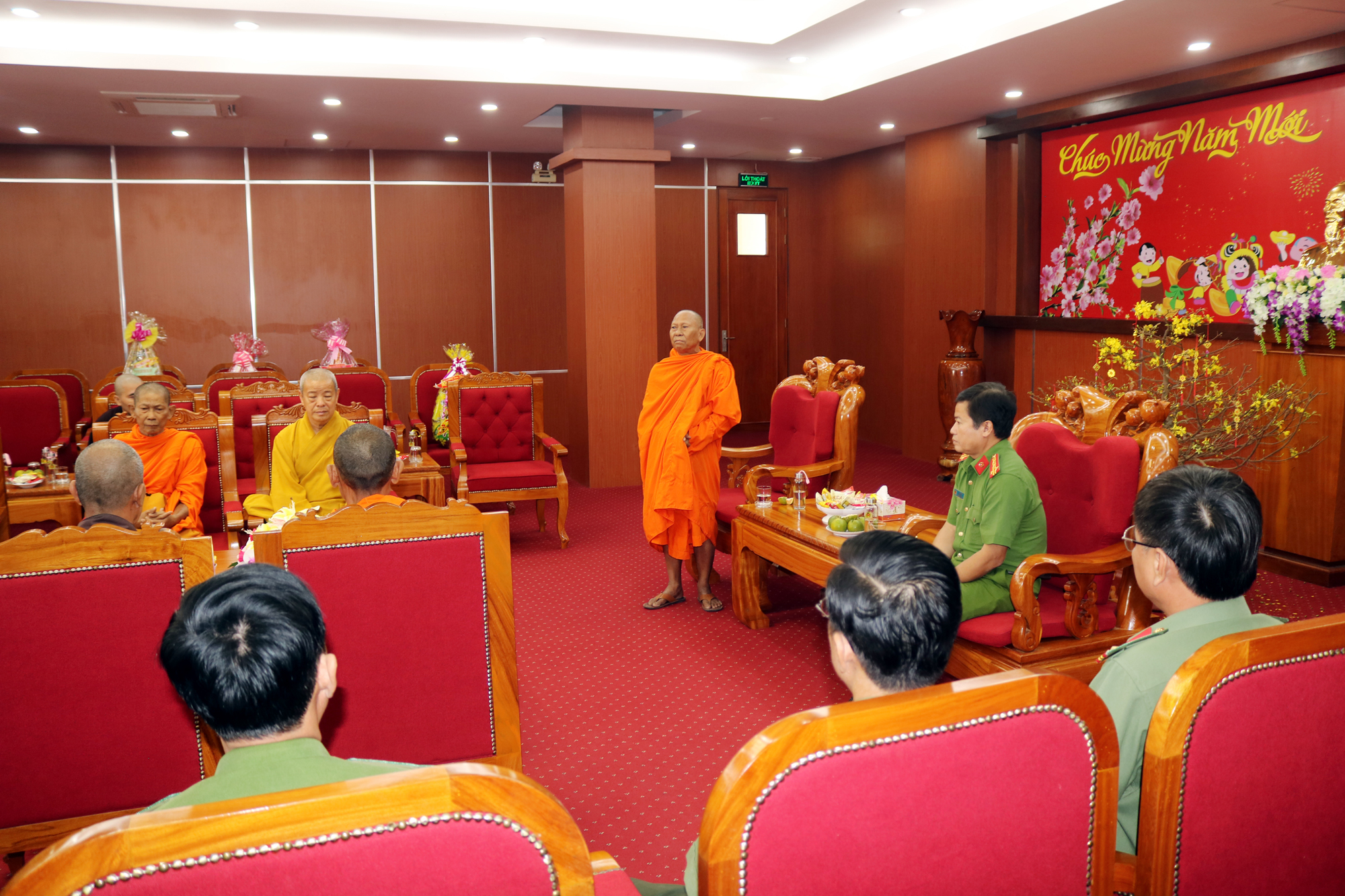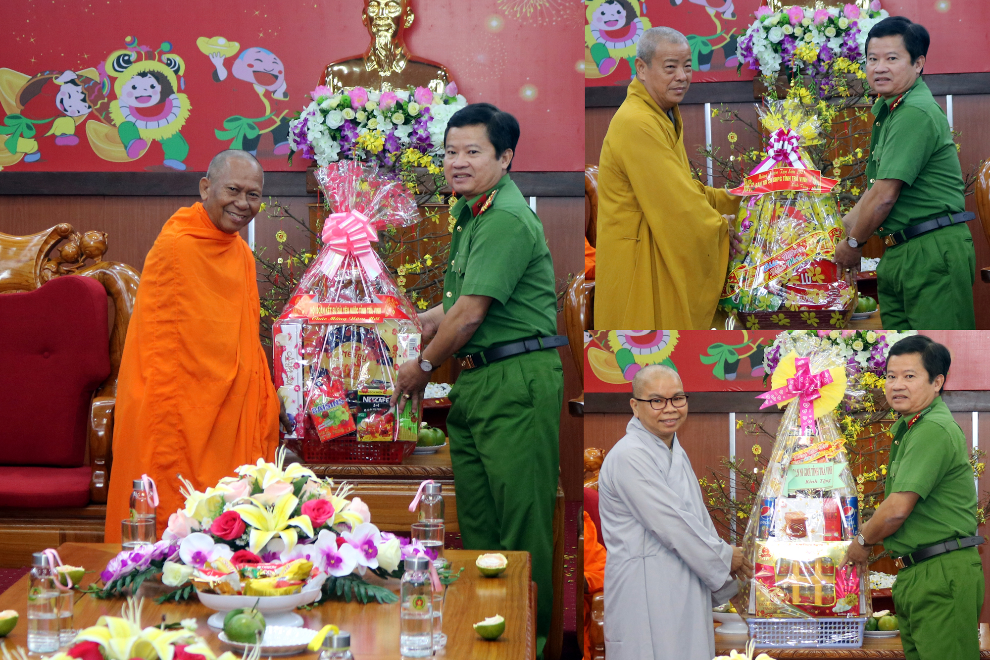 Chư Tôn đức trưởng đoàn đã gửi lời chúc Xuân mới an khang, thịnh vượng đến lãnh đạo các cơ quan ban ngành thành phố Trà Vinh.