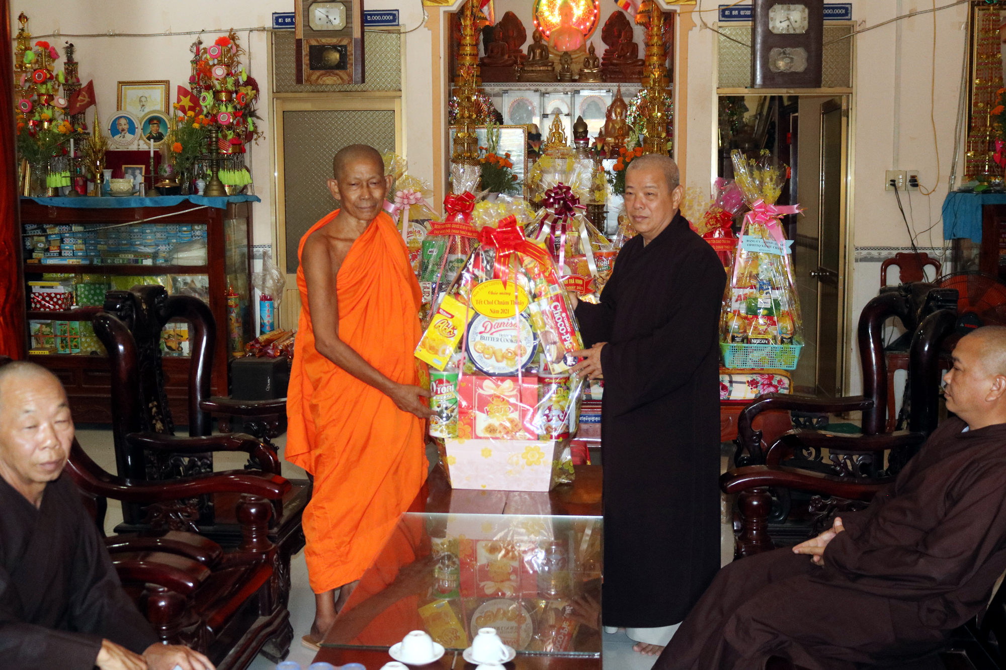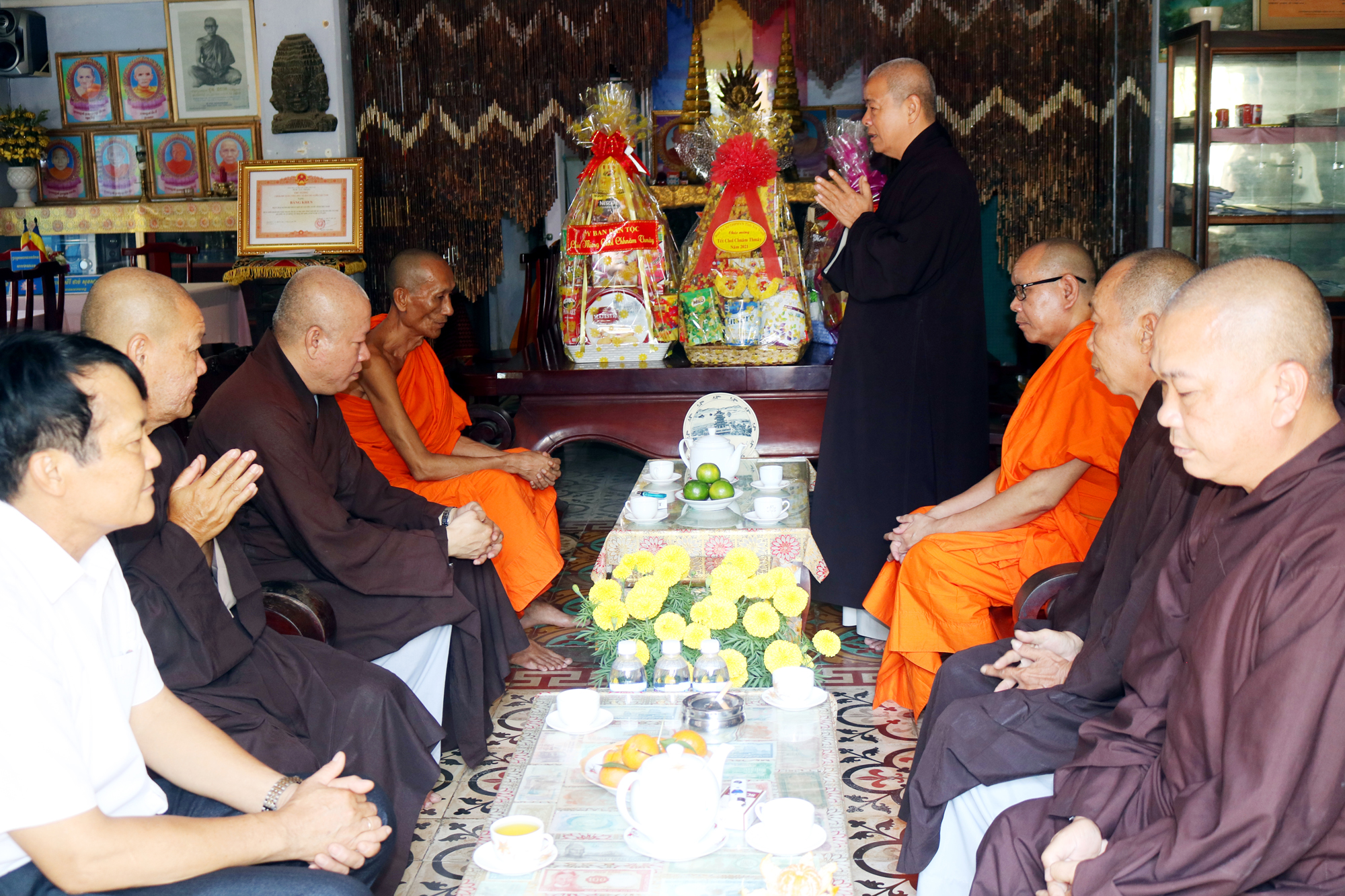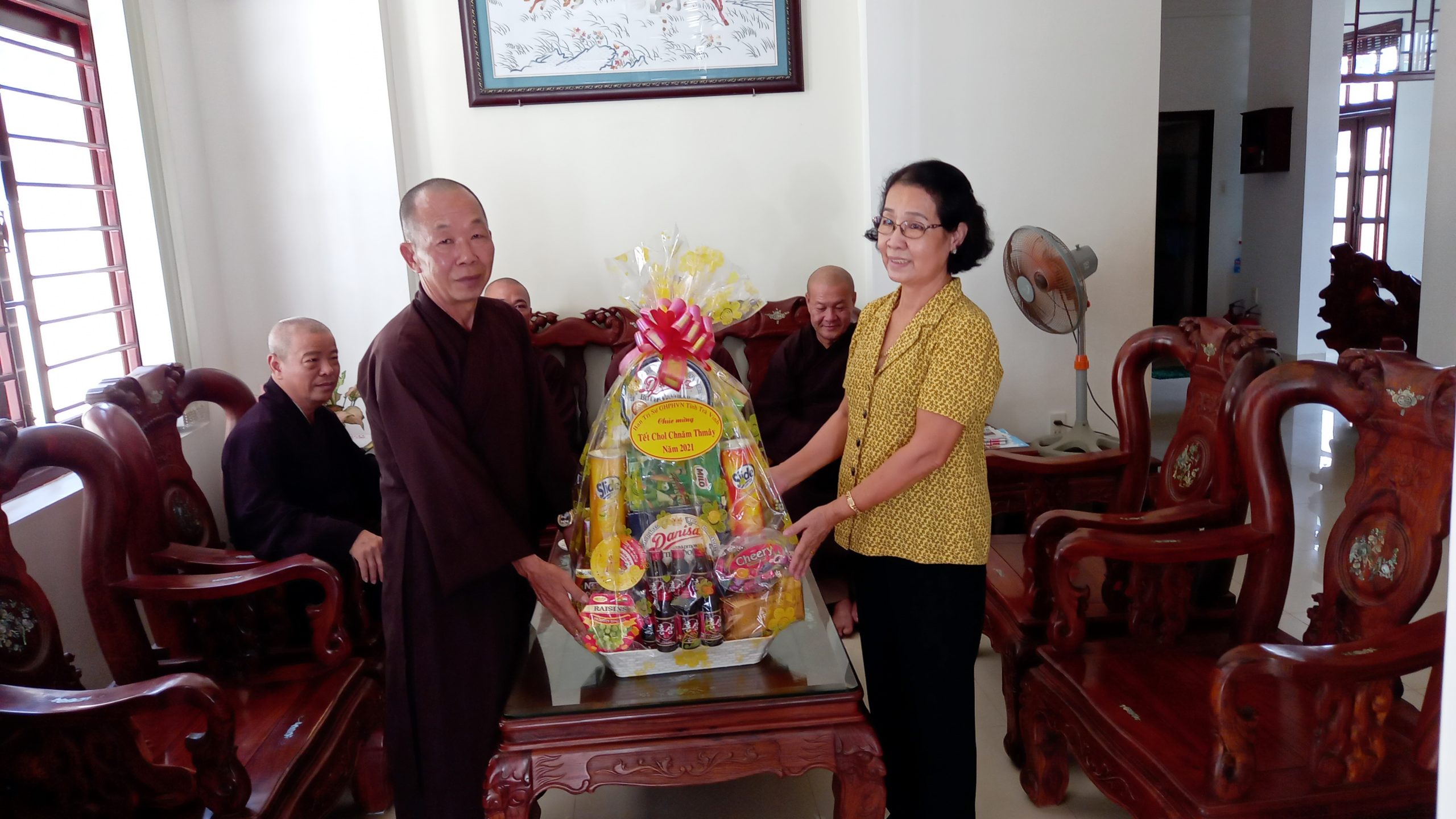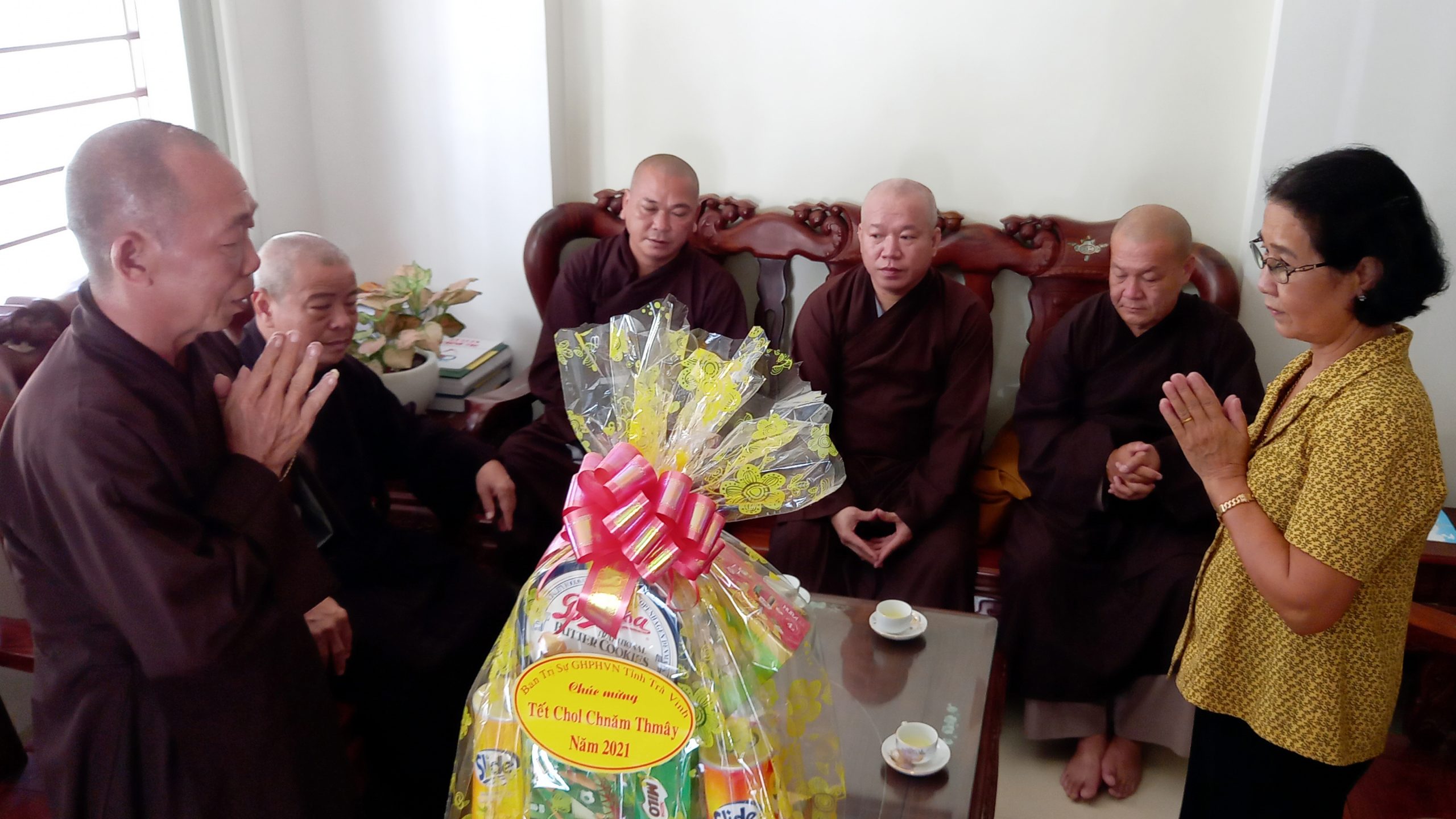 Vào ngày 13/04/2021 (nhằm mùng 2 tháng 3 năm Tân Sửu), Thường trực BTS GHPGVN tỉnh Trà Vinh, do HT.Thích Trí Minh - Ủy viên HĐTS, Phó trưởng Ban Thường trực BTS Phật giáo tỉnh, làm trưởng đoàn đã đến chúc Tết Chol Chnam Thmay chư vị Hoà thượng hệ phái Nam tông, cũng như các vị trong Chính quyền tỉnh là đồng bào Khmer.