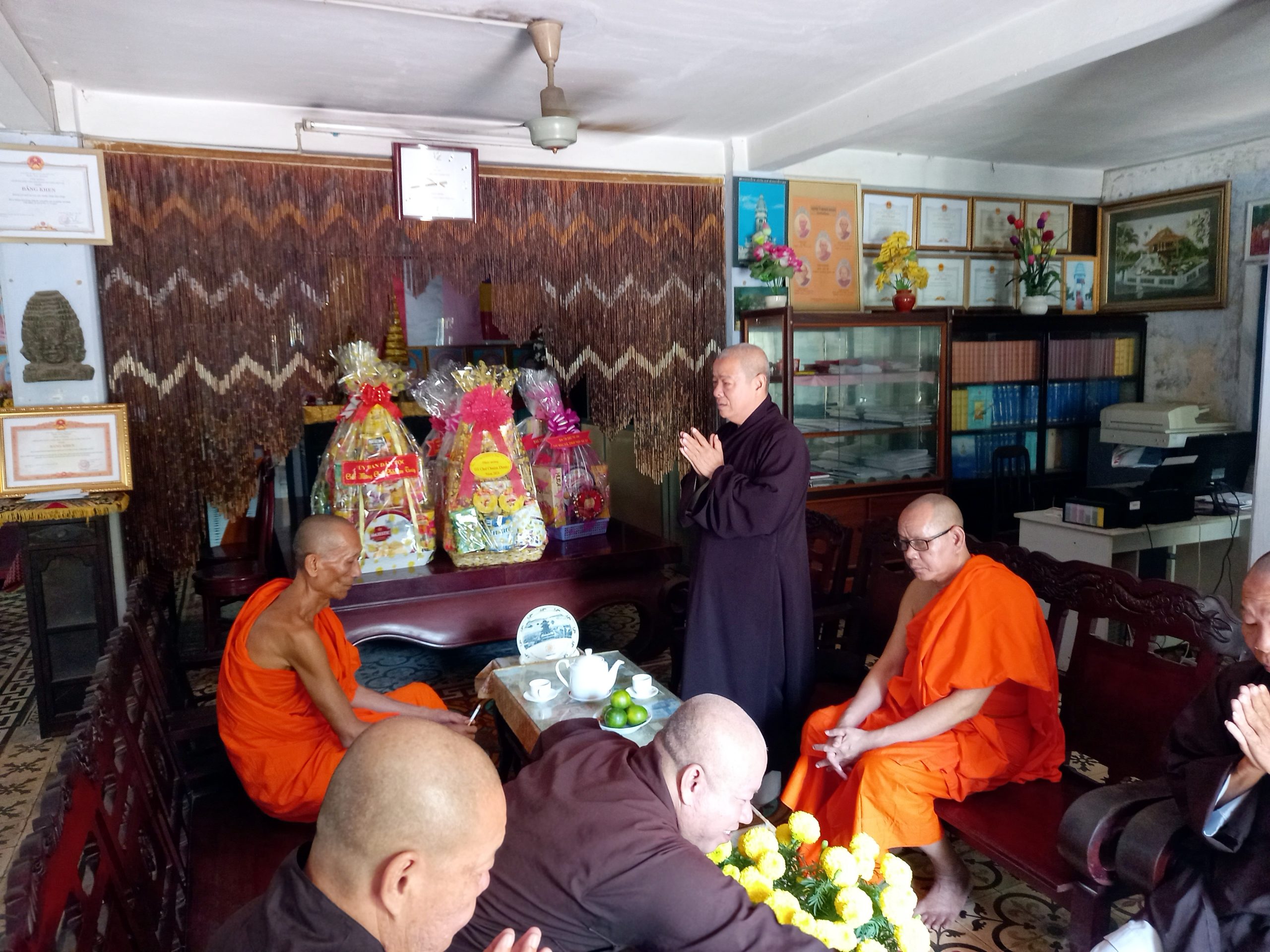 Đầu tiên, đoàn đã đến kính lễ Đức Hòa thượng Thạch Sok Xane – Phó Chủ tịch HĐTS, Trưởng BTS GHPGVN tỉnh Trà Vinh; sau đó là HT.Kim Thone – Ủy viên HĐTS, Phó BTS GHPGVN tỉnh; gia đình ông Thạch Hane – nguyên Phó Bí thư Thường trực Tỉnh ủy tỉnh Trà Vinh; HT.Thạch Oai - Ủy viên HĐTS, Phó BTS GHPGVN tỉnh; bà Sơn Thị Ánh Hồng – nguyên Phó Bí thư Tỉnh ủy tỉnh Trà Vinh.