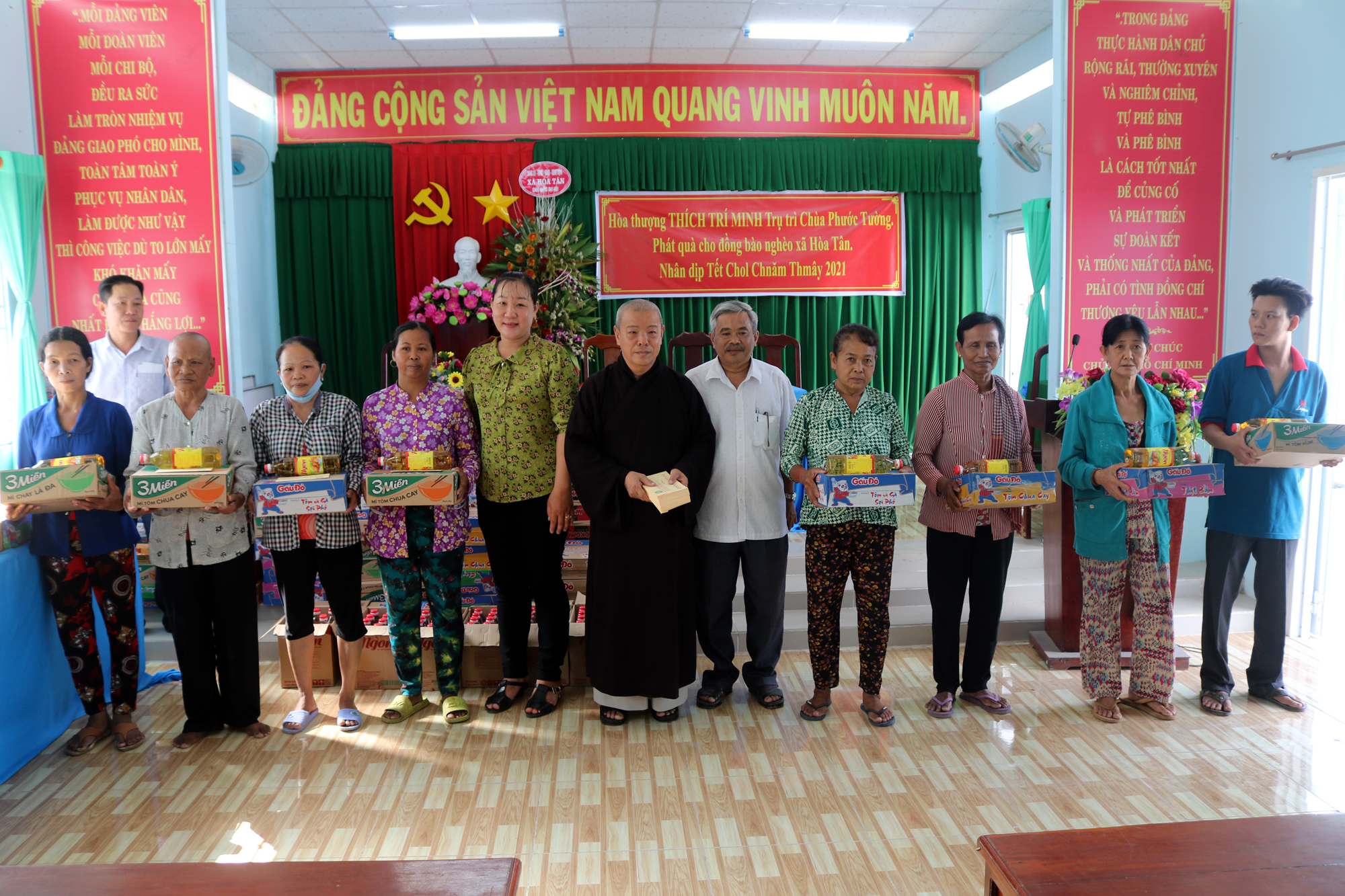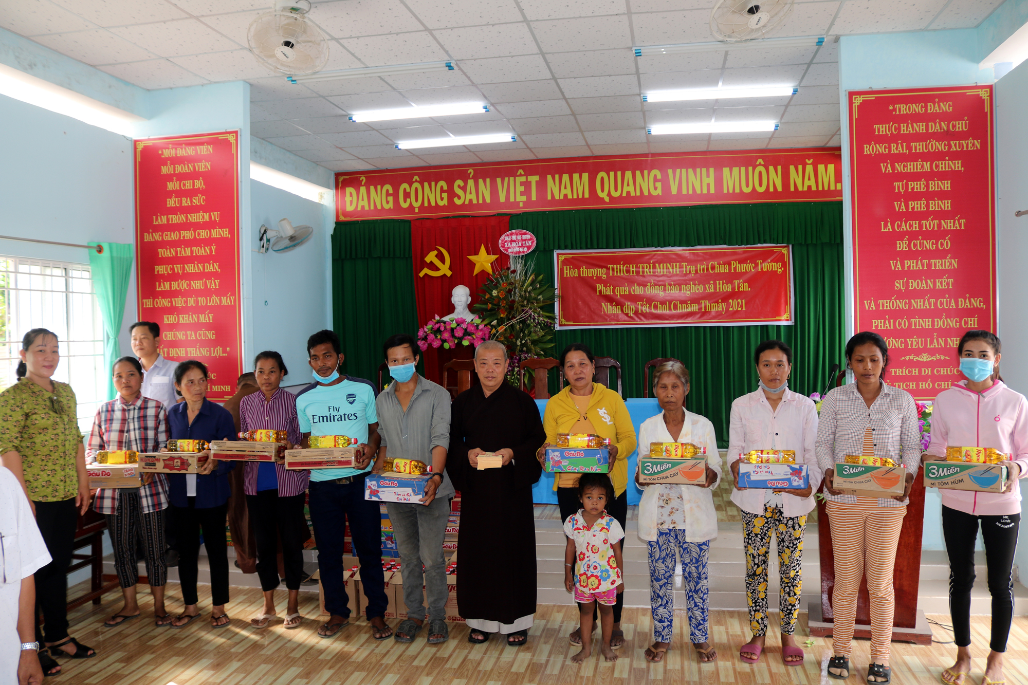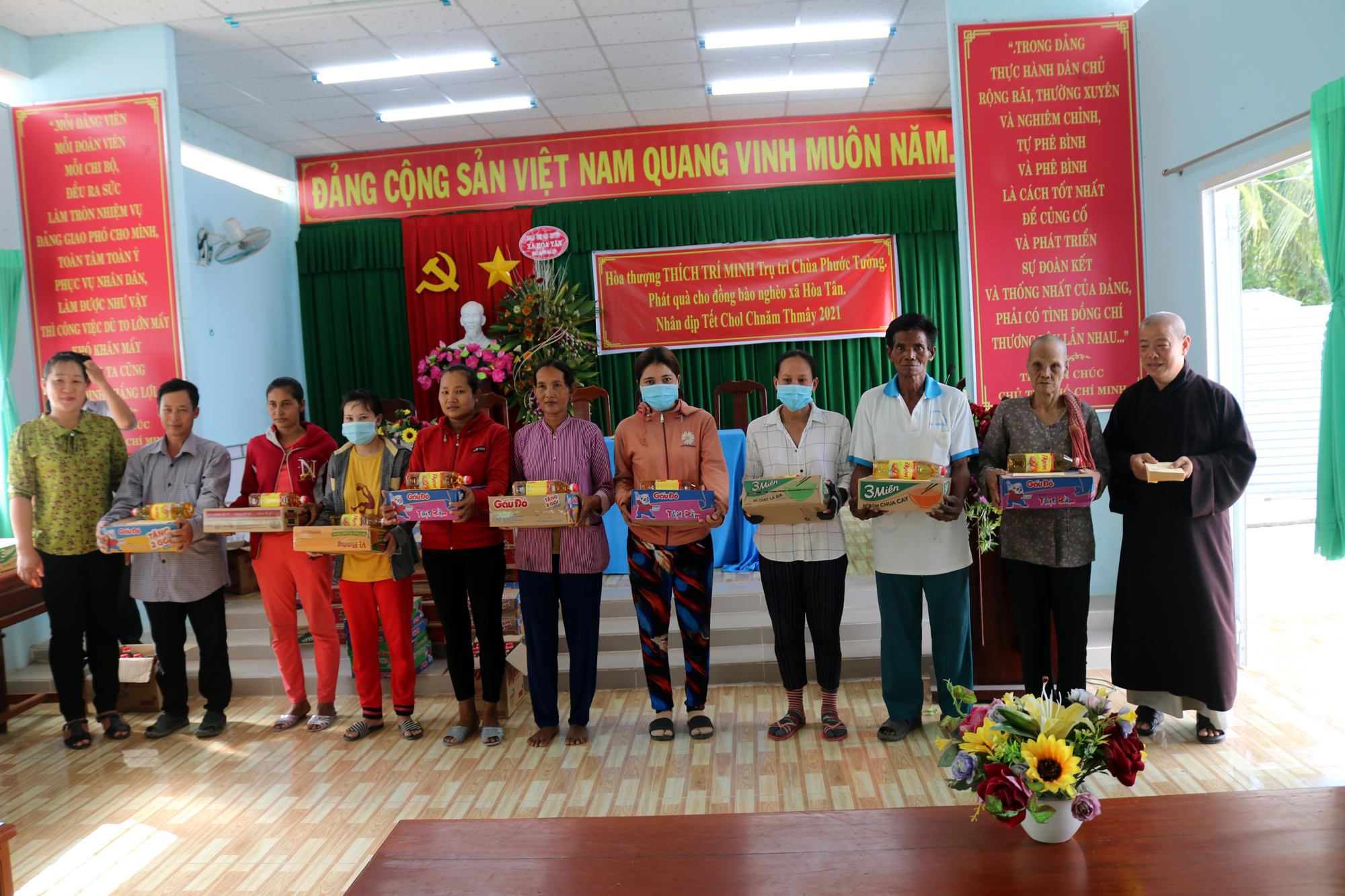 Buổi tặng quà có sự tham dự của ông Nguyễn Văn Hai – Phó Bí thư Thường trực xã Hoà Tân; bà Ngô Thị Lệ Trinh – Phó Chủ tịch UBND xã Hoà Tân. Mỗi phần quà gồm mì gói, dầu ăn và 200 ngàn đồng tiền mặt. Tổng giá trị các phần quà trao tặng là 30 triệu đồng. Những phần quà này là sự an ủi tiếp sức cho bà con nghèo trong mùa Chol Chnam Thmay.