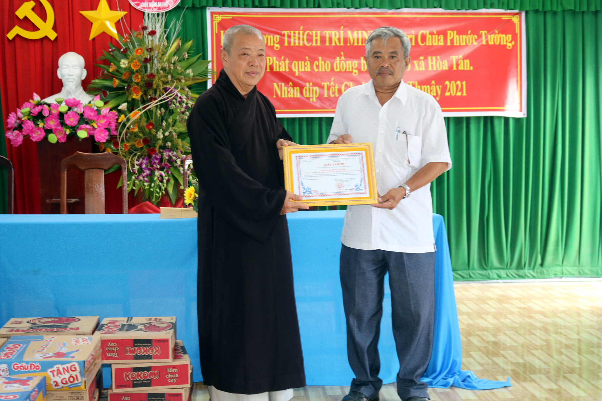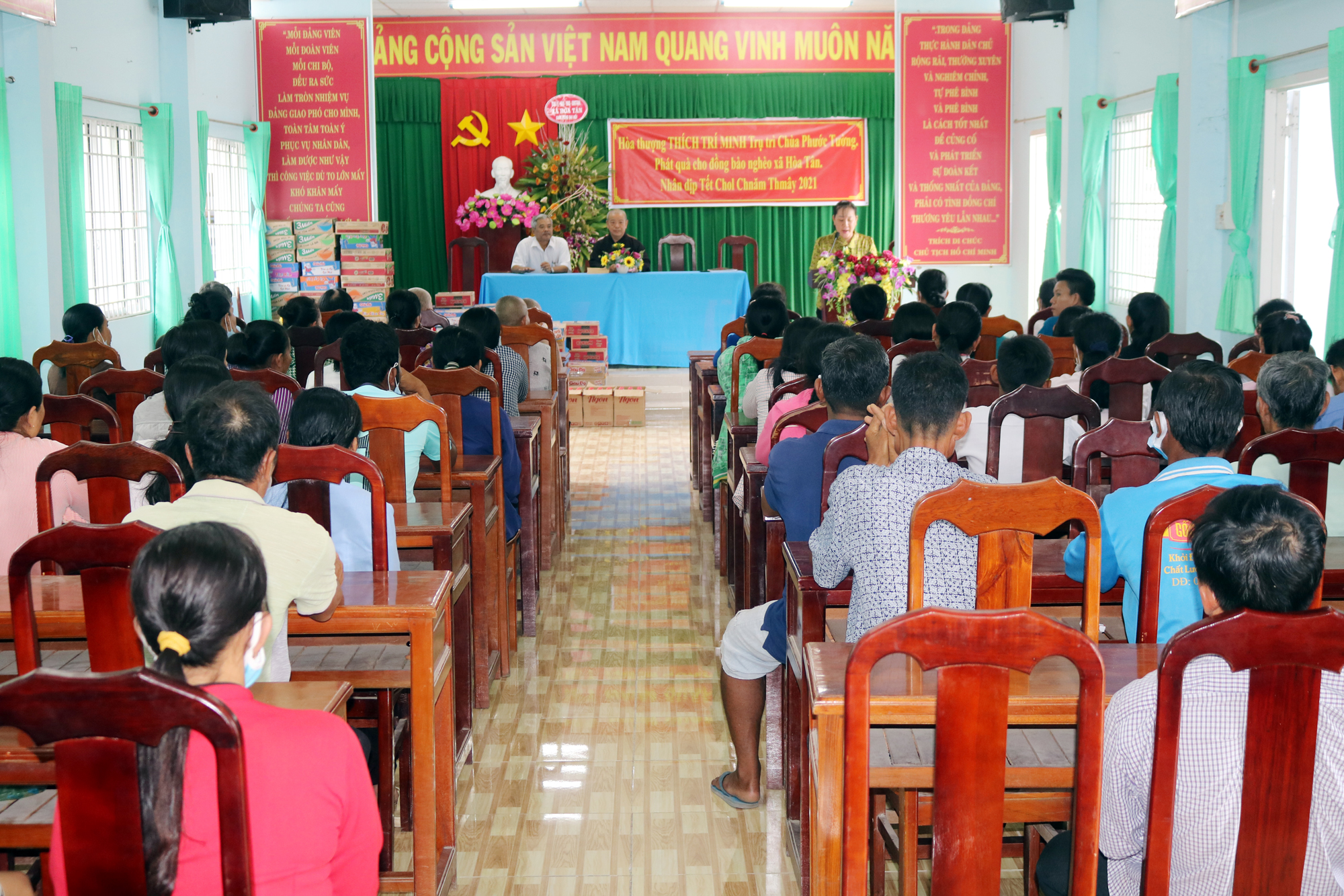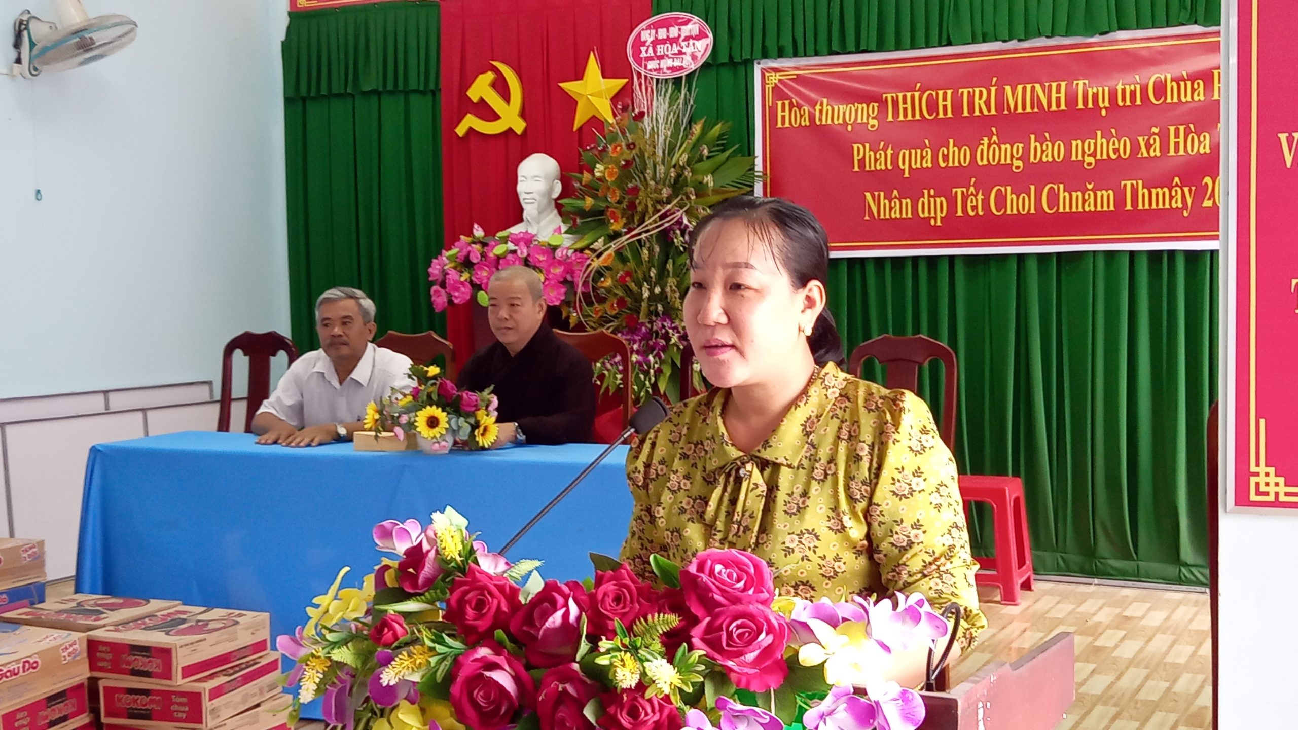 Buổi tặng quà có sự tham dự của ông Nguyễn Văn Hai – Phó Bí thư Thường trực xã Hoà Tân; bà Ngô Thị Lệ Trinh – Phó Chủ tịch UBND xã Hoà Tân. Mỗi phần quà gồm mì gói, dầu ăn và 200 ngàn đồng tiền mặt. Tổng giá trị các phần quà trao tặng là 30 triệu đồng. Những phần quà này là sự an ủi tiếp sức cho bà con nghèo trong mùa Chol Chnam Thmay.