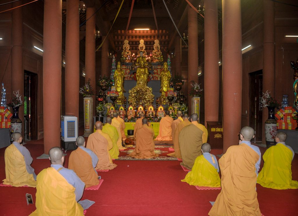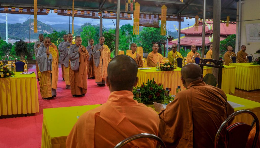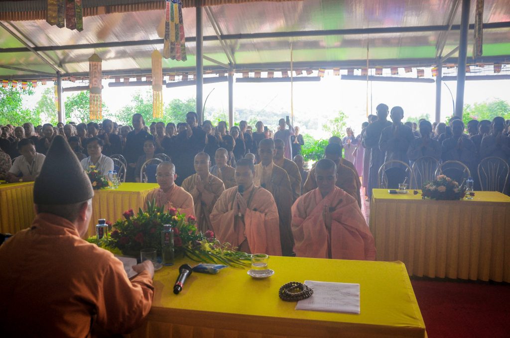Từ sáng sớm, trước lễ Khai pháp, chư tăng trong hạ trường đã vân tập về trường hạ kiểm chúng số, niêm hương bạch Phật và như pháp thực hiện nghi thức tác pháp an cư.