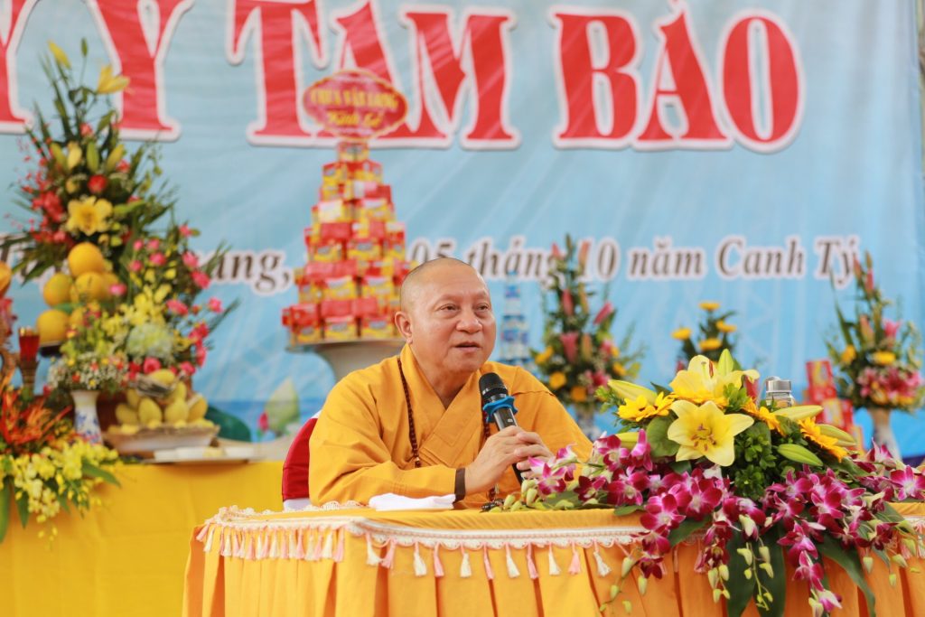 Nhân dịp này, Hòa Thượng đã giảng giải về ý nghĩa và lợi ích của việc Quy y Tam bảo, thọ trì Ngũ giới, khuyến tấn các Phật tử rèn luyện nhân cách đạo đức trên nền tảng của năm giới cấm. Hơn 500 Phật tử cùng chắp tay nghe Hòa Thượng truyền Tam quy – Ngũ giới trong niềm hoan hỷ, tịnh lạc, nhất tâm chính niệm hướng về ngôi Tam bảo đồng phát lời thề nguyện quy Phật, Pháp, Tăng, thành tâm nương tựa ba ngôi báu, chính thức trở thành người đệ tử của Đức Bản Sư Thích Ca Mâu Ni Phật.