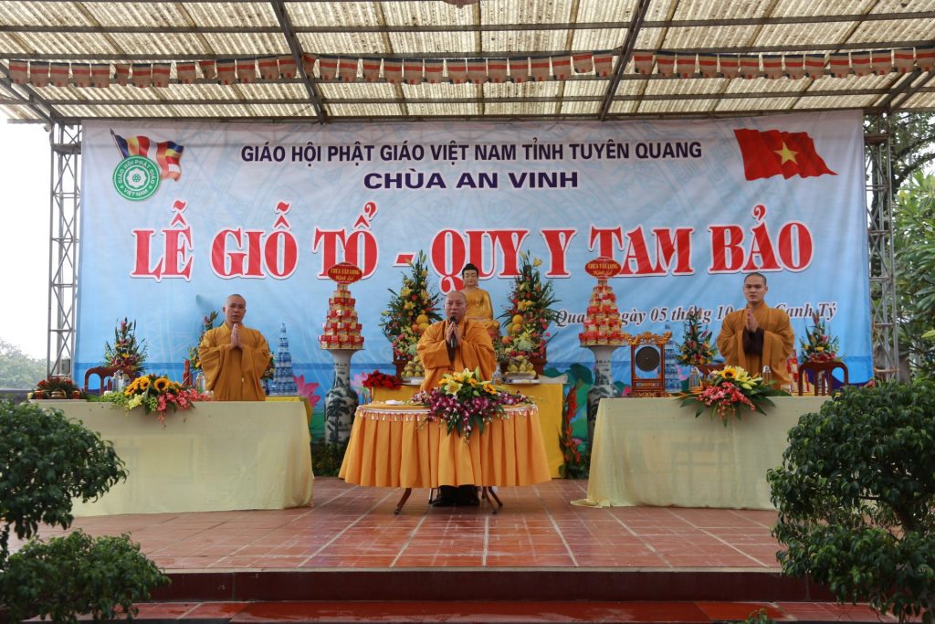 PSO - Sáng ngày 19/11/2020 (nhằm ngày 5/10 năm Canh Tý), Lễ giỗ Tổ - Quy y Tam Bảo cho hơn 300 Phật tử trên địa bàn tỉnh Tuyên Quang được tổ chức long trọng tại chùa An Vinh phường Hưng Thành, TP. Tuyên Quang, tỉnh Tuyên Quang.