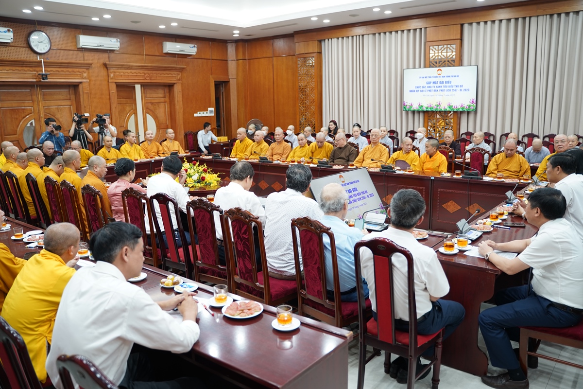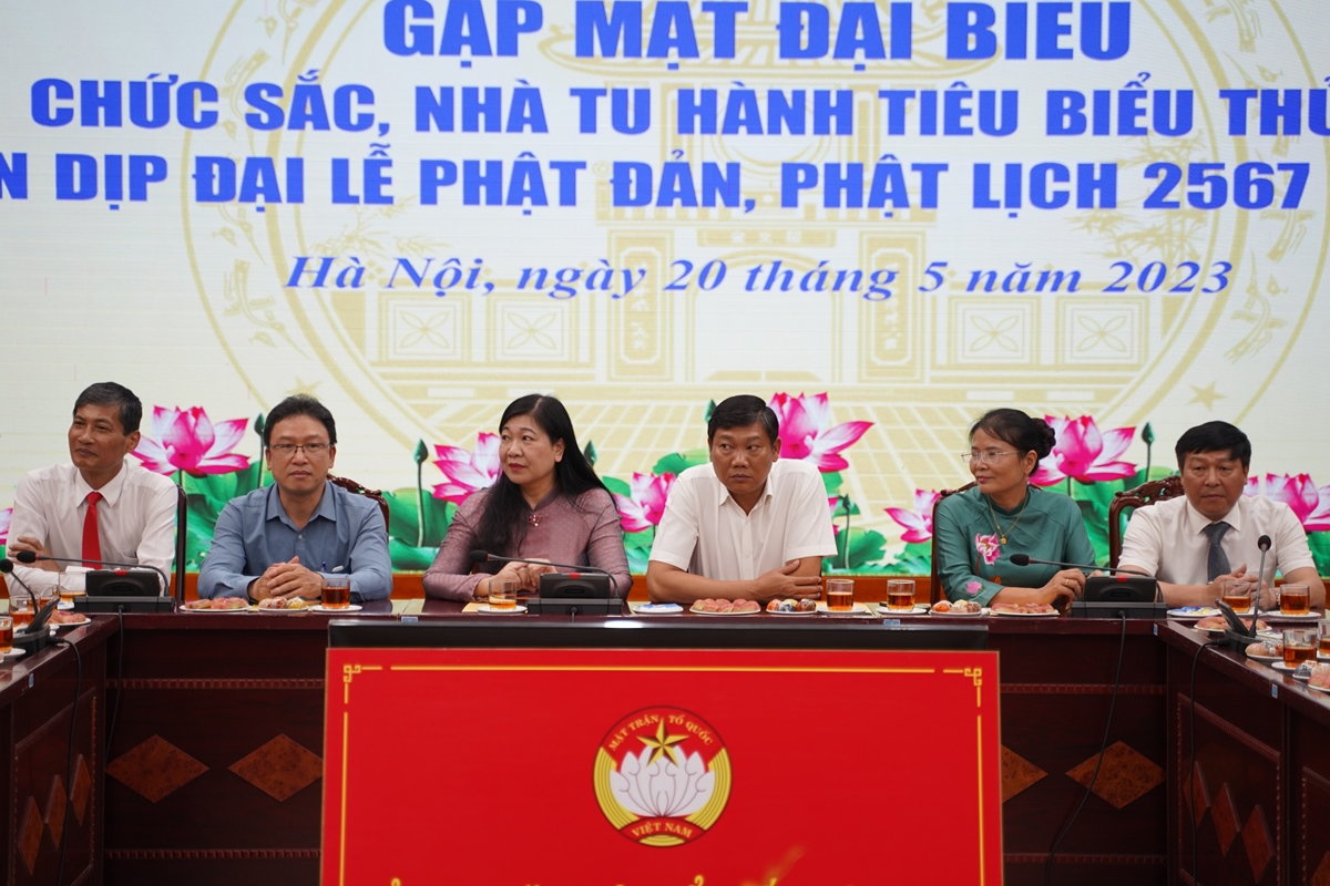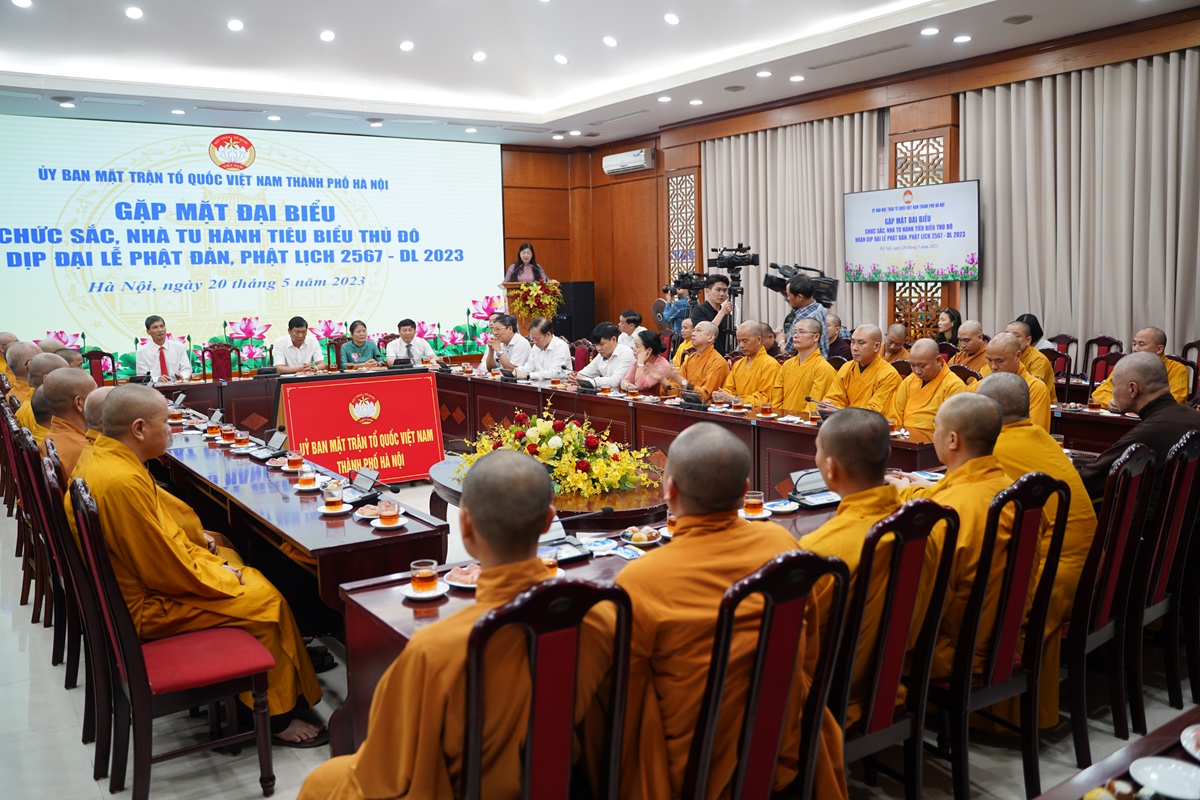 Phát biểu tại buổi gặp mặt, Chủ tịch Mặt trận thành phố Nguyễn Lan Hương trân trọng ghi nhận, đánh giá cao các cấp giáo hội Phật giáo luôn phát huy truyền thống Hộ quốc an dân, có nhiều hoạt động thiết thực, hiệu quả, tham gia các chương trình an sinh xã hội, thực hiện tốt các phong trào thi đua yêu nước. Chủ tịch mặt trận thành phố mong muốn Ban trị sự Phật giáo các cấp thành phố tiếp tục phát huy tinh thần "Đạo pháp - Dân tộc – Chủ nghĩa xã hội", chung sức cùng nhân dân đoàn kết, đồng thuận, xây dựng phát triển Thủ đô.